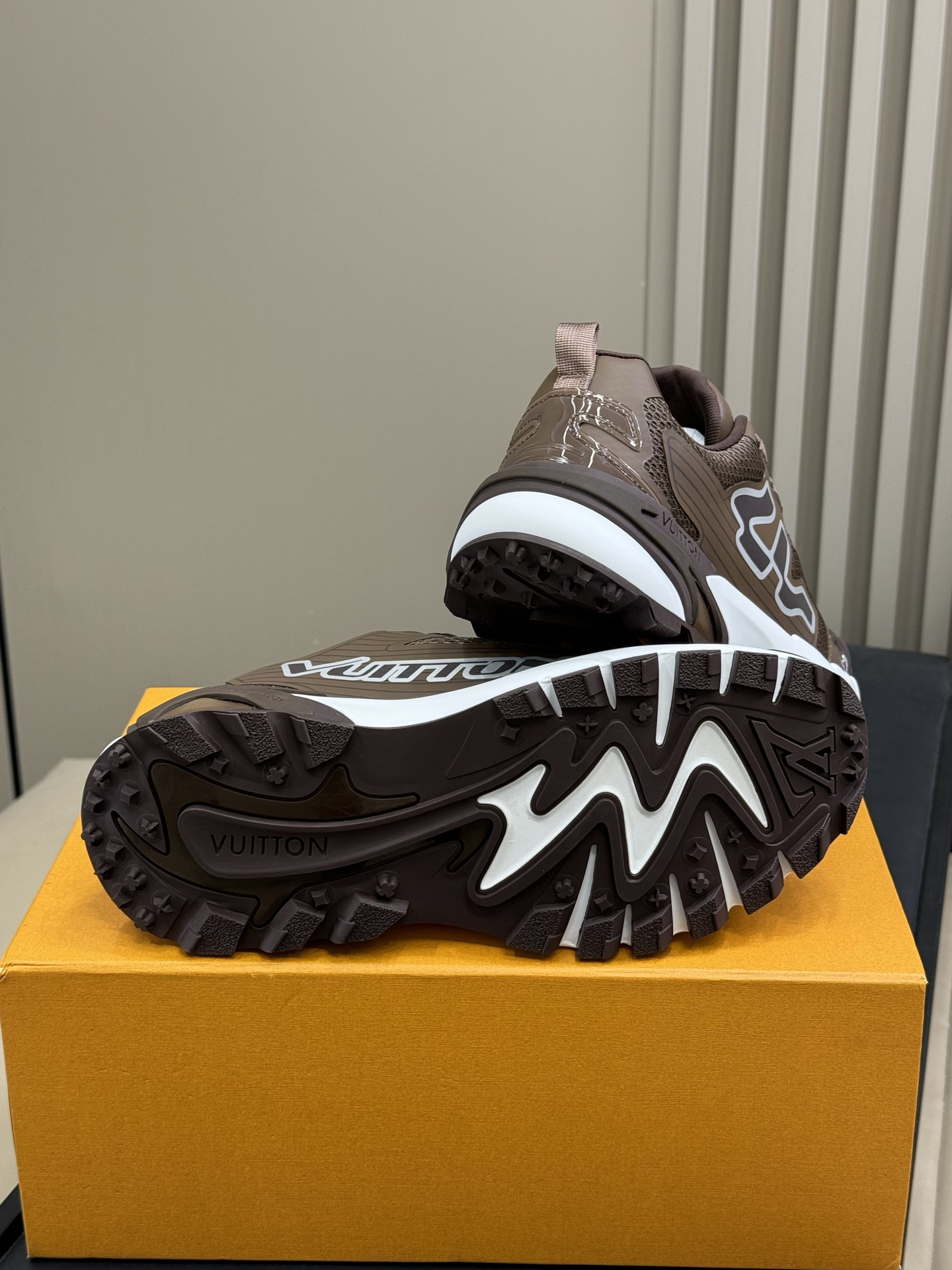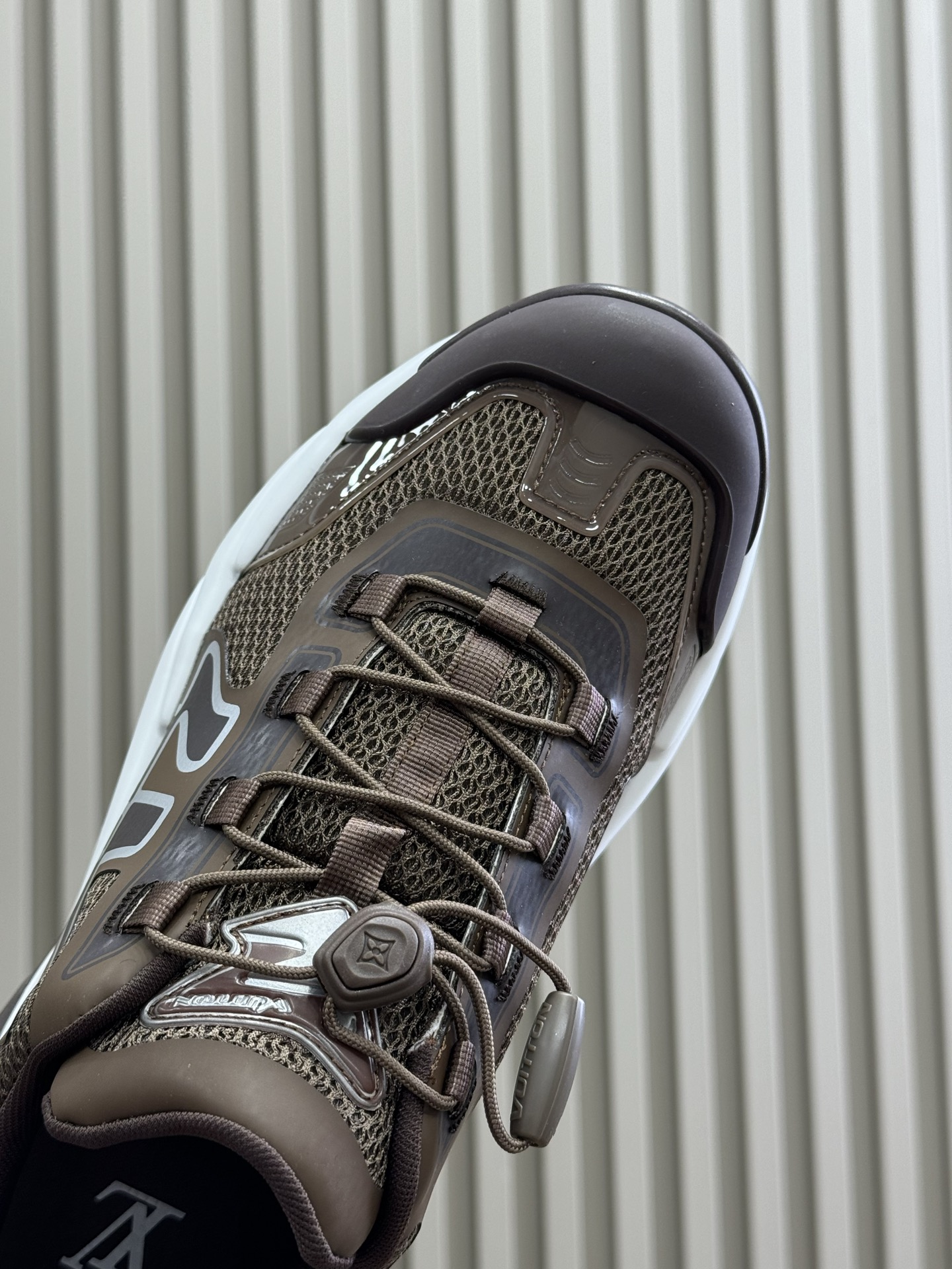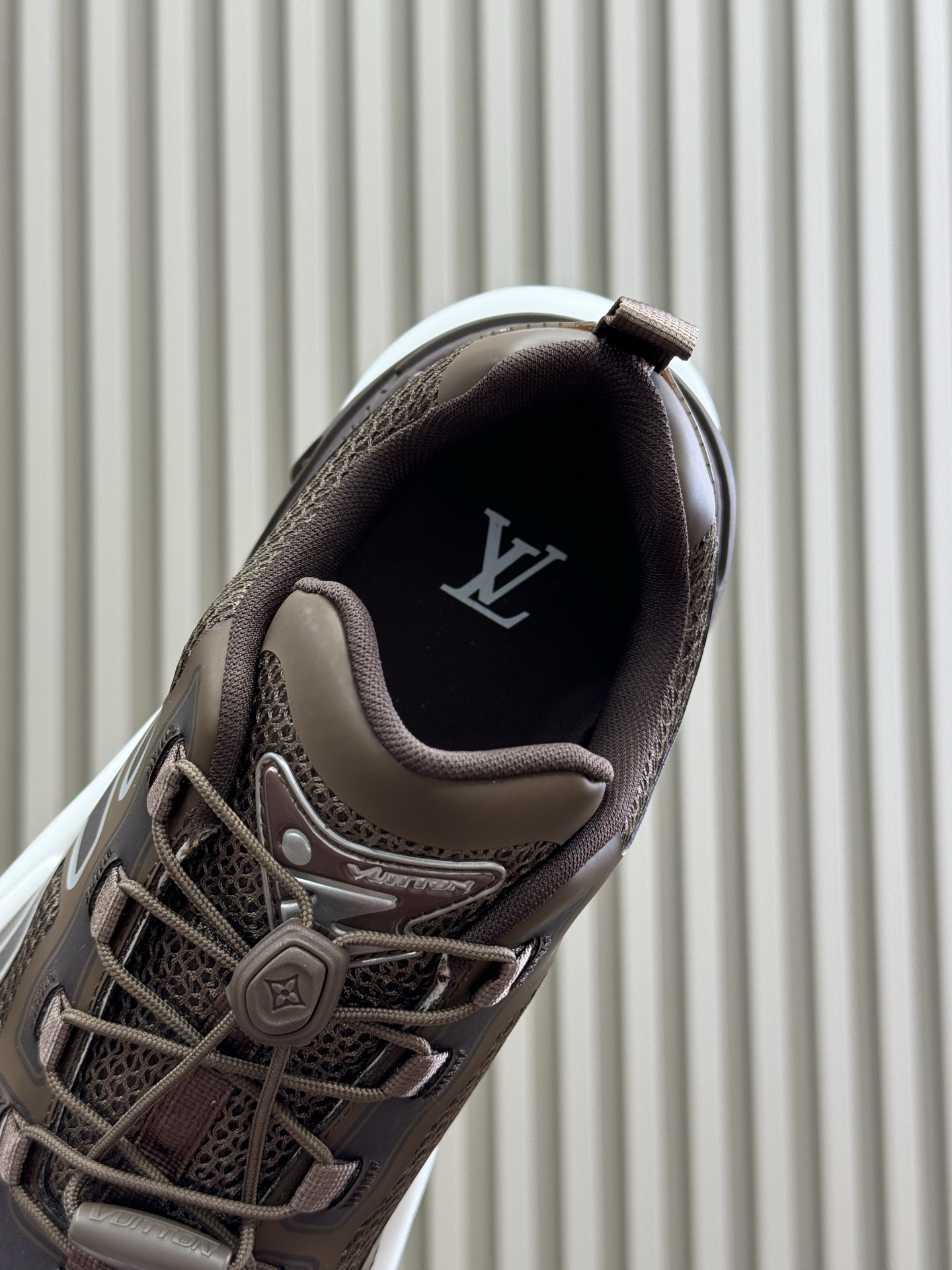 这款鞋子是AAAAA 1:1 质量 (非常棒). 使用了和原版一模一样的材料. 商标部分也保持了和路易威登/Louis Vuitton一样. 图片拍摄是实物鞋子拍摄, 您所收到的实物保证和我们图片一模一样.