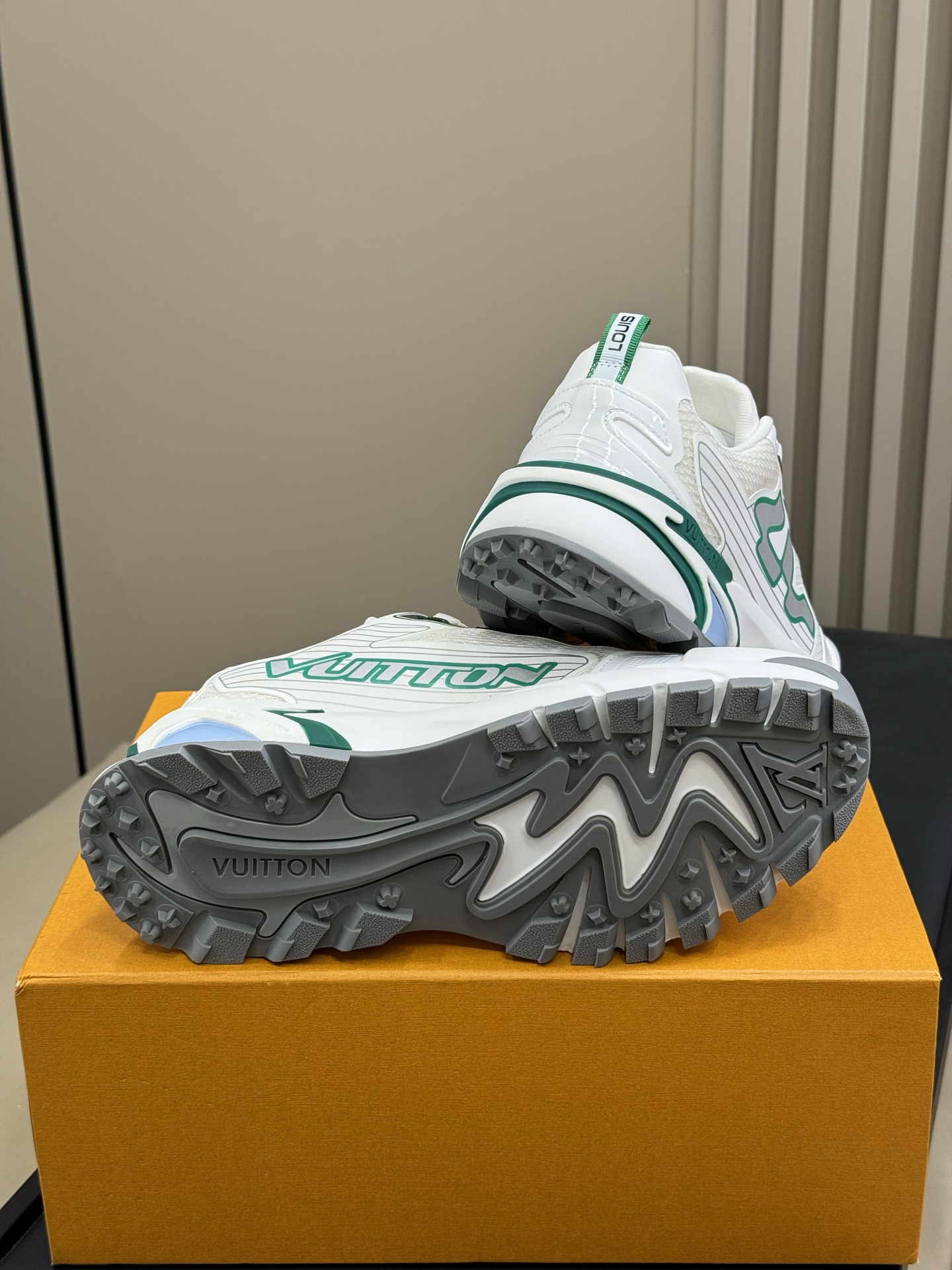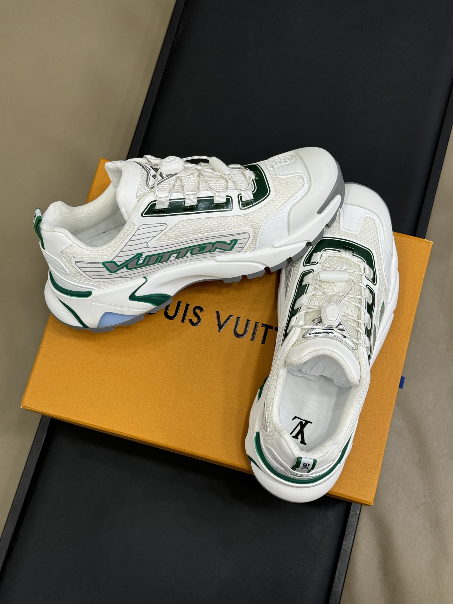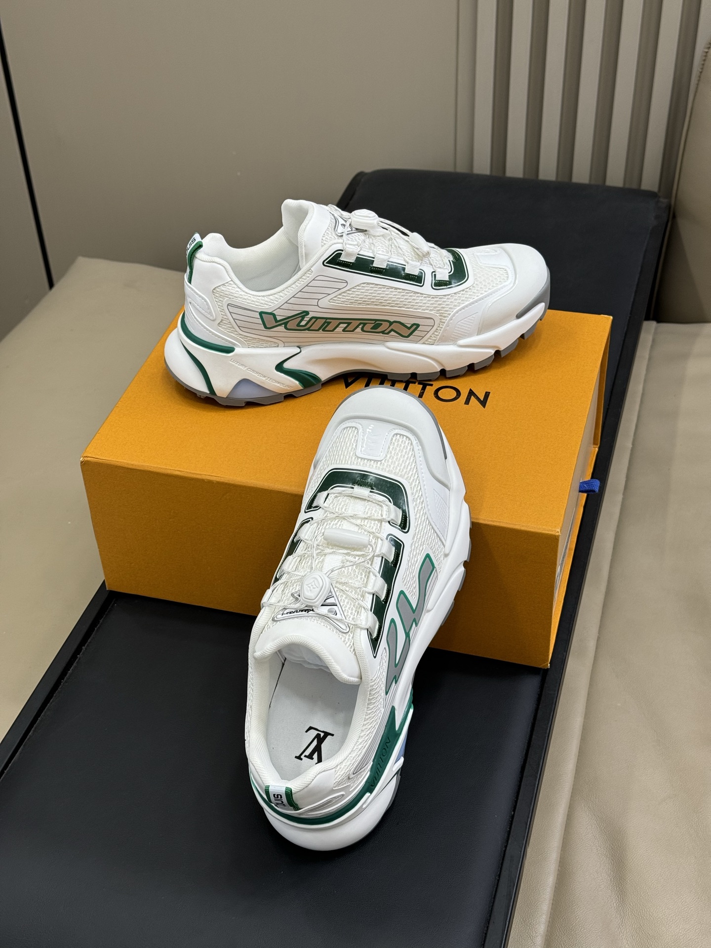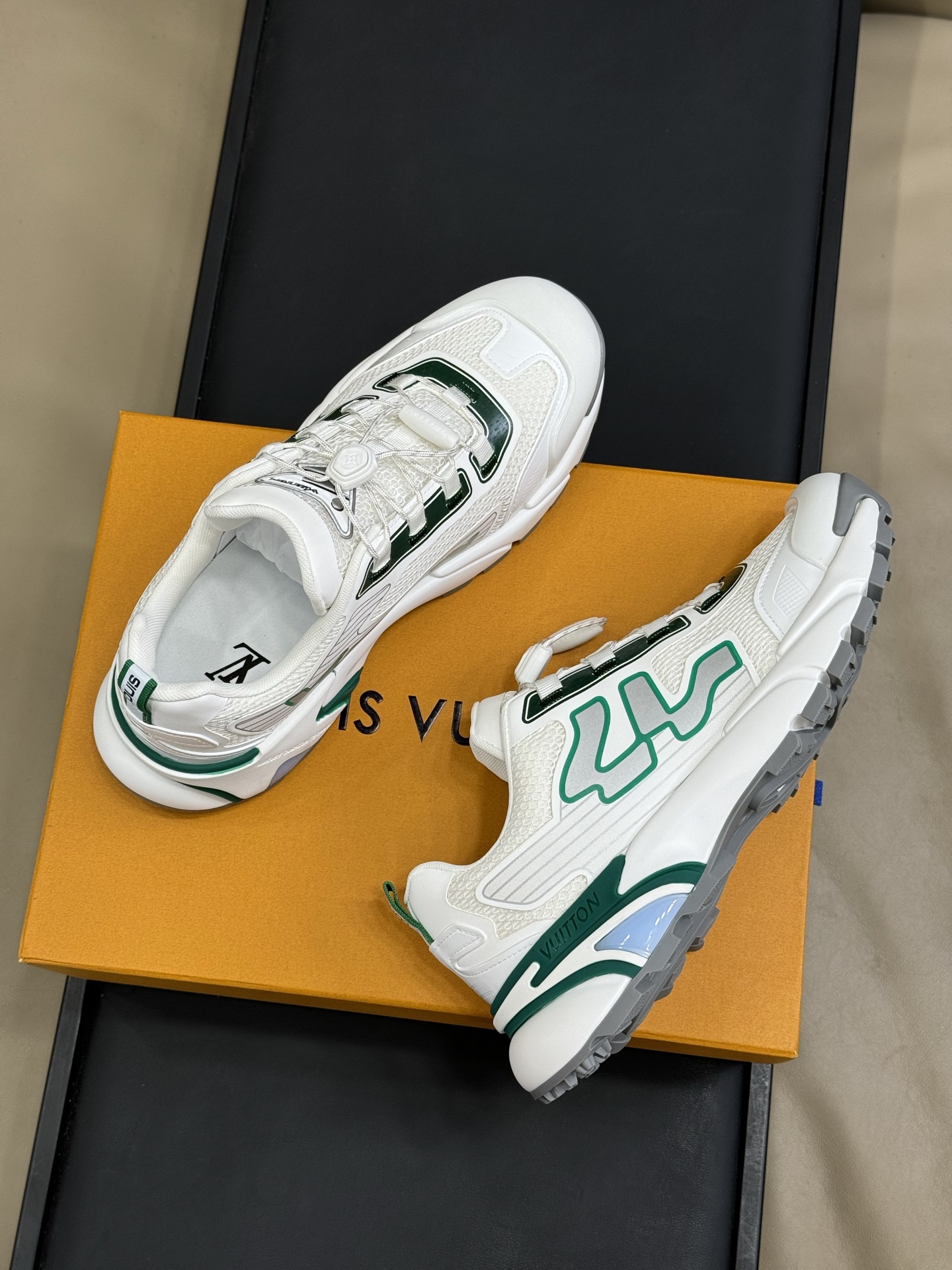 这款鞋子是AAAAA 1:1 质量 (非常棒). 使用了和原版一模一样的材料. 商标部分也保持了和路易威登/Louis Vuitton一样. 图片拍摄是实物鞋子拍摄, 您所收到的实物保证和我们图片一模一样.