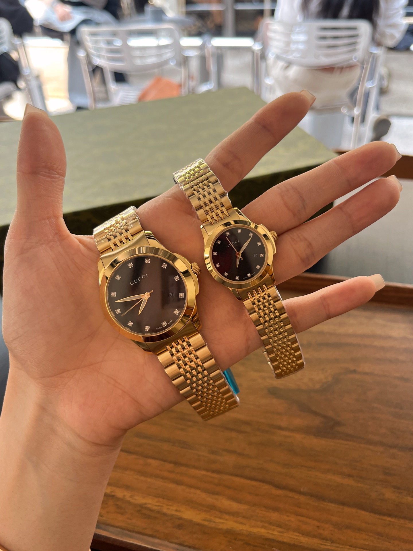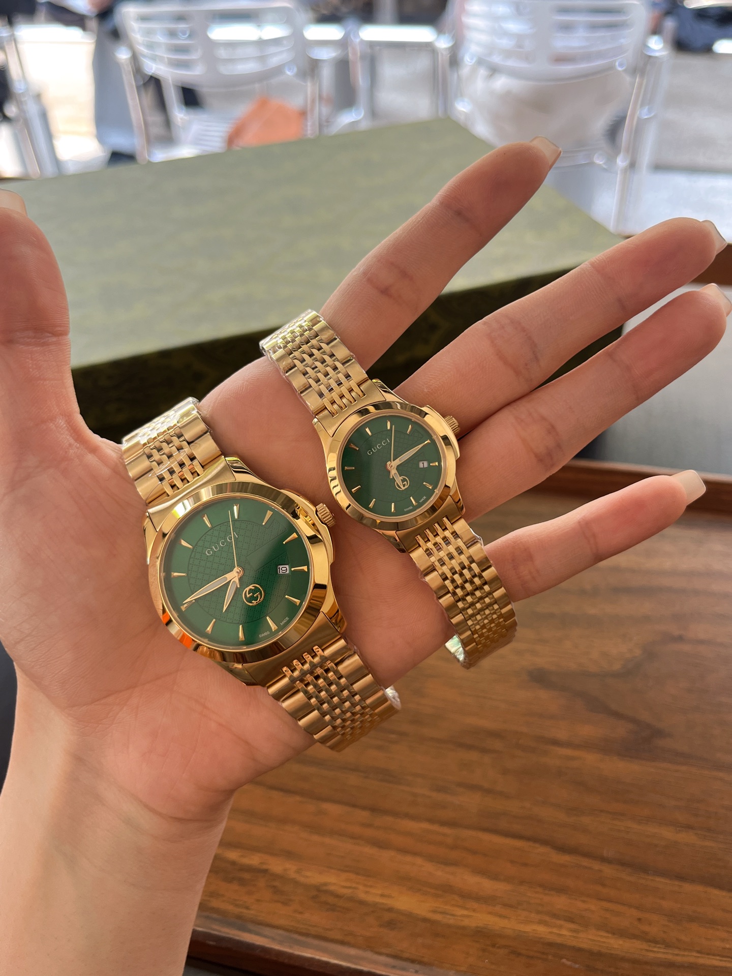 这款手表是AAAAA 1:1 质量 (非常棒). 使用了和原版一模一样的材料. 商标部分也保持了和古奇/Gucci一样. 图片拍摄是实物手表拍摄, 您所收到的实物保证和我们图片一模一样.