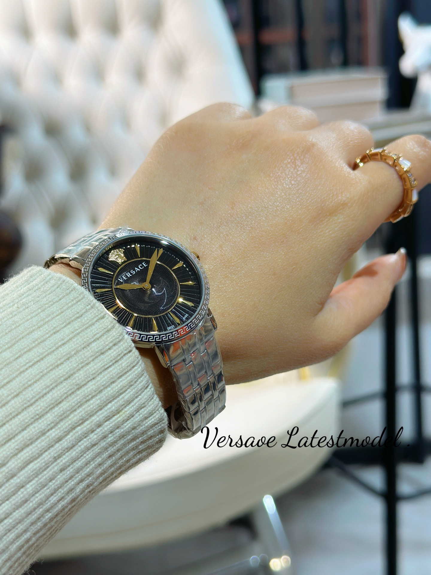 这款手表是AAAAA 1:1 质量 (非常棒). 使用了和原版一模一样的材料. 商标部分也保持了和范思哲/Versace一样. 图片拍摄是实物手表拍摄, 您所收到的实物保证和我们图片一模一样.