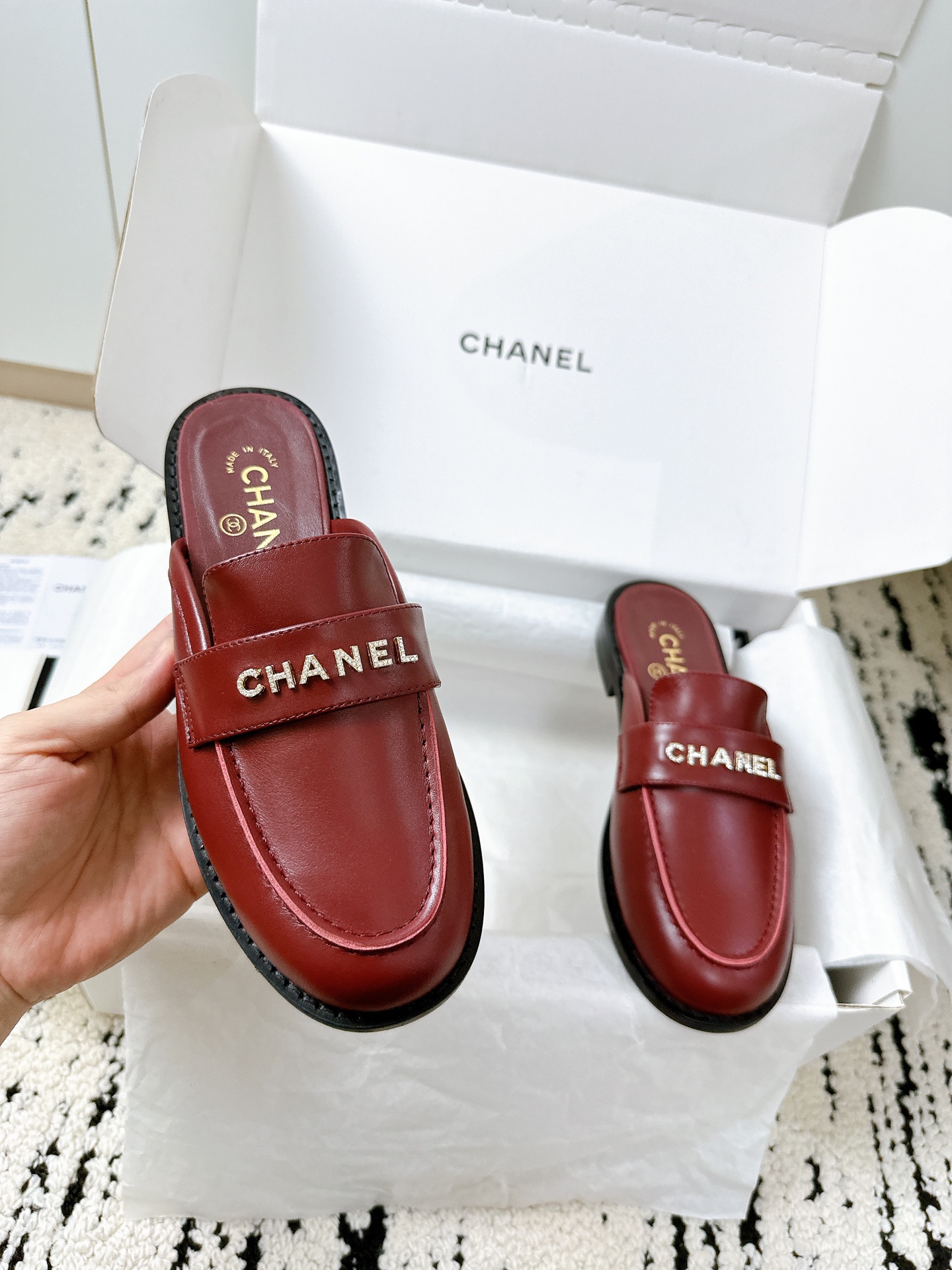 这款鞋子是AAAAA 1:1 质量 (非常棒). 使用了和原版一模一样的材料. 商标部分也保持了和香奈儿/Chanel一样. 图片拍摄是实物鞋子拍摄, 您所收到的实物保证和我们图片一模一样.