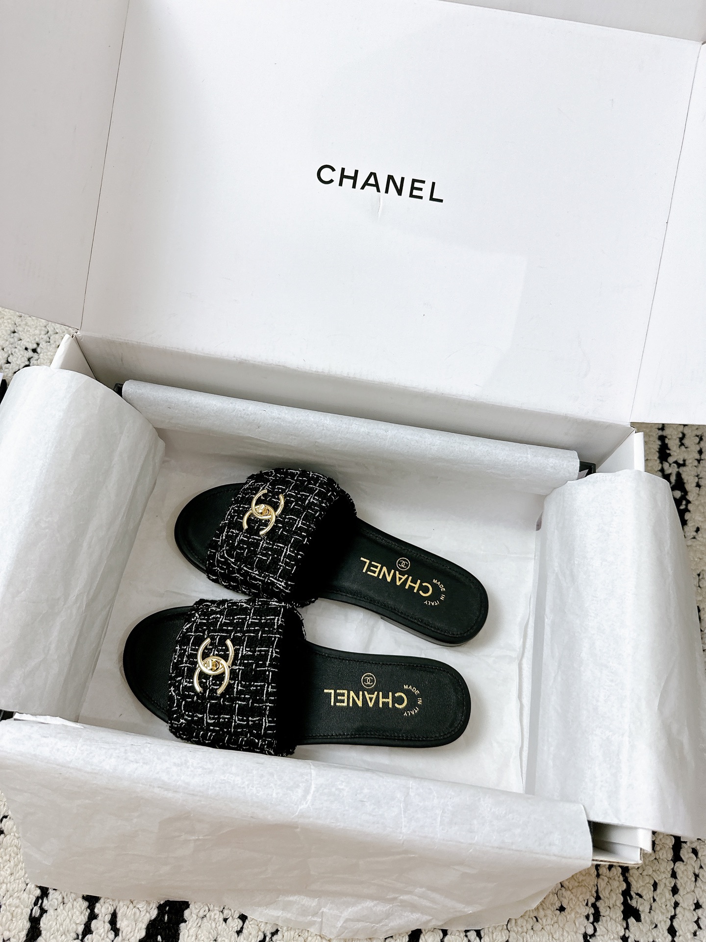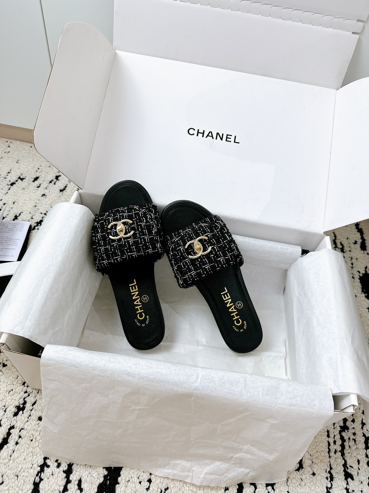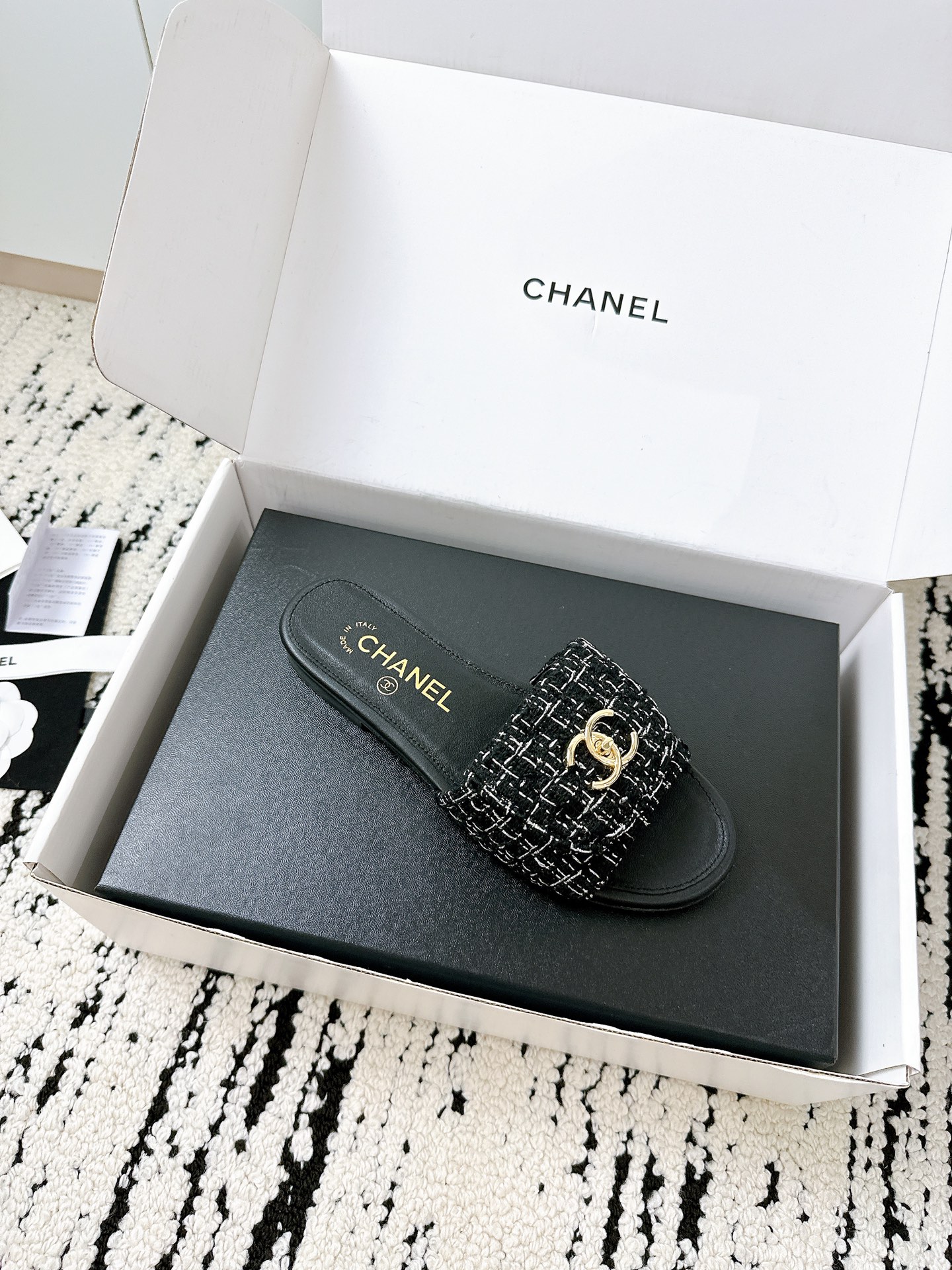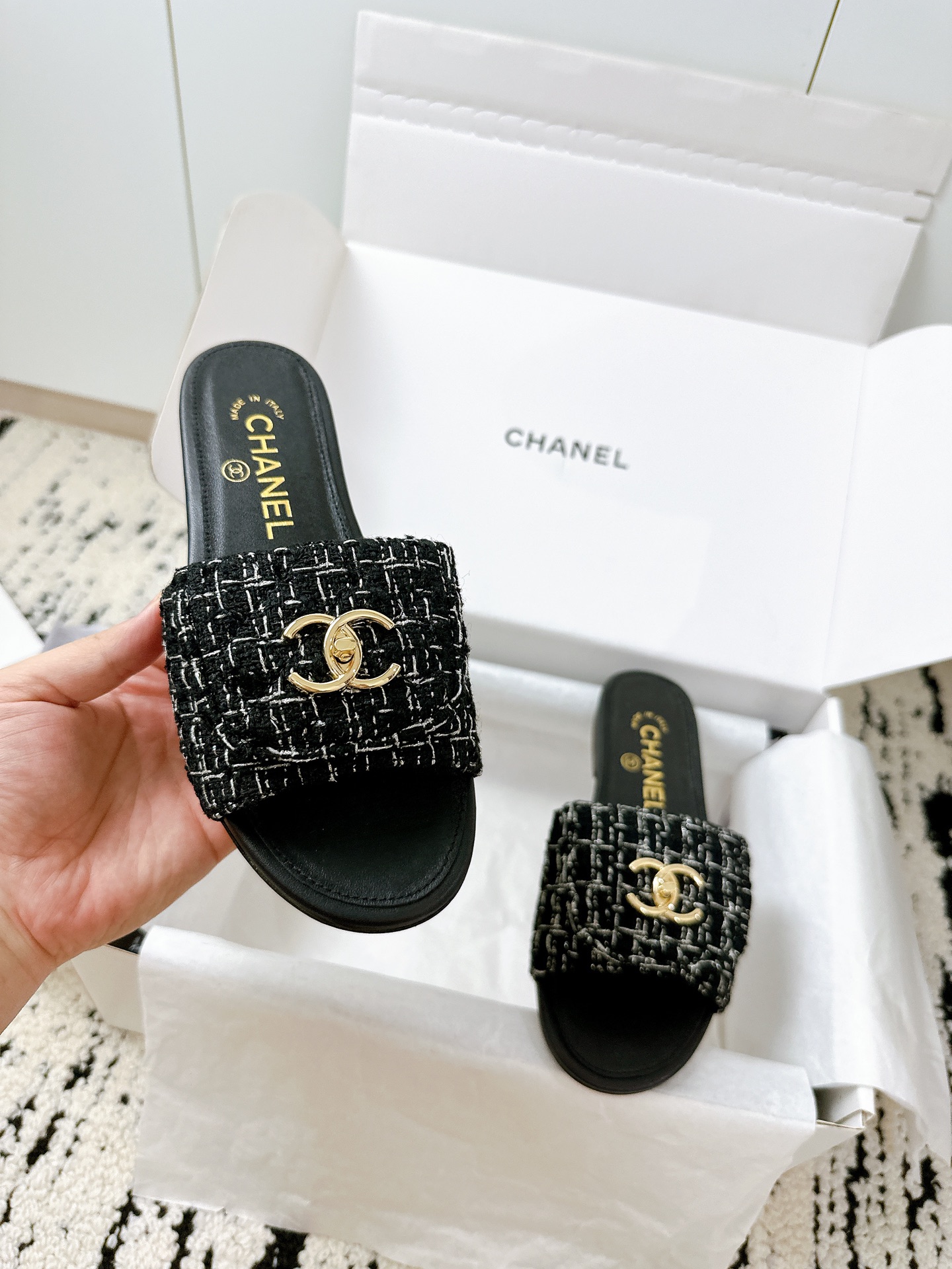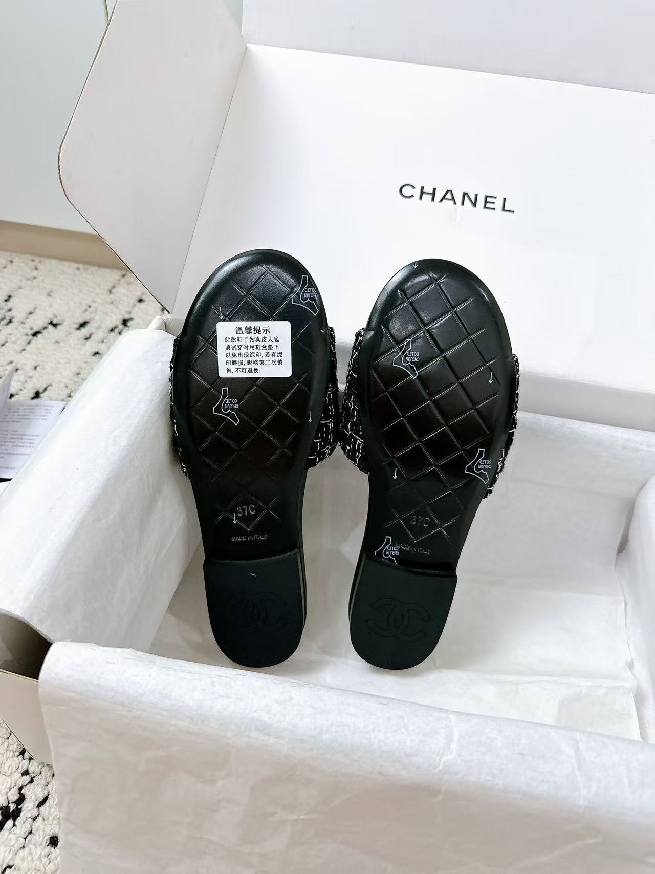 这款鞋子是AAAAA 1:1 质量 (非常棒). 使用了和原版一模一样的材料. 商标部分也保持了和香奈儿/Chanel一样. 图片拍摄是实物鞋子拍摄, 您所收到的实物保证和我们图片一模一样.