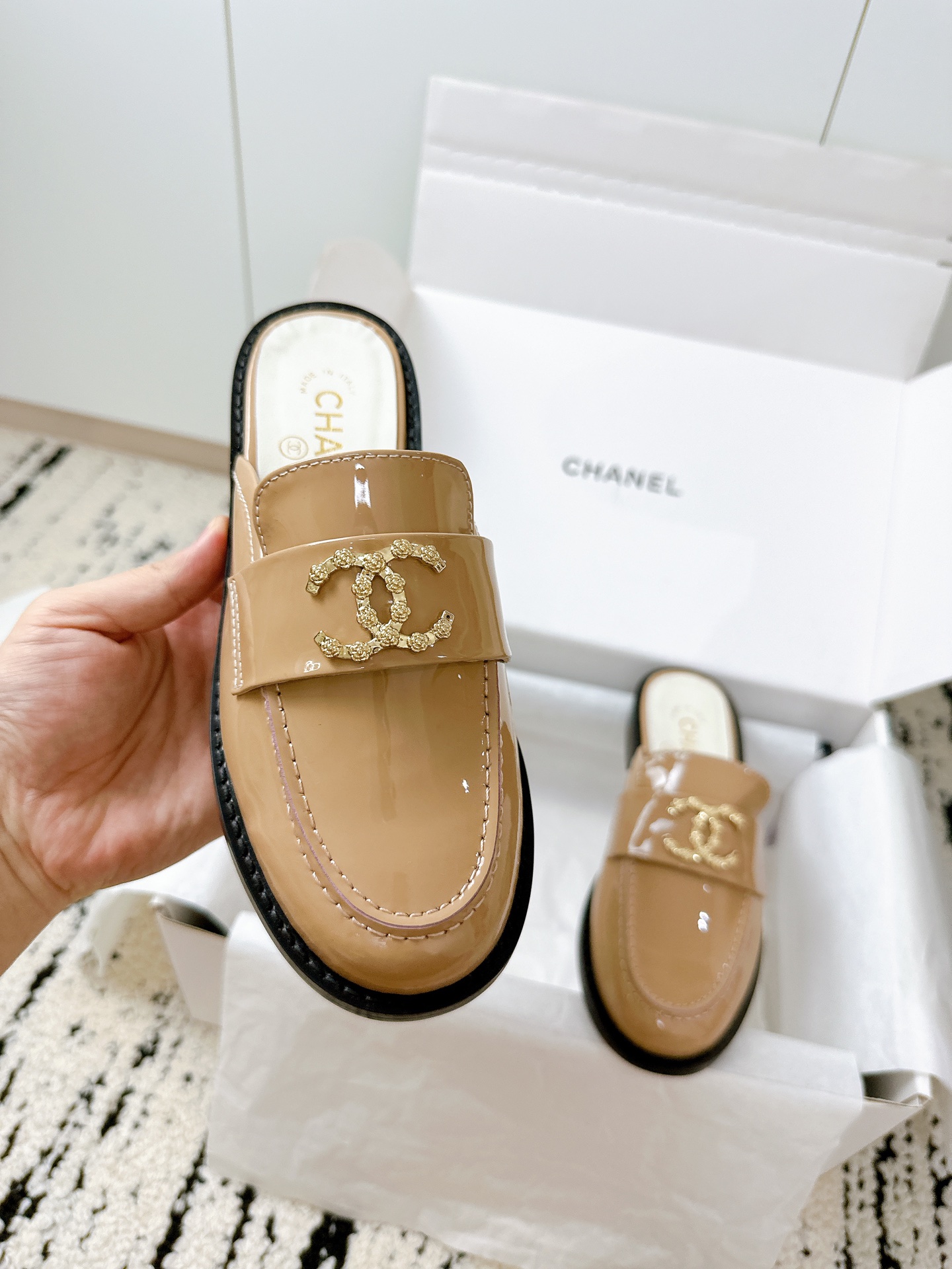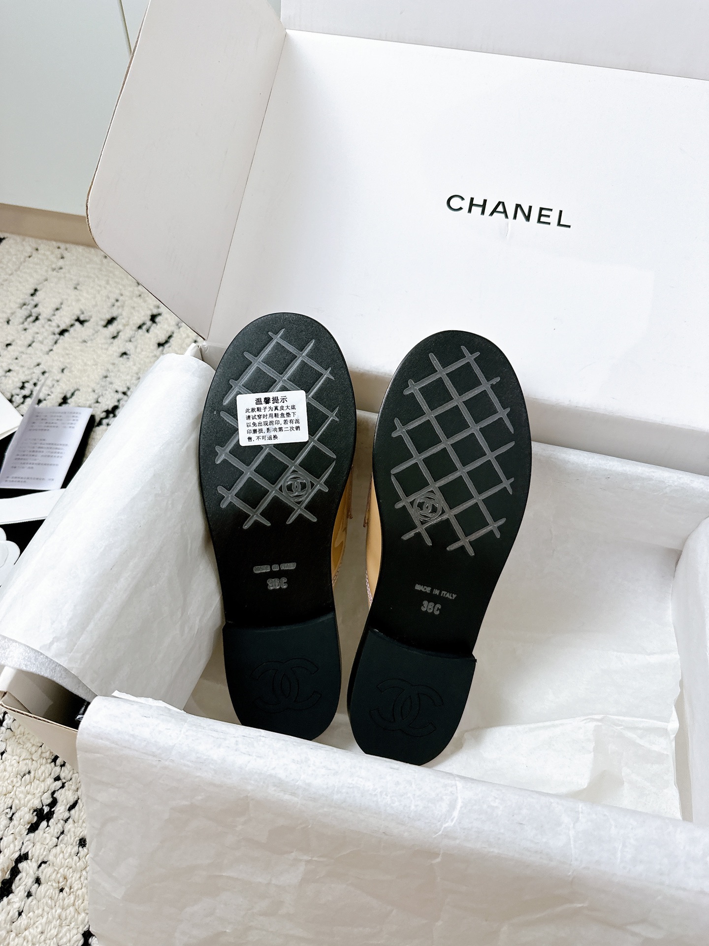 这款鞋子是AAAAA 1:1 质量 (非常棒). 使用了和原版一模一样的材料. 商标部分也保持了和香奈儿/Chanel一样. 图片拍摄是实物鞋子拍摄, 您所收到的实物保证和我们图片一模一样.
