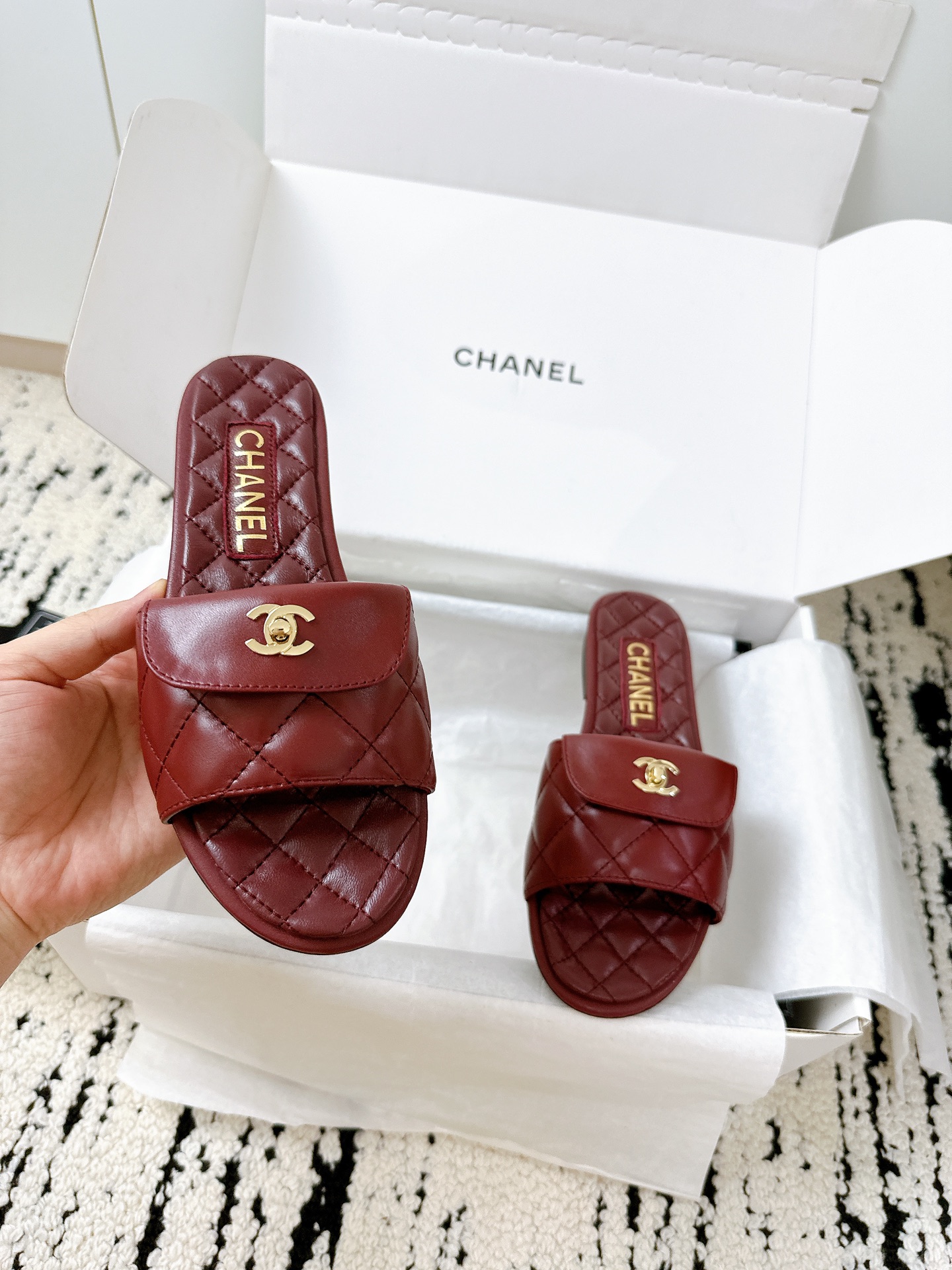 这款鞋子是AAAAA 1:1 质量 (非常棒). 使用了和原版一模一样的材料. 商标部分也保持了和香奈儿/Chanel一样. 图片拍摄是实物鞋子拍摄, 您所收到的实物保证和我们图片一模一样.