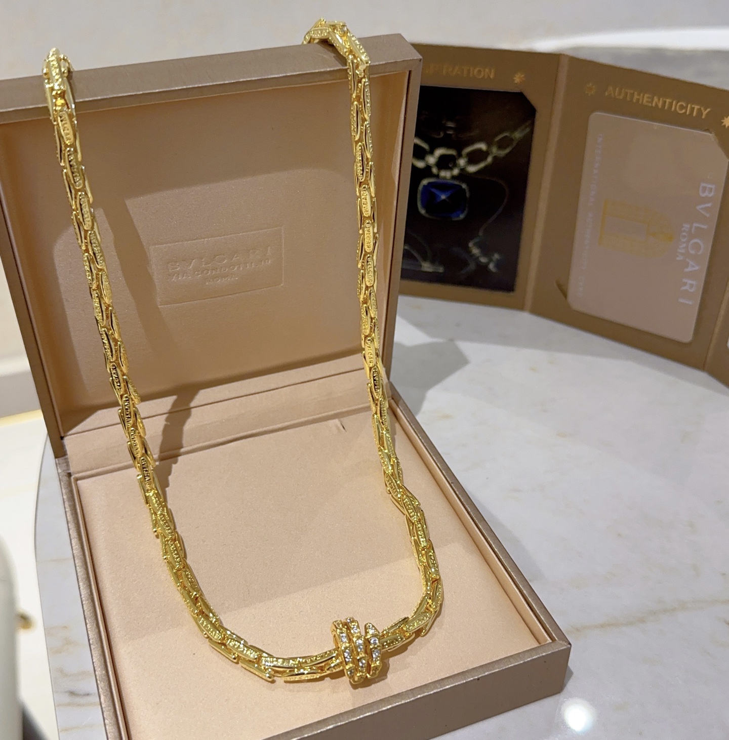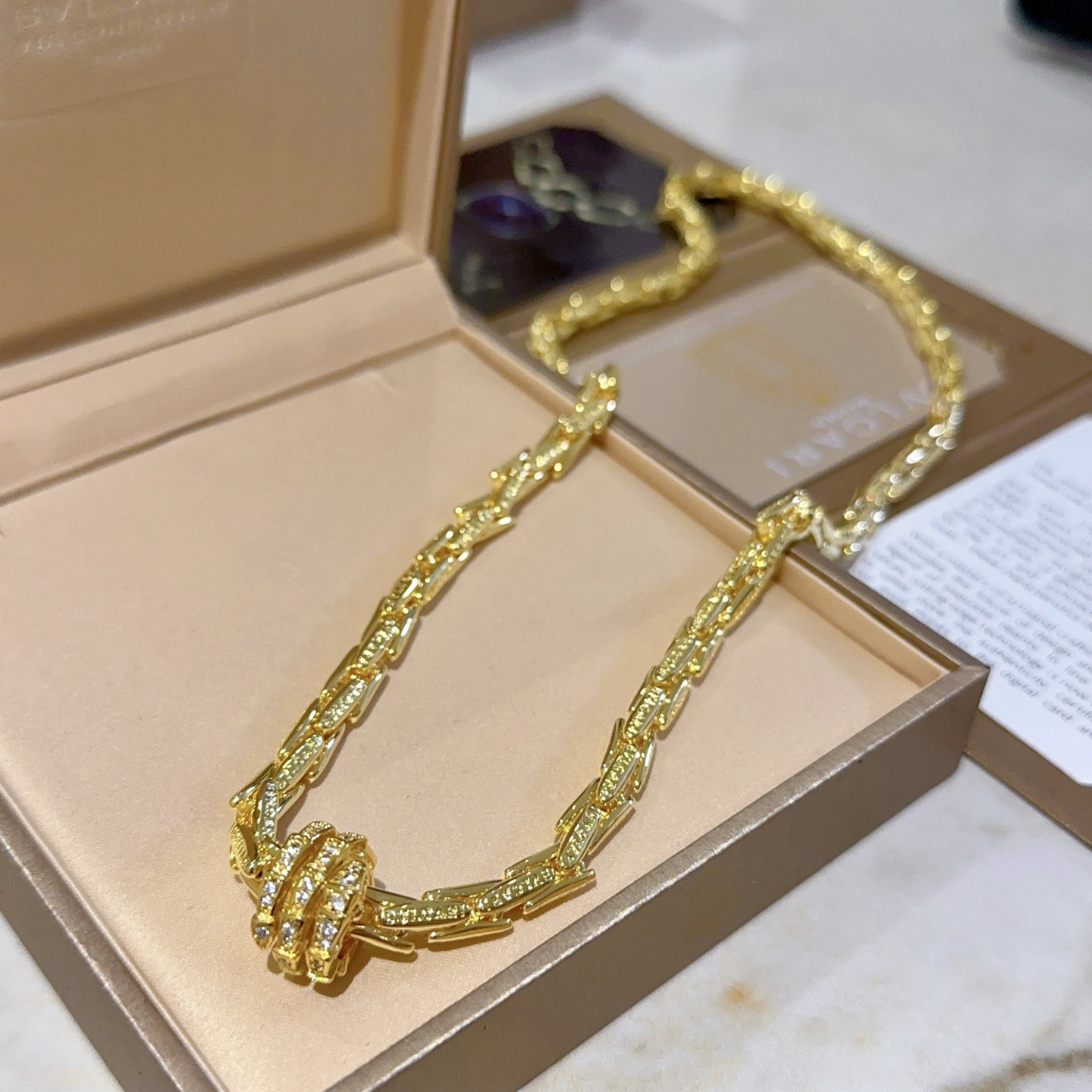 这款首饰是AAAAA 1:1 质量 (非常棒). 使用了和原版一模一样的材料. 商标部分也保持了和宝格丽/Bulgari一样. 图片拍摄是实物首饰拍摄, 您所收到的实物保证和我们图片一模一样.