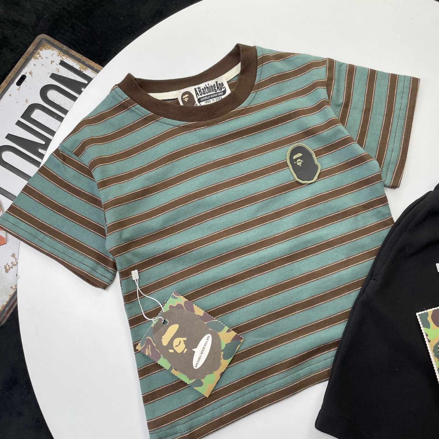 这款children's clothes是AAAAA 1:1 质量 (非常棒). 使用了和原版一模一样的材料. 商标部分也保持了和Bape一样. 图片拍摄是实物children's clothes拍摄, 您所收到的实物保证和我们图片一模一样.