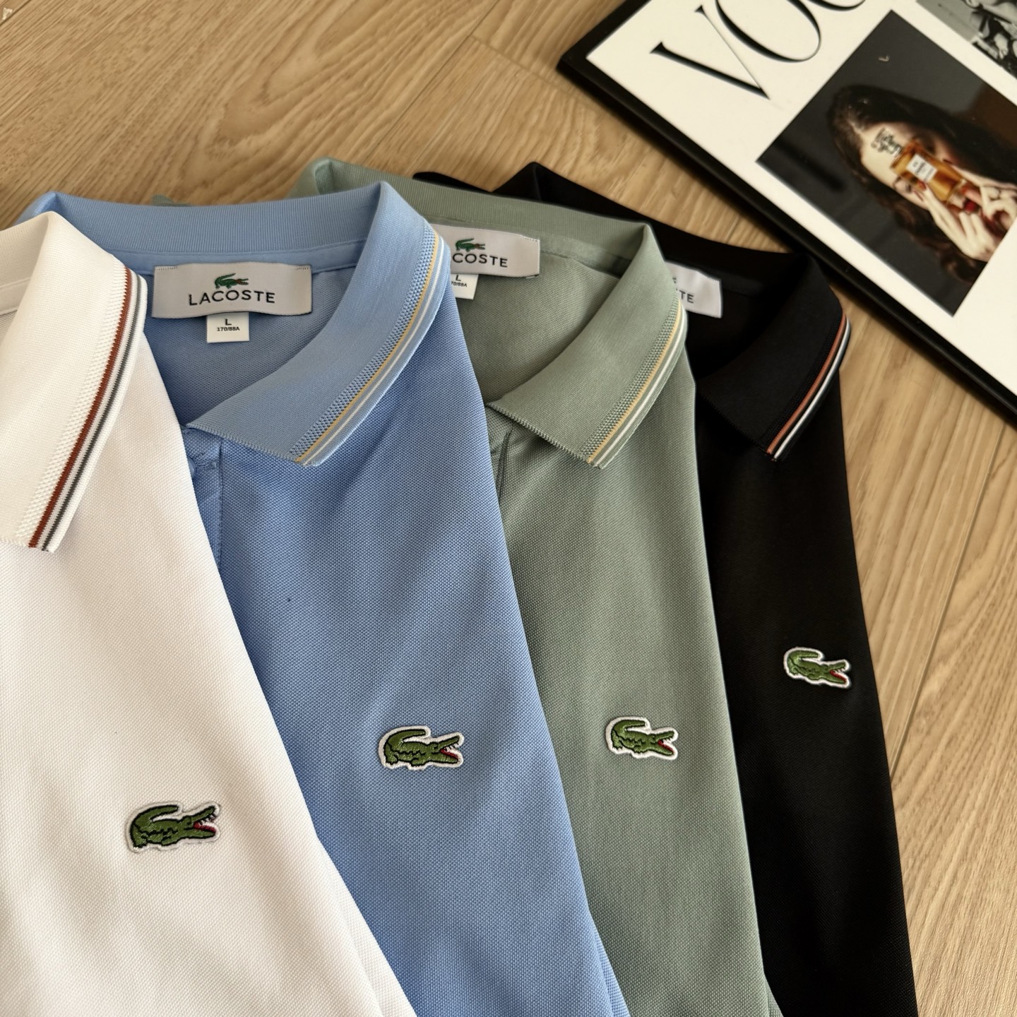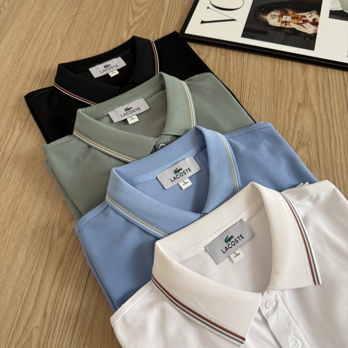 这款衣服是AAAAA 1:1 质量 (非常棒). 使用了和原版一模一样的材料. 商标部分也保持了和LACOSTE一样. 图片拍摄是实物衣服拍摄, 您所收到的实物保证和我们图片一模一样.