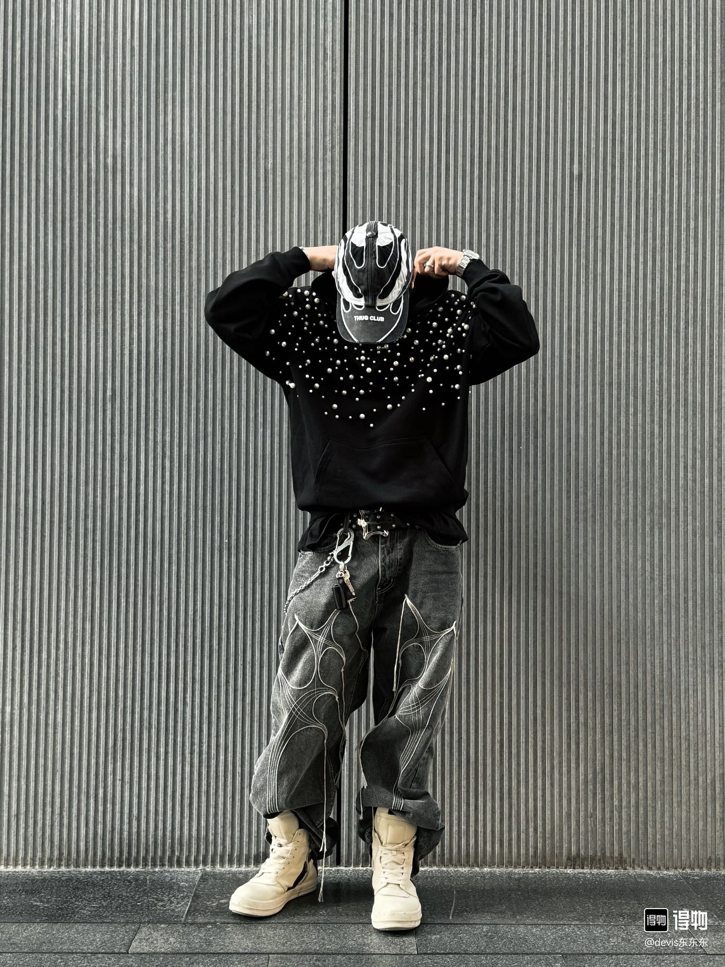 这款衣服是AAAAA 1:1 质量 (非常棒). 使用了和原版一模一样的材料. 商标部分也保持了和克罗心/Chrome Hearts一样. 图片拍摄是实物衣服拍摄, 您所收到的实物保证和我们图片一模一样.