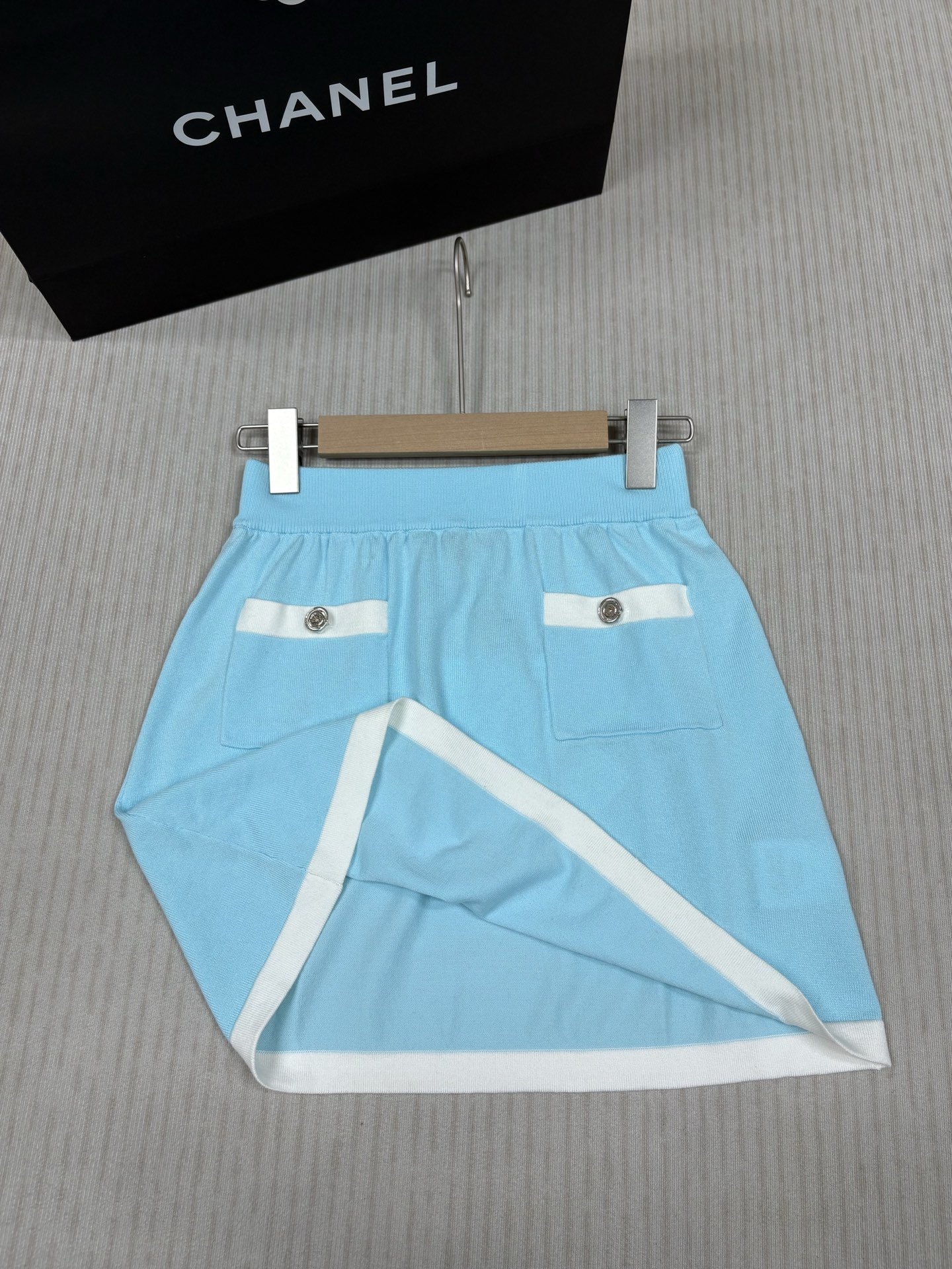这款衣服是AAAAA 1:1 质量 (非常棒). 使用了和原版一模一样的材料. 商标部分也保持了和香奈儿/Chanel一样. 图片拍摄是实物衣服拍摄, 您所收到的实物保证和我们图片一模一样.