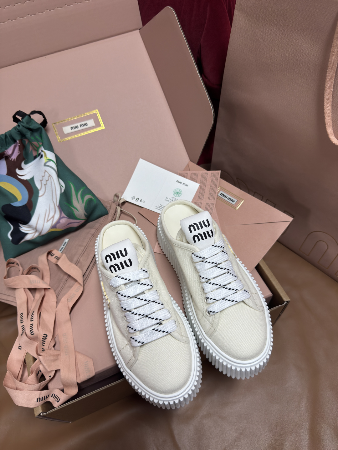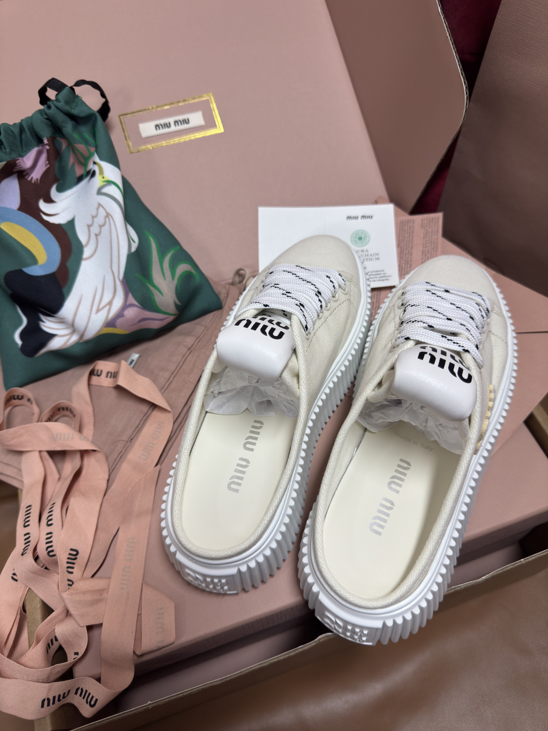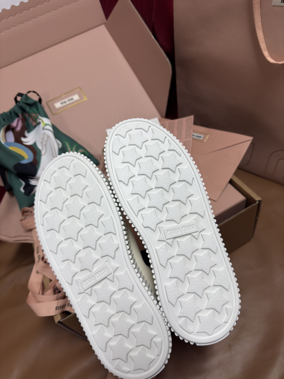 这款鞋子是AAAAA 1:1 质量 (非常棒). 使用了和原版一模一样的材料. 商标部分也保持了和缪缪/Miu Miu一样. 图片拍摄是实物鞋子拍摄, 您所收到的实物保证和我们图片一模一样.
