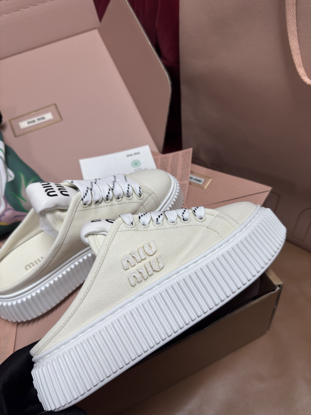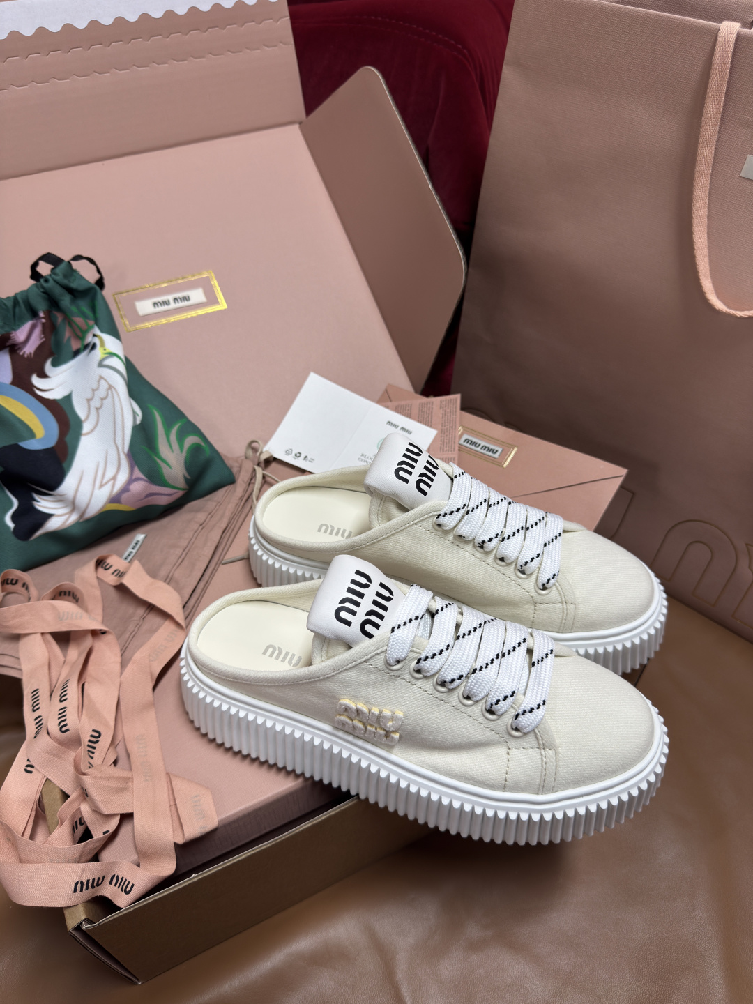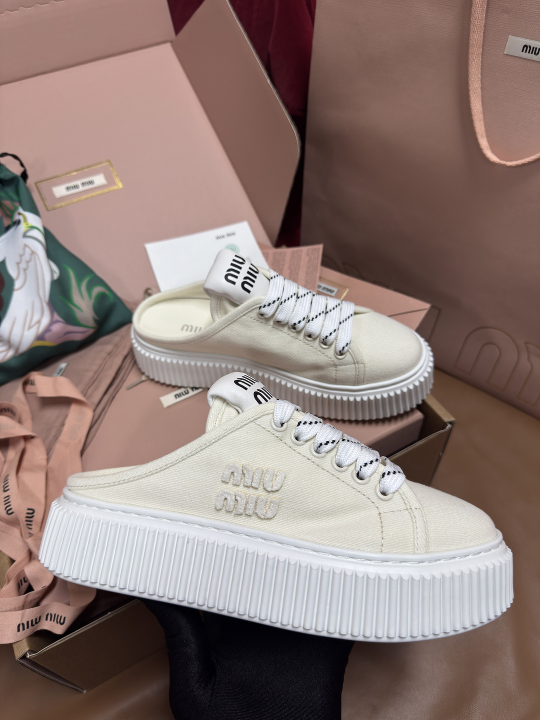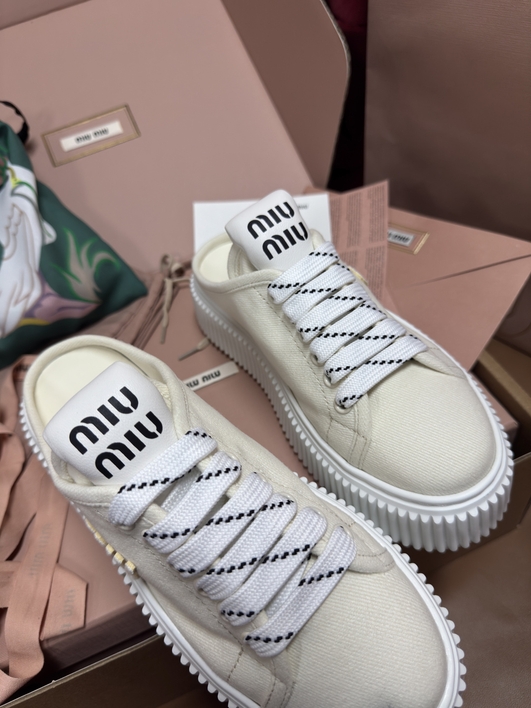 这款鞋子是AAAAA 1:1 质量 (非常棒). 使用了和原版一模一样的材料. 商标部分也保持了和缪缪/Miu Miu一样. 图片拍摄是实物鞋子拍摄, 您所收到的实物保证和我们图片一模一样.