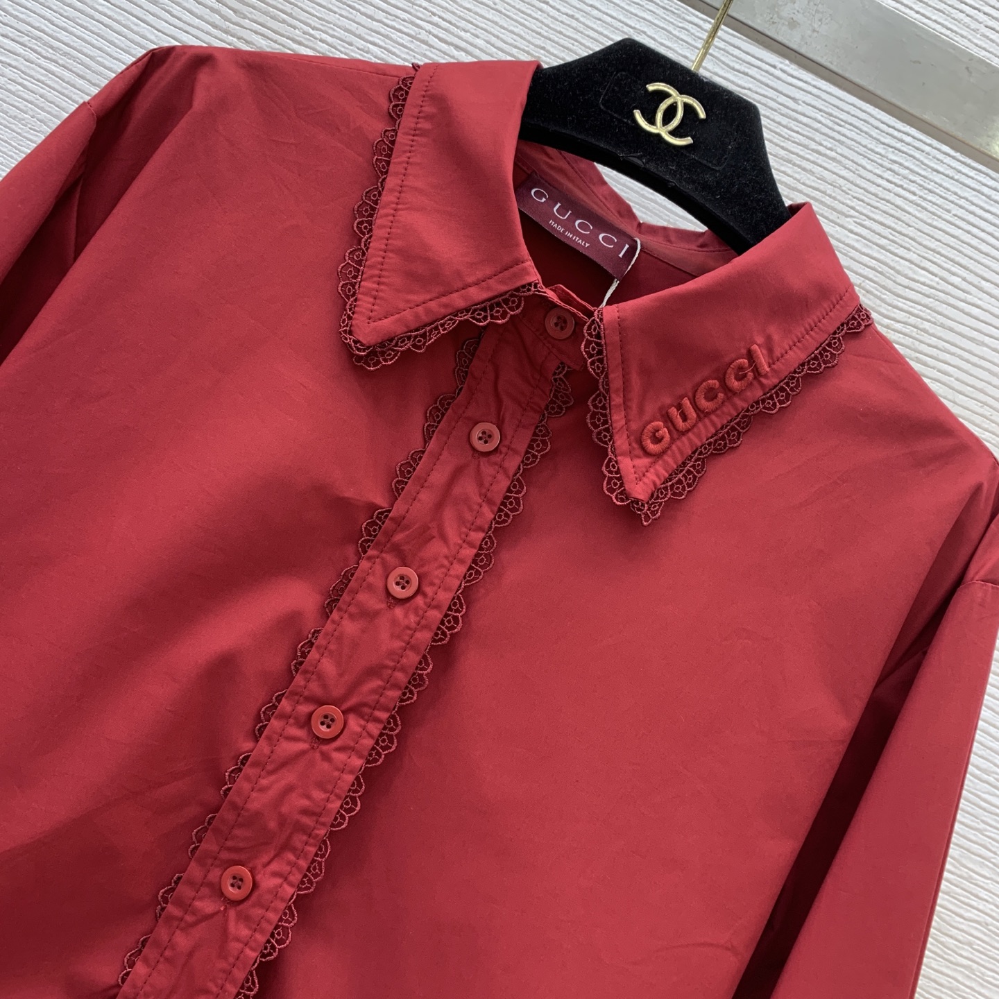 这款衣服是AAAAA 1:1 质量 (非常棒). 使用了和原版一模一样的材料. 商标部分也保持了和古奇/Gucci一样. 图片拍摄是实物衣服拍摄, 您所收到的实物保证和我们图片一模一样.