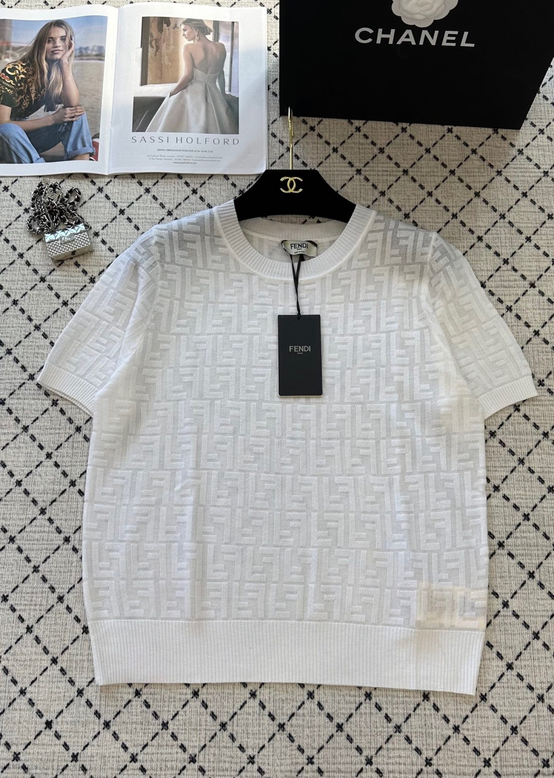 这款衣服是AAAAA 1:1 质量 (非常棒). 使用了和原版一模一样的材料. 商标部分也保持了和芬迪/Fendi一样. 图片拍摄是实物衣服拍摄, 您所收到的实物保证和我们图片一模一样.