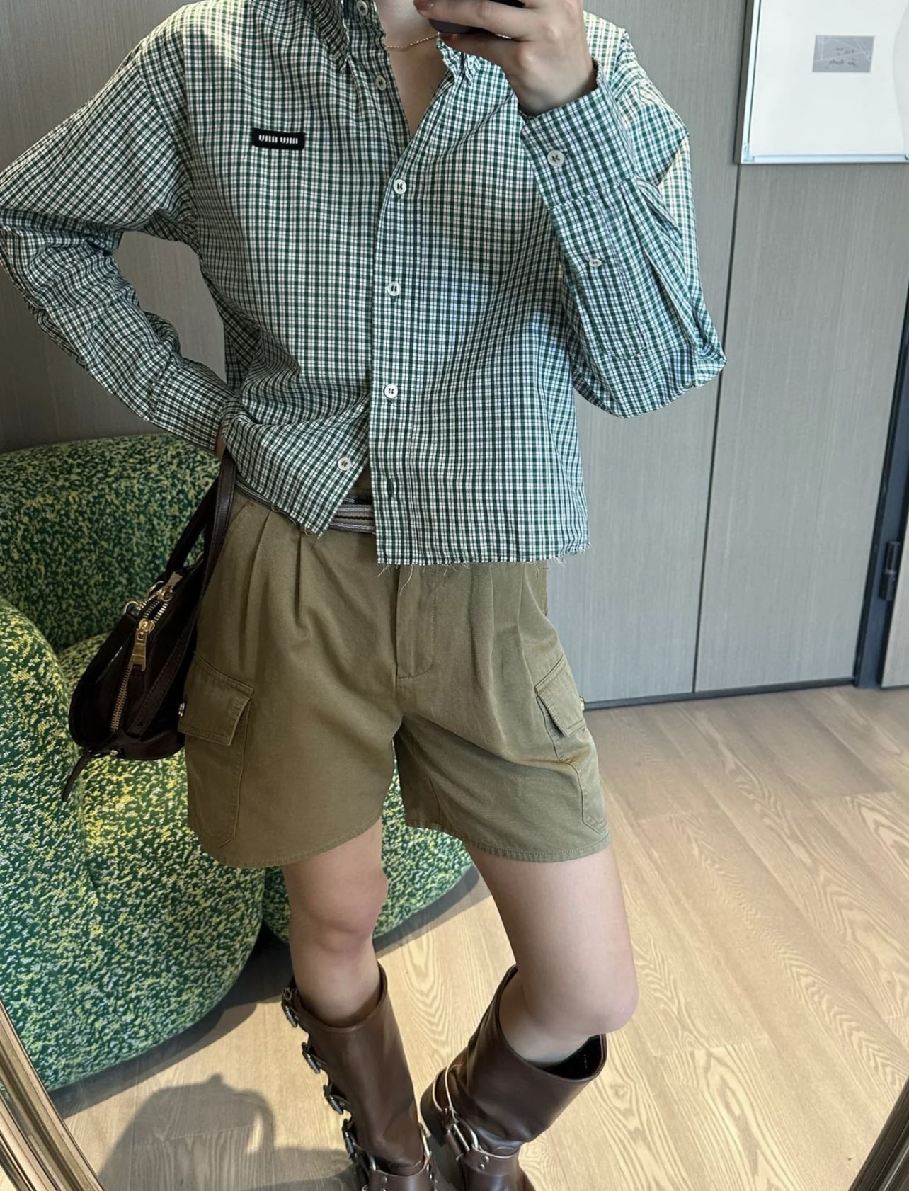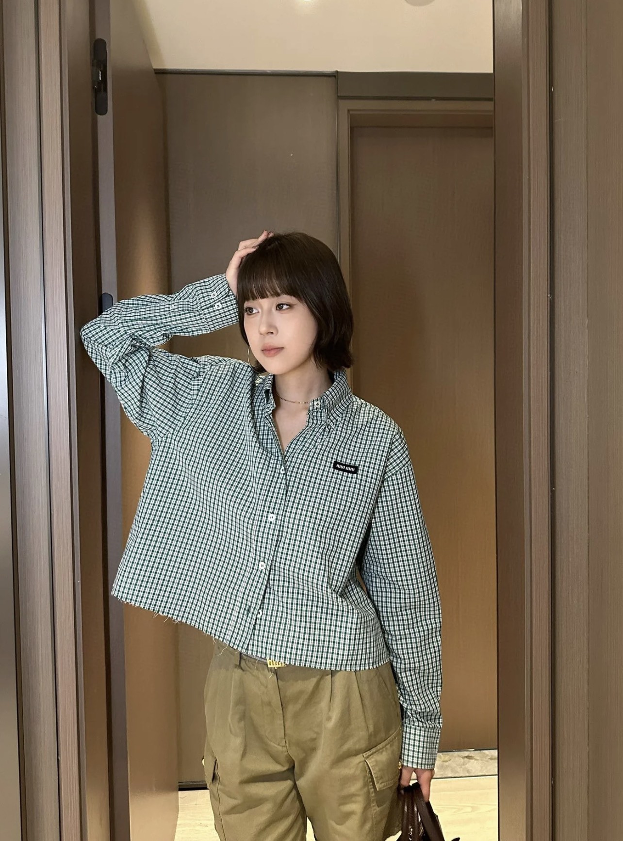 这款衣服是AAAAA 1:1 质量 (非常棒). 使用了和原版一模一样的材料. 商标部分也保持了和缪缪/Miu Miu一样. 图片拍摄是实物衣服拍摄, 您所收到的实物保证和我们图片一模一样.
