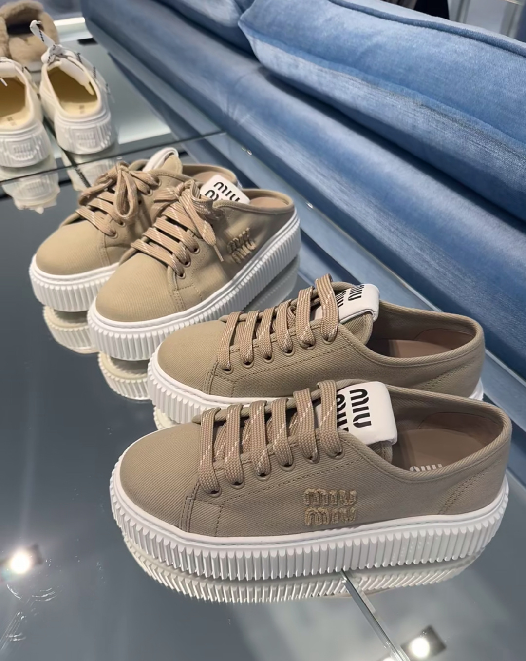 这款鞋子是AAAAA 1:1 质量 (非常棒). 使用了和原版一模一样的材料. 商标部分也保持了和缪缪/Miu Miu一样. 图片拍摄是实物鞋子拍摄, 您所收到的实物保证和我们图片一模一样.
