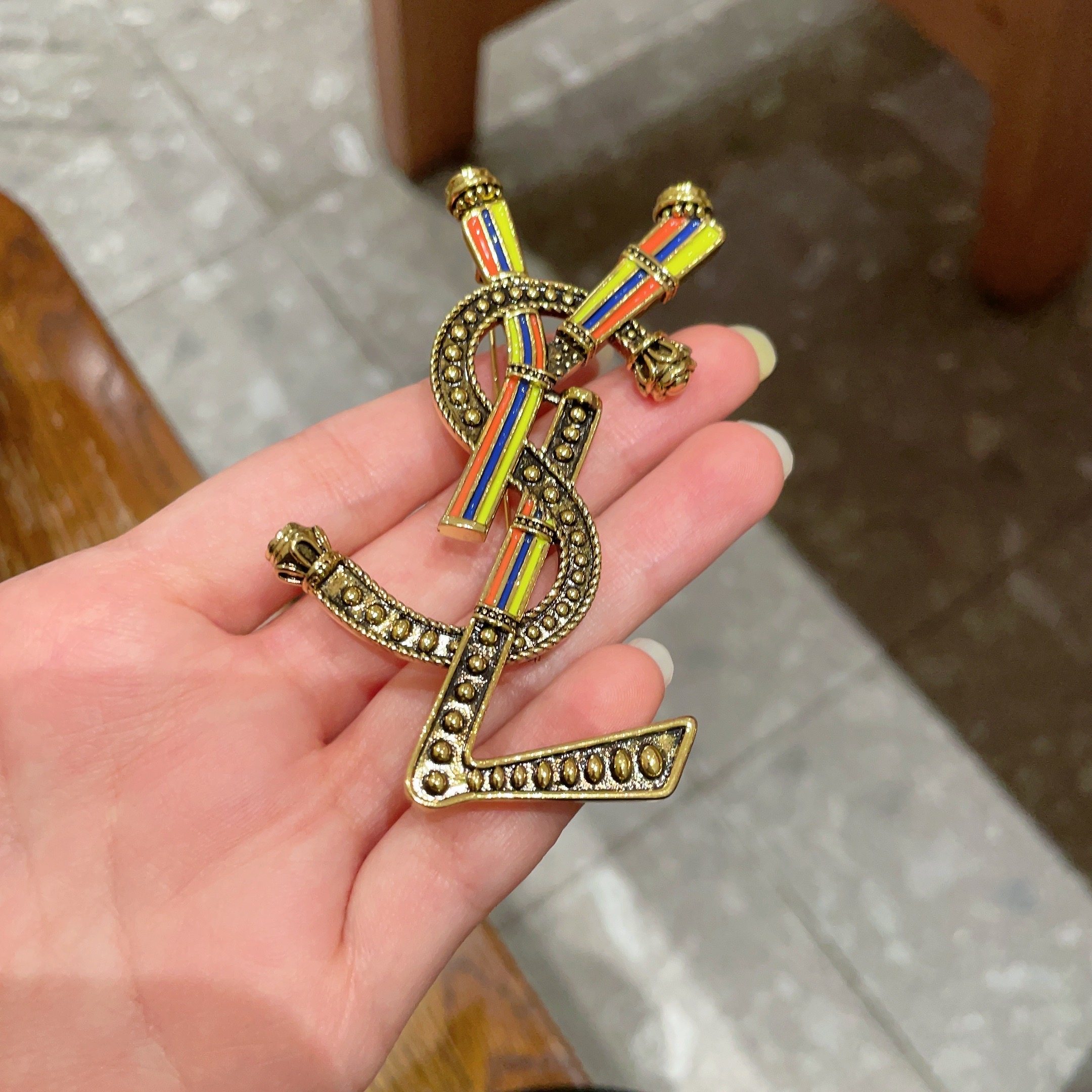 这款首饰是AAAAA 1:1 质量 (非常棒). 使用了和原版一模一样的材料. 商标部分也保持了和圣罗兰/Saint Laurent一样. 图片拍摄是实物首饰拍摄, 您所收到的实物保证和我们图片一模一样.