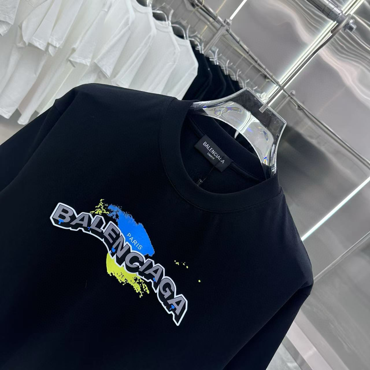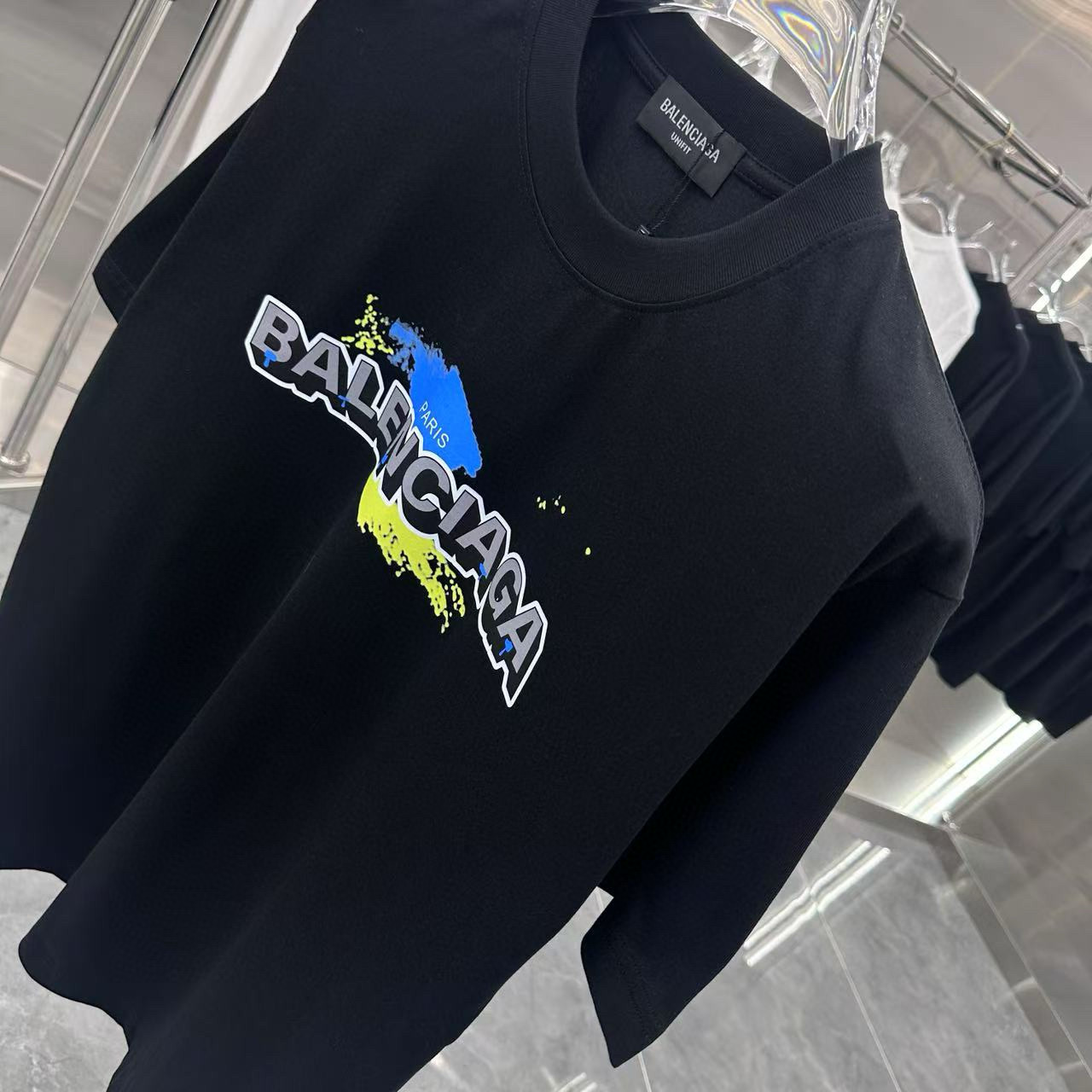 这款衣服是AAAAA 1:1 质量 (非常棒). 使用了和原版一模一样的材料. 商标部分也保持了和巴黎世家/Balenciaga一样. 图片拍摄是实物衣服拍摄, 您所收到的实物保证和我们图片一模一样.