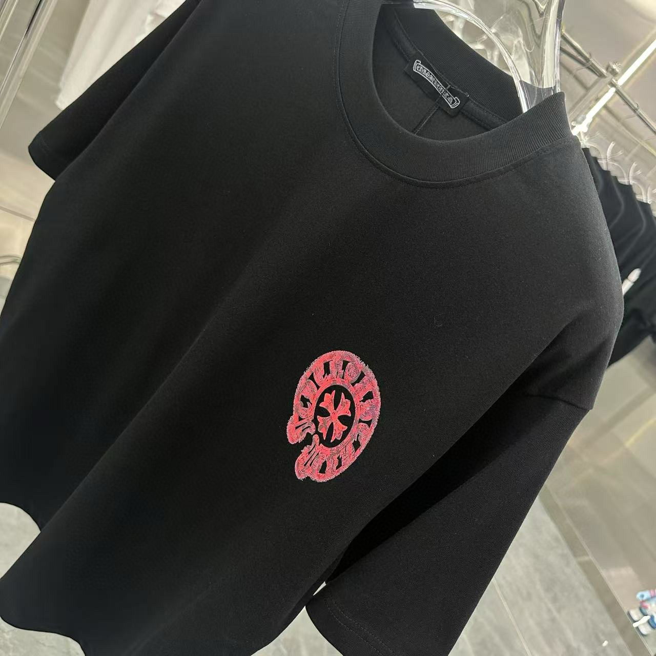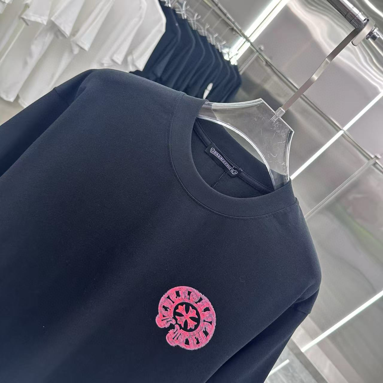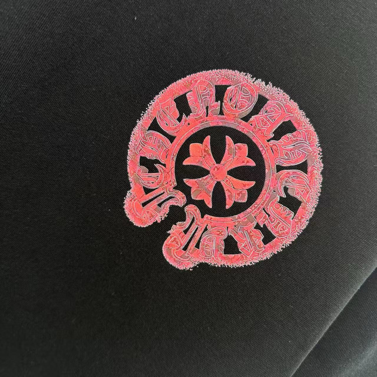 这款衣服是AAAAA 1:1 质量 (非常棒). 使用了和原版一模一样的材料. 商标部分也保持了和克罗心/Chrome Hearts一样. 图片拍摄是实物衣服拍摄, 您所收到的实物保证和我们图片一模一样.