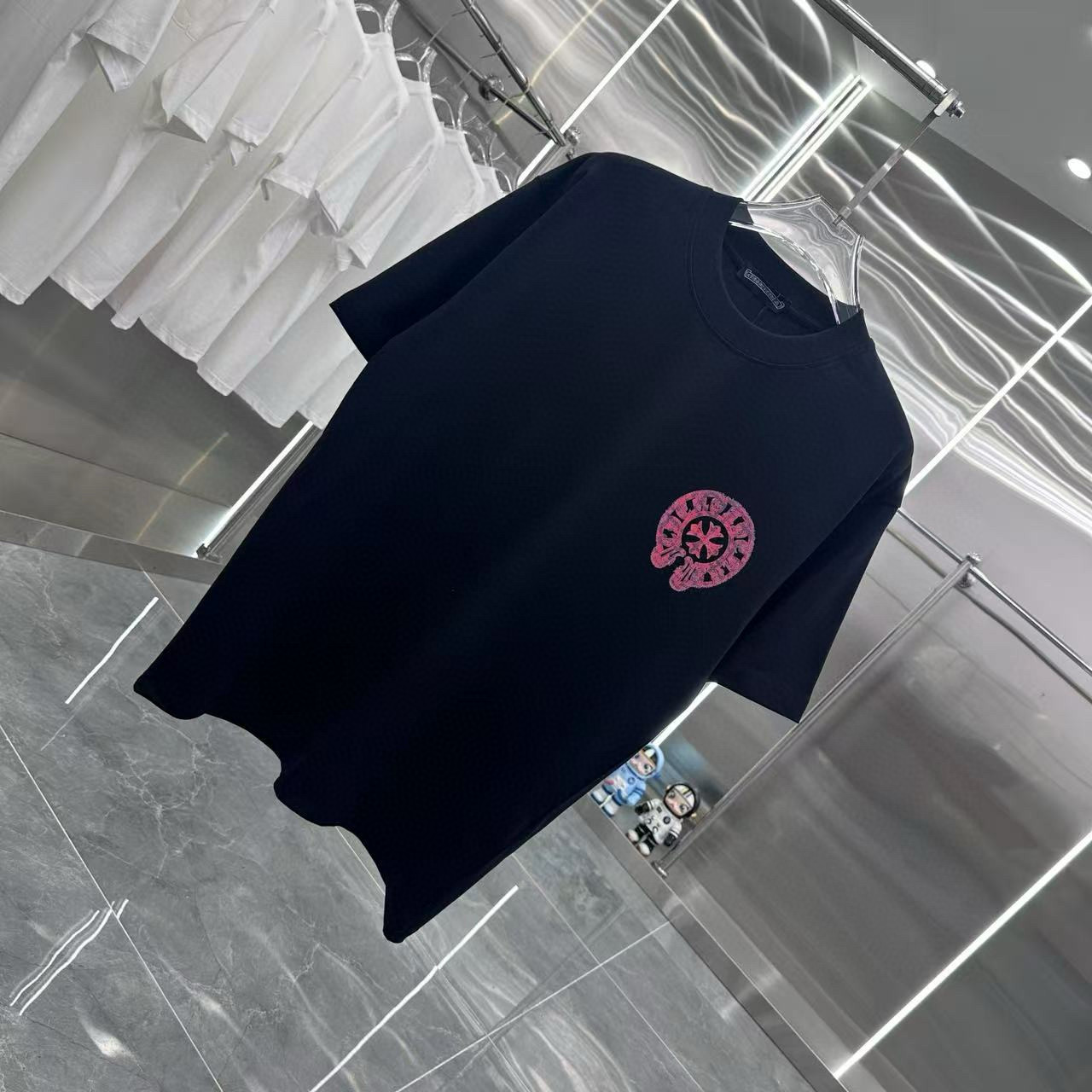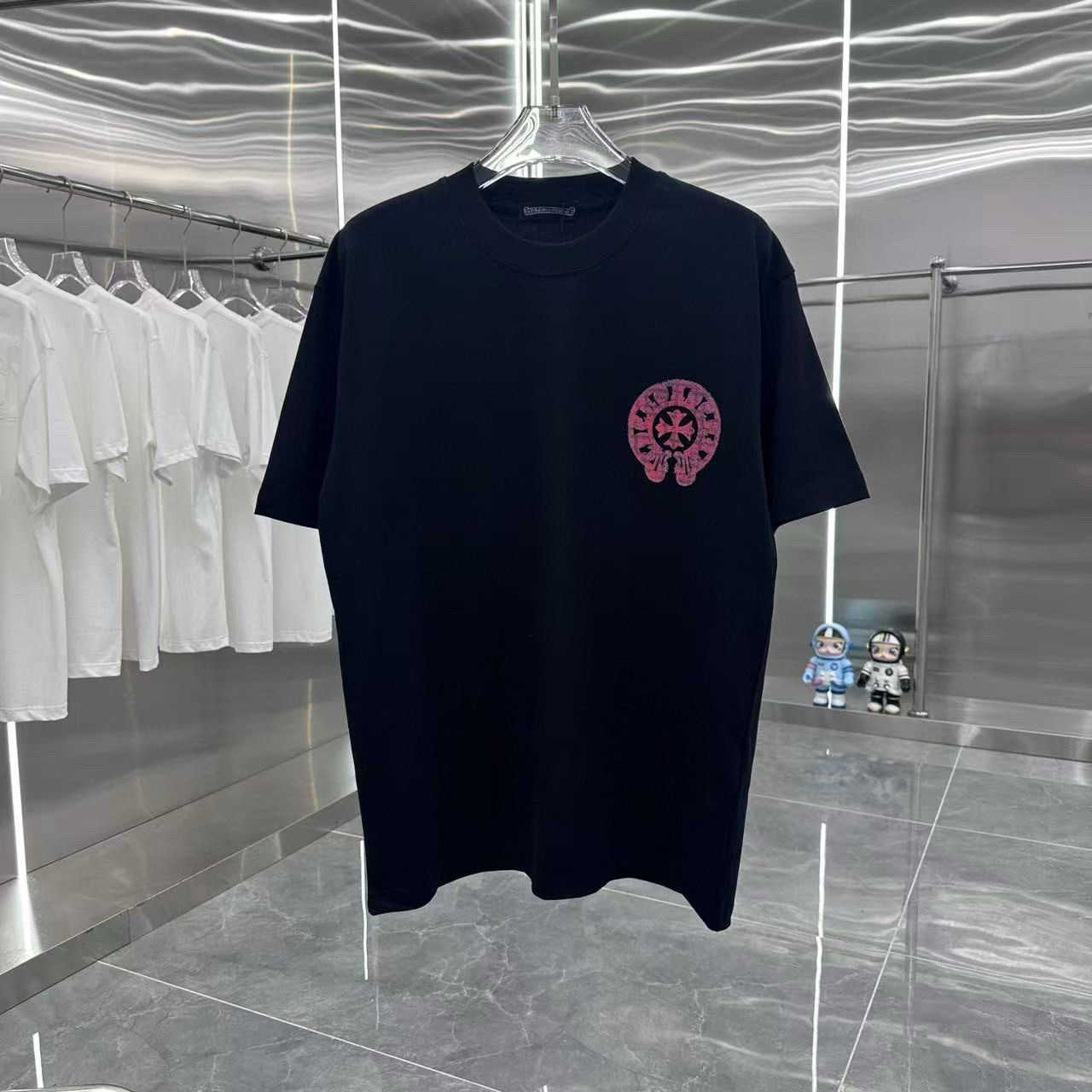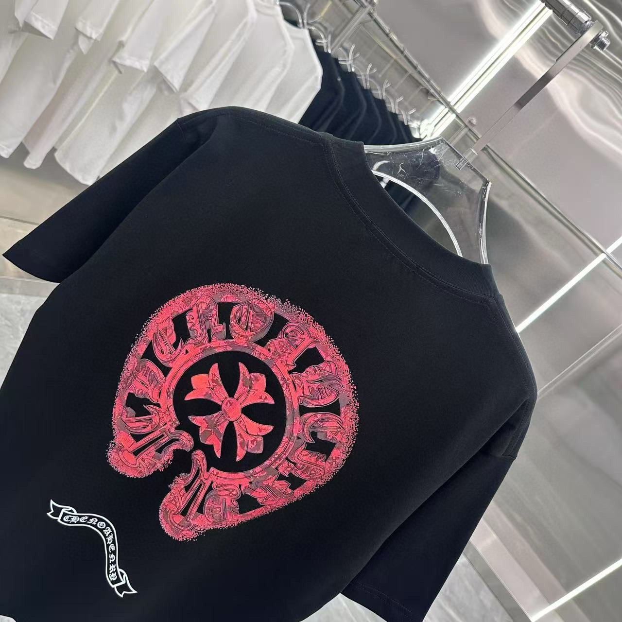这款衣服是AAAAA 1:1 质量 (非常棒). 使用了和原版一模一样的材料. 商标部分也保持了和克罗心/Chrome Hearts一样. 图片拍摄是实物衣服拍摄, 您所收到的实物保证和我们图片一模一样.