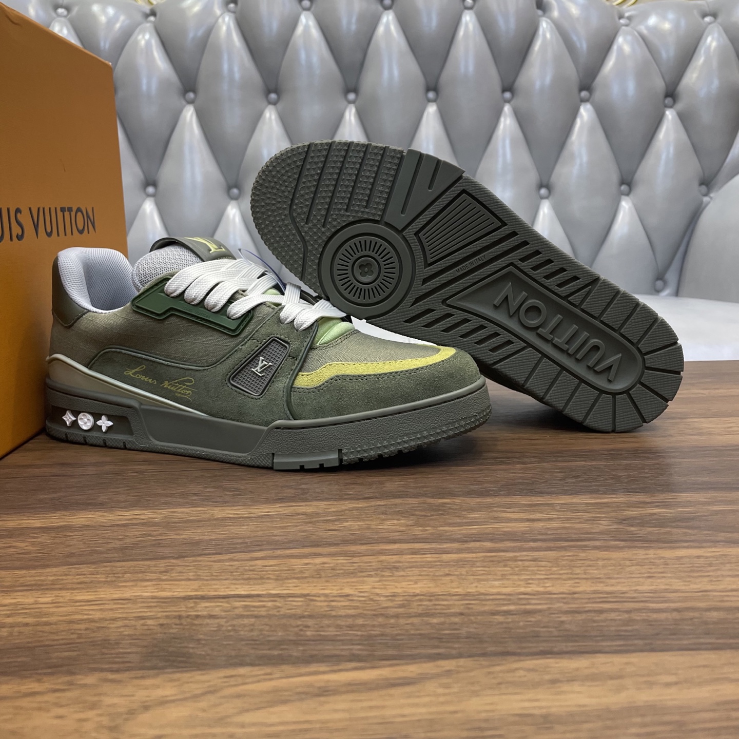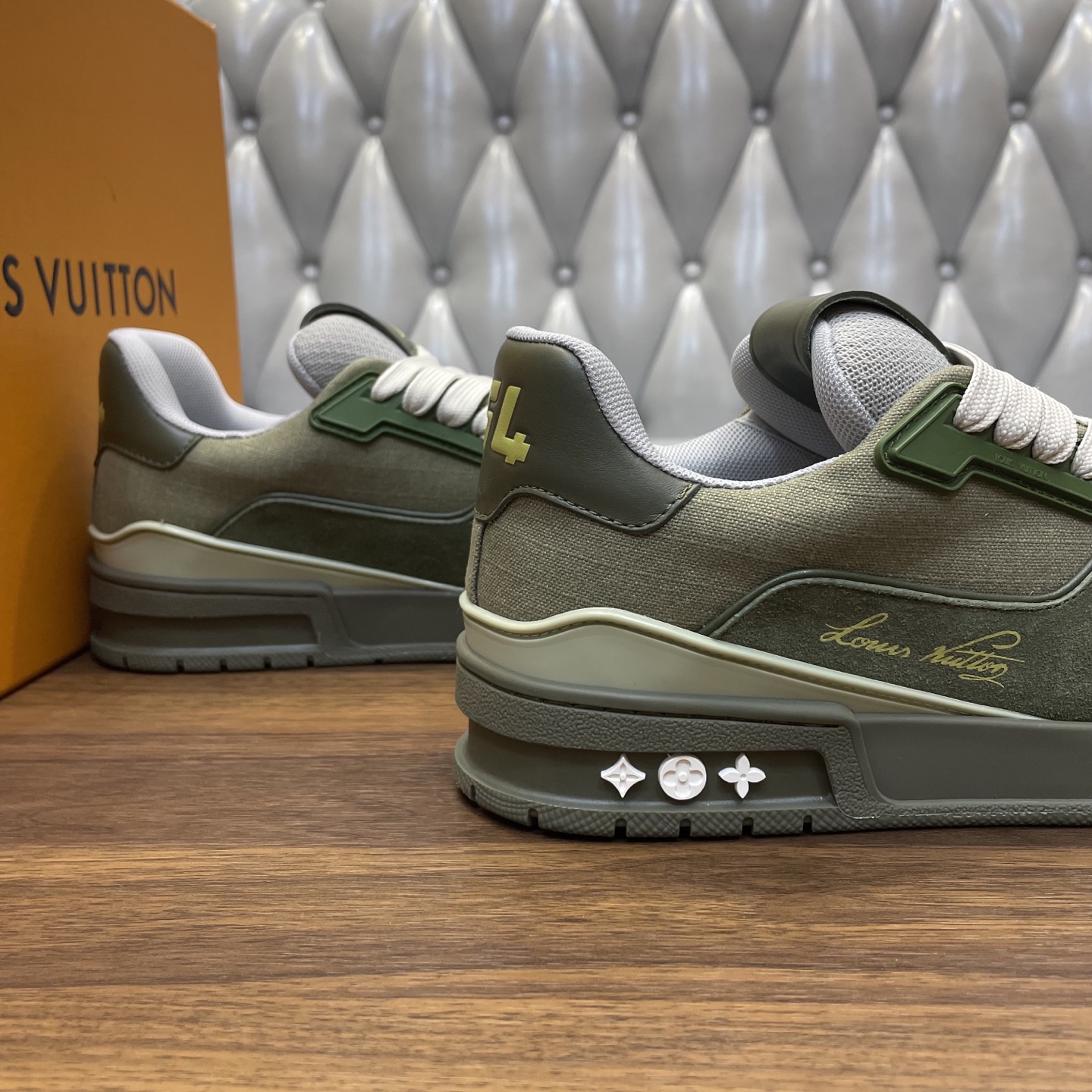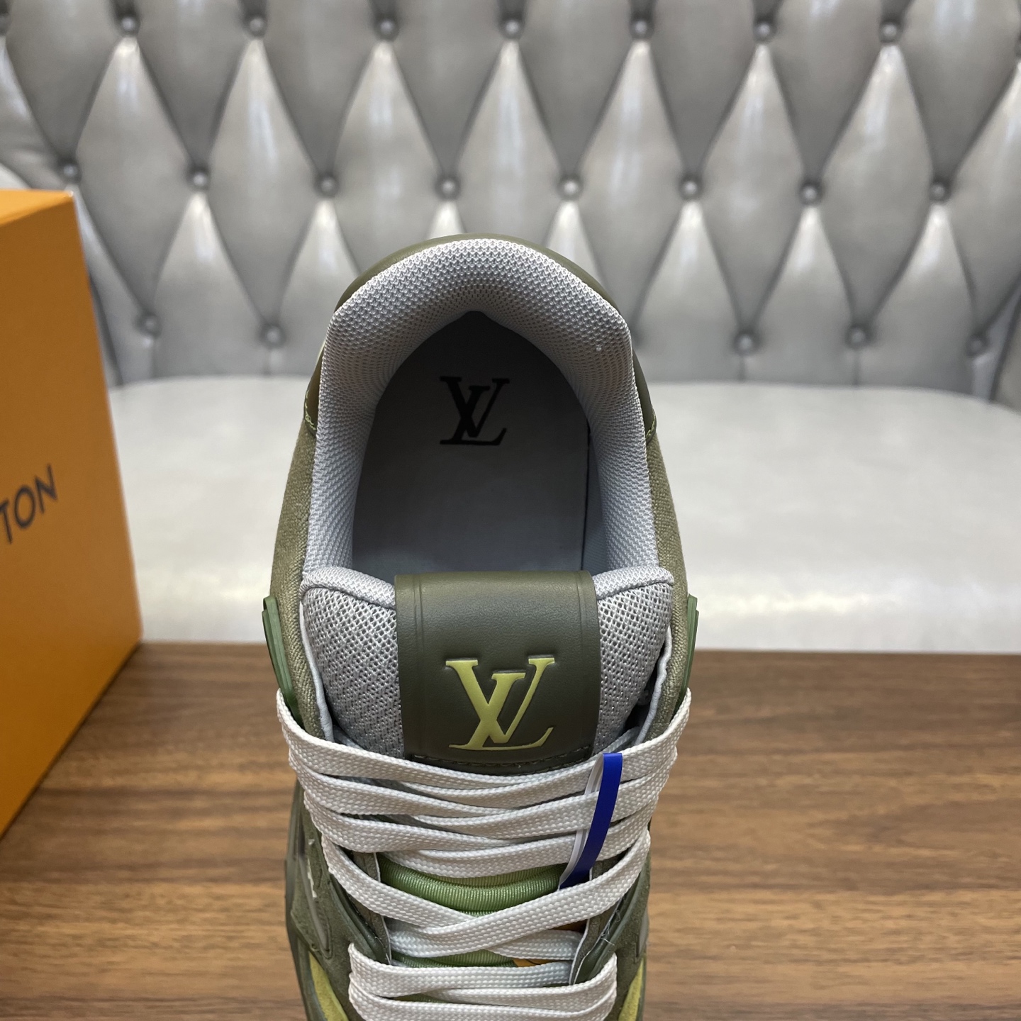 这款鞋子是AAAAA 1:1 质量 (非常棒). 使用了和原版一模一样的材料. 商标部分也保持了和路易威登/Louis Vuitton一样. 图片拍摄是实物鞋子拍摄, 您所收到的实物保证和我们图片一模一样.