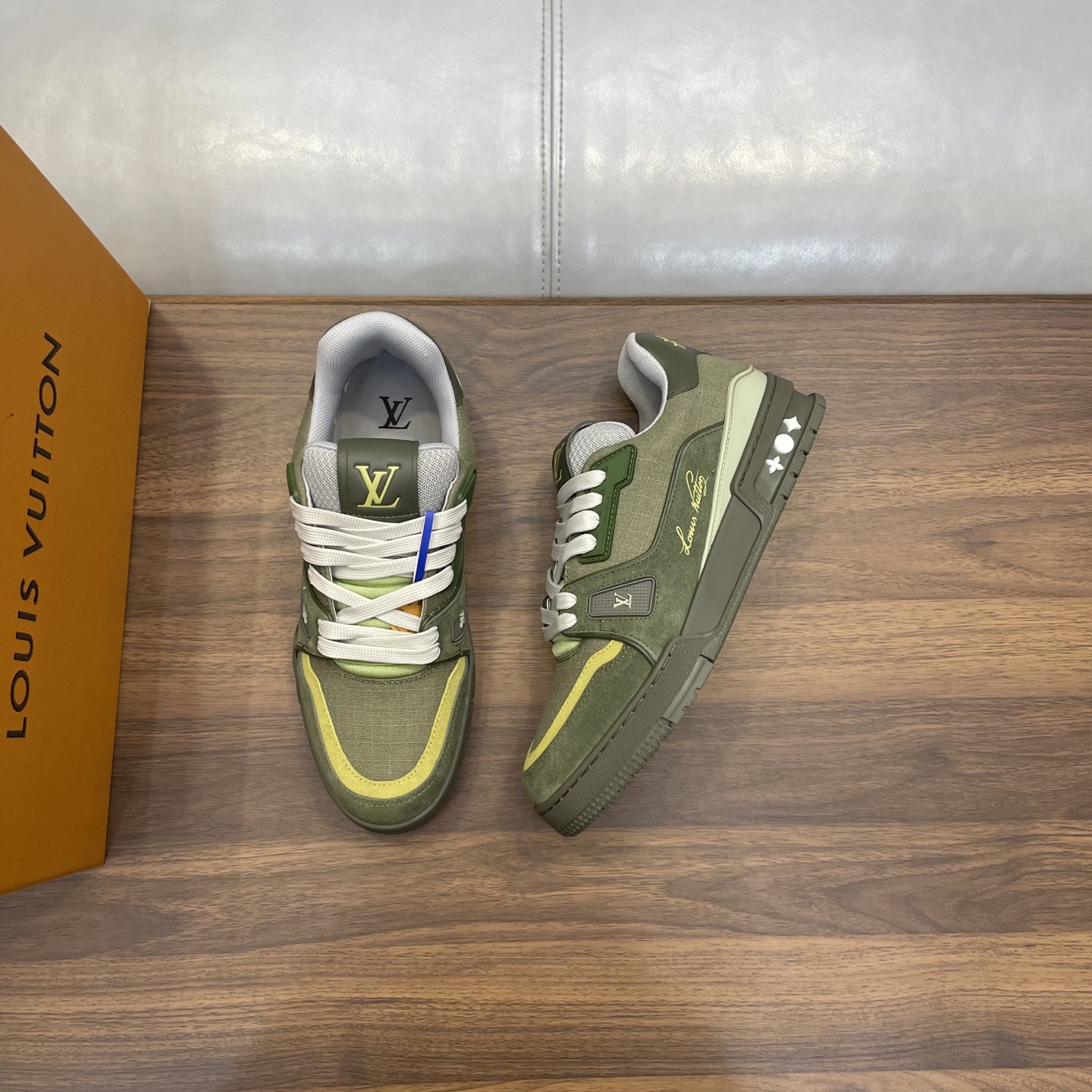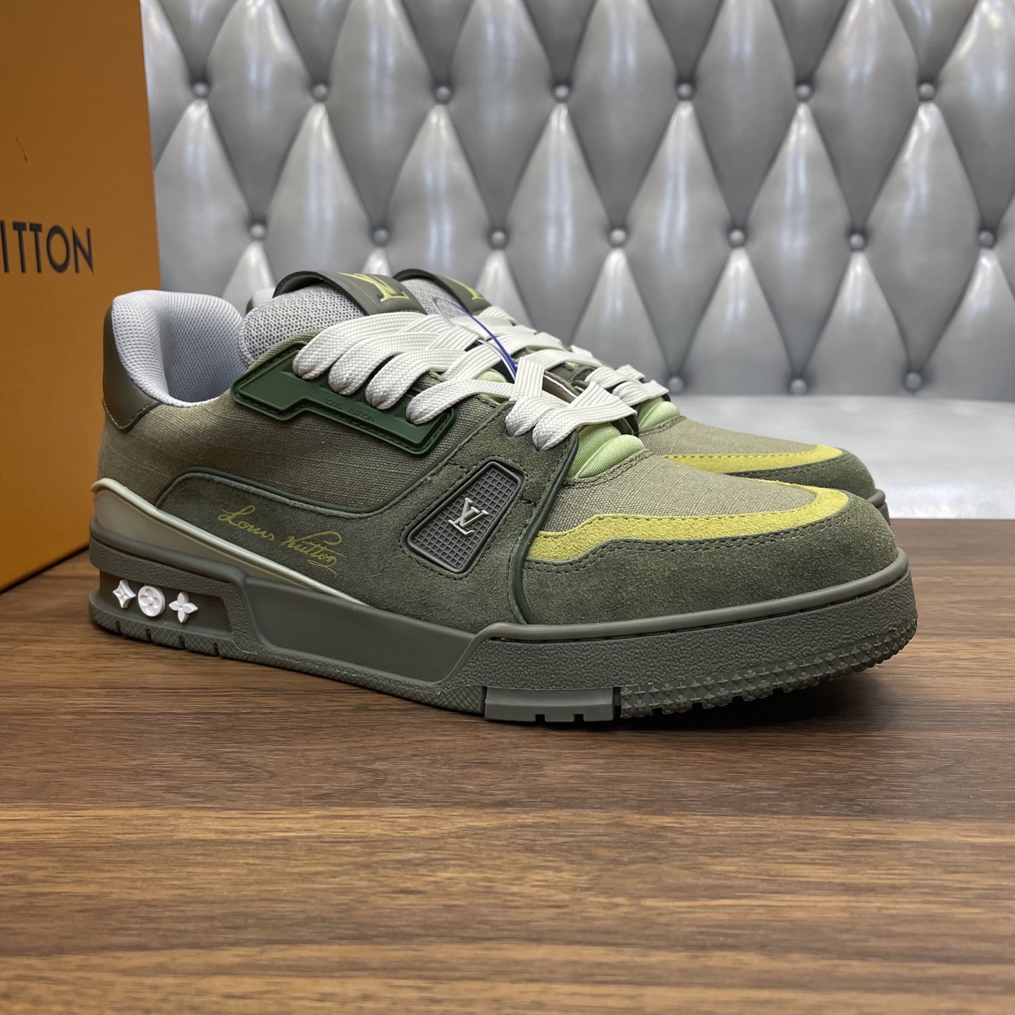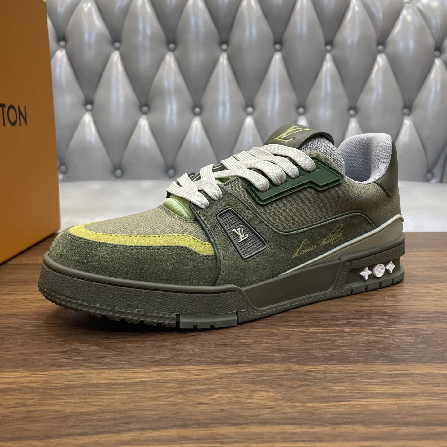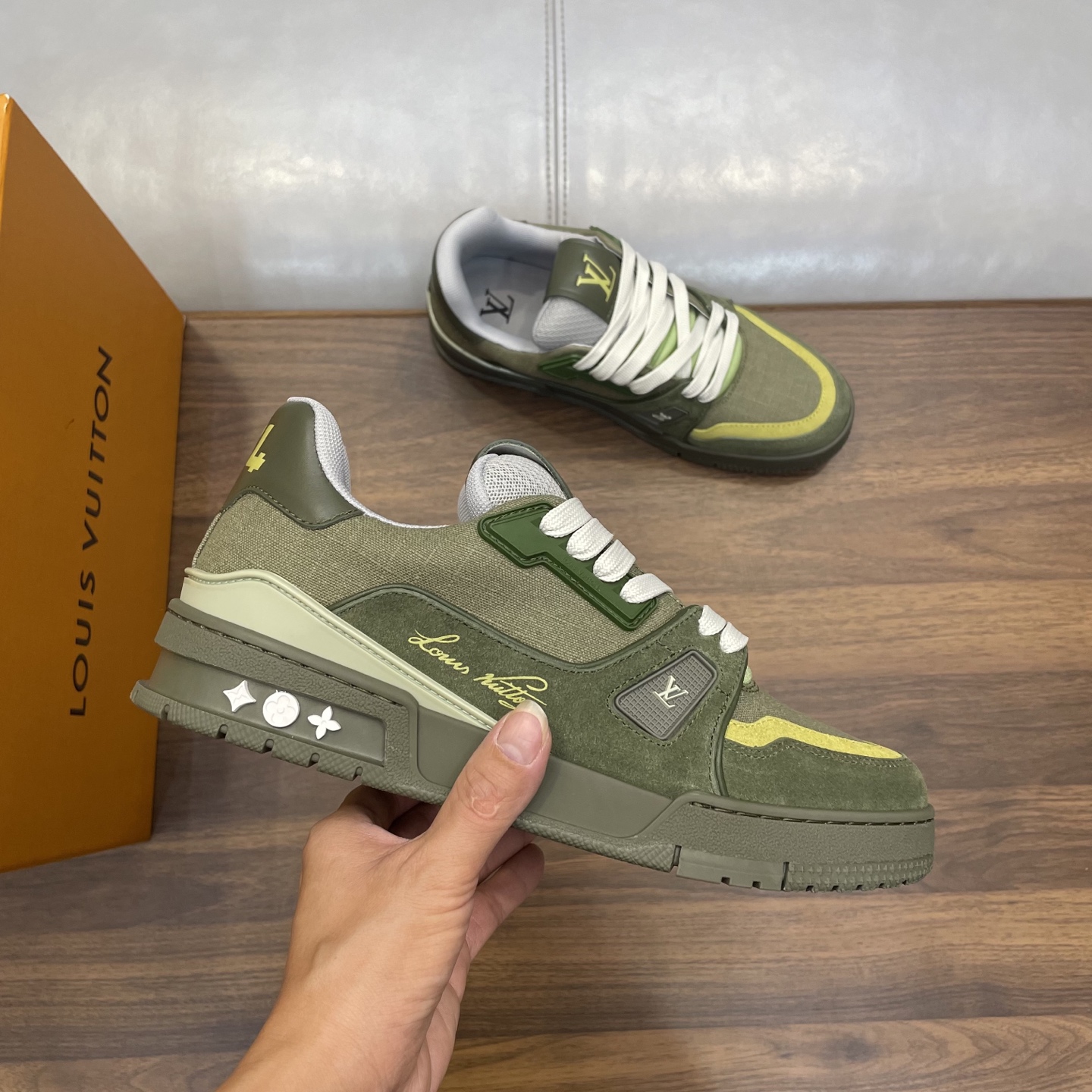 这款鞋子是AAAAA 1:1 质量 (非常棒). 使用了和原版一模一样的材料. 商标部分也保持了和路易威登/Louis Vuitton一样. 图片拍摄是实物鞋子拍摄, 您所收到的实物保证和我们图片一模一样.