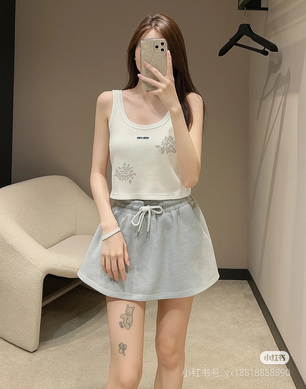 这款衣服是AAAAA 1:1 质量 (非常棒). 使用了和原版一模一样的材料. 商标部分也保持了和缪缪/Miu Miu一样. 图片拍摄是实物衣服拍摄, 您所收到的实物保证和我们图片一模一样.