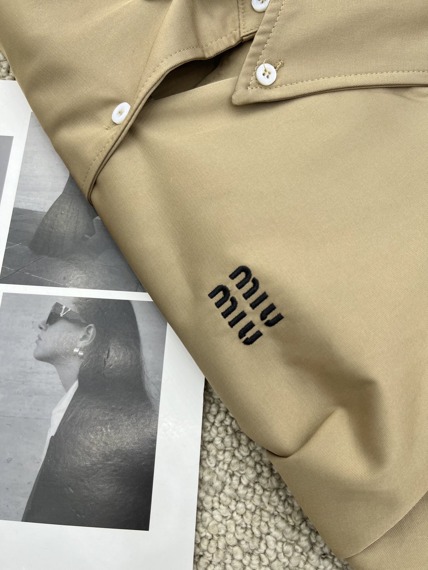 这款衣服是AAAAA 1:1 质量 (非常棒). 使用了和原版一模一样的材料. 商标部分也保持了和缪缪/Miu Miu一样. 图片拍摄是实物衣服拍摄, 您所收到的实物保证和我们图片一模一样.