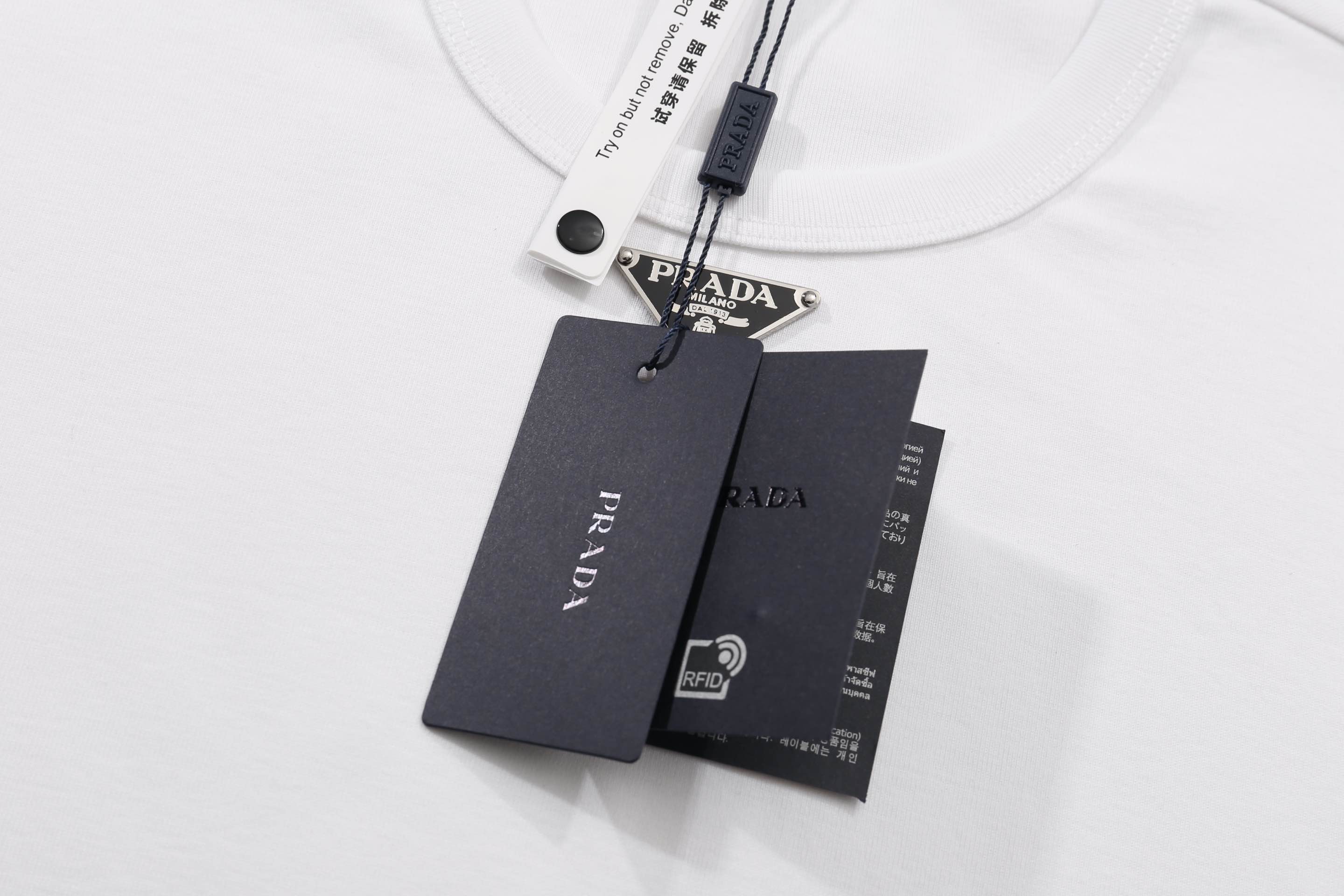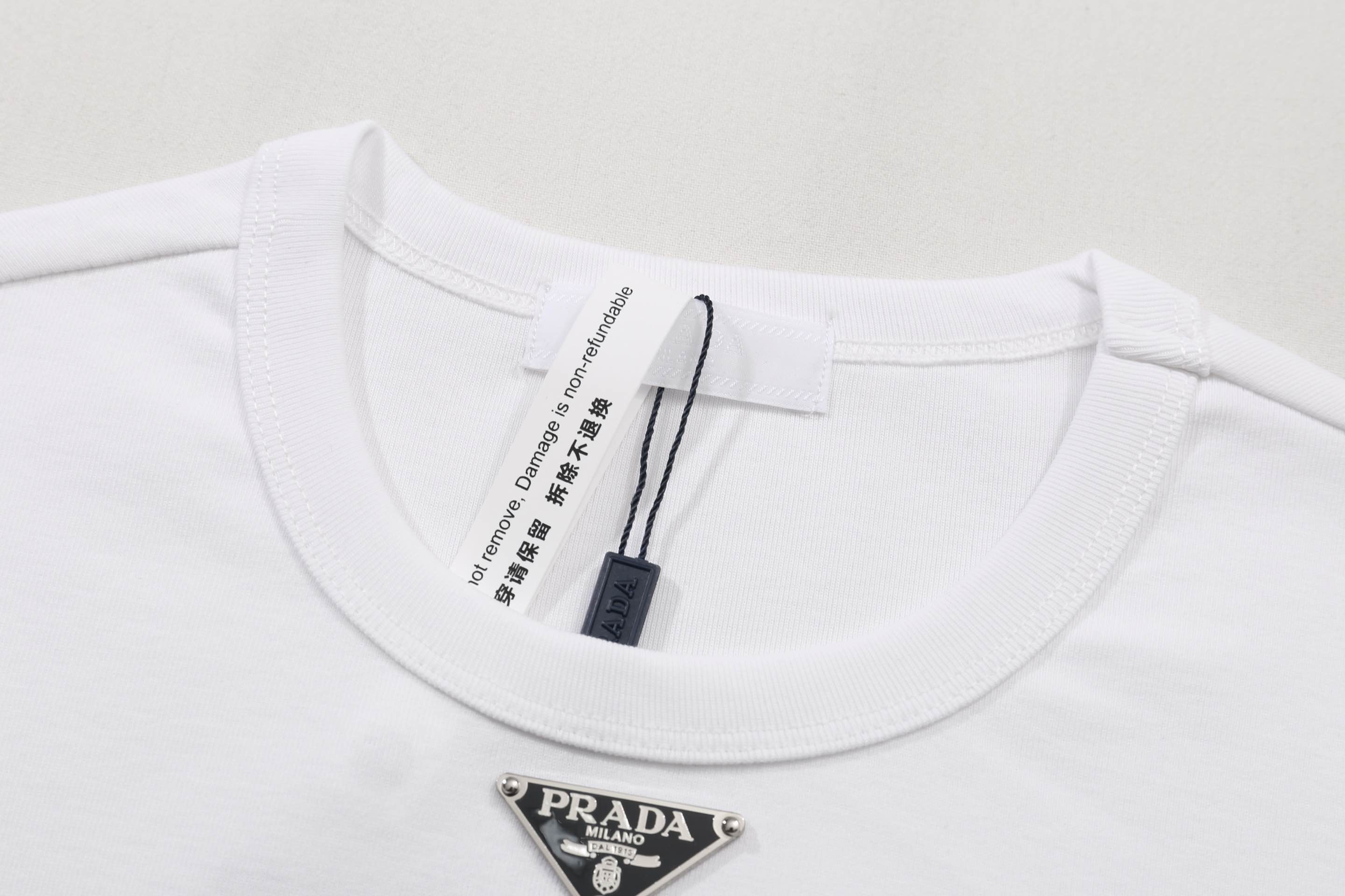 这款衣服是AAAAA 1:1 质量 (非常棒). 使用了和原版一模一样的材料. 商标部分也保持了和普拉达/Prada一样. 图片拍摄是实物衣服拍摄, 您所收到的实物保证和我们图片一模一样.