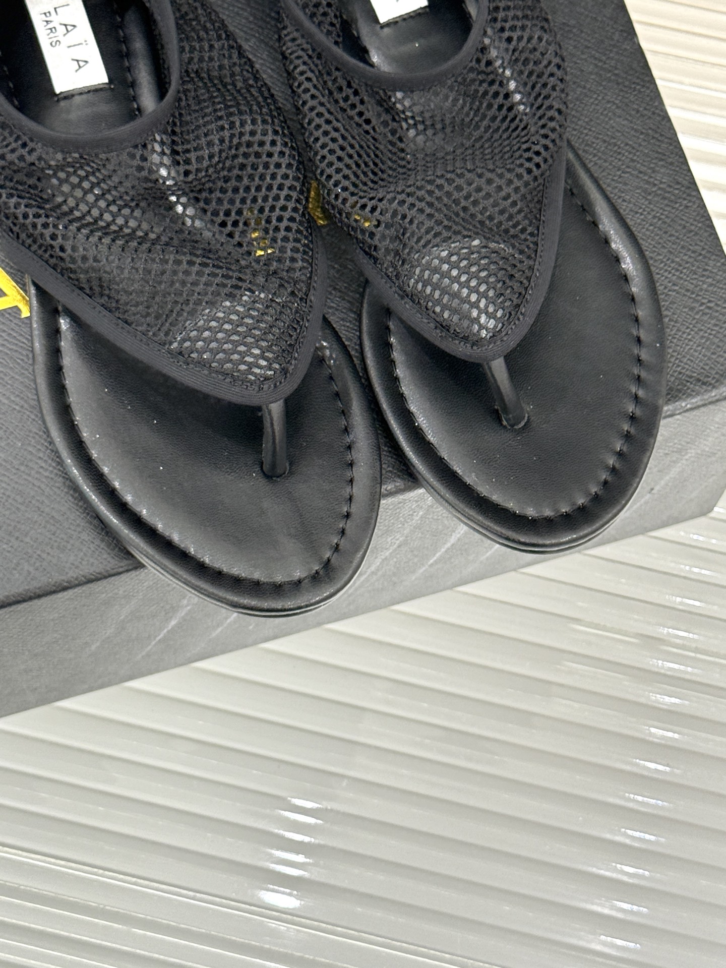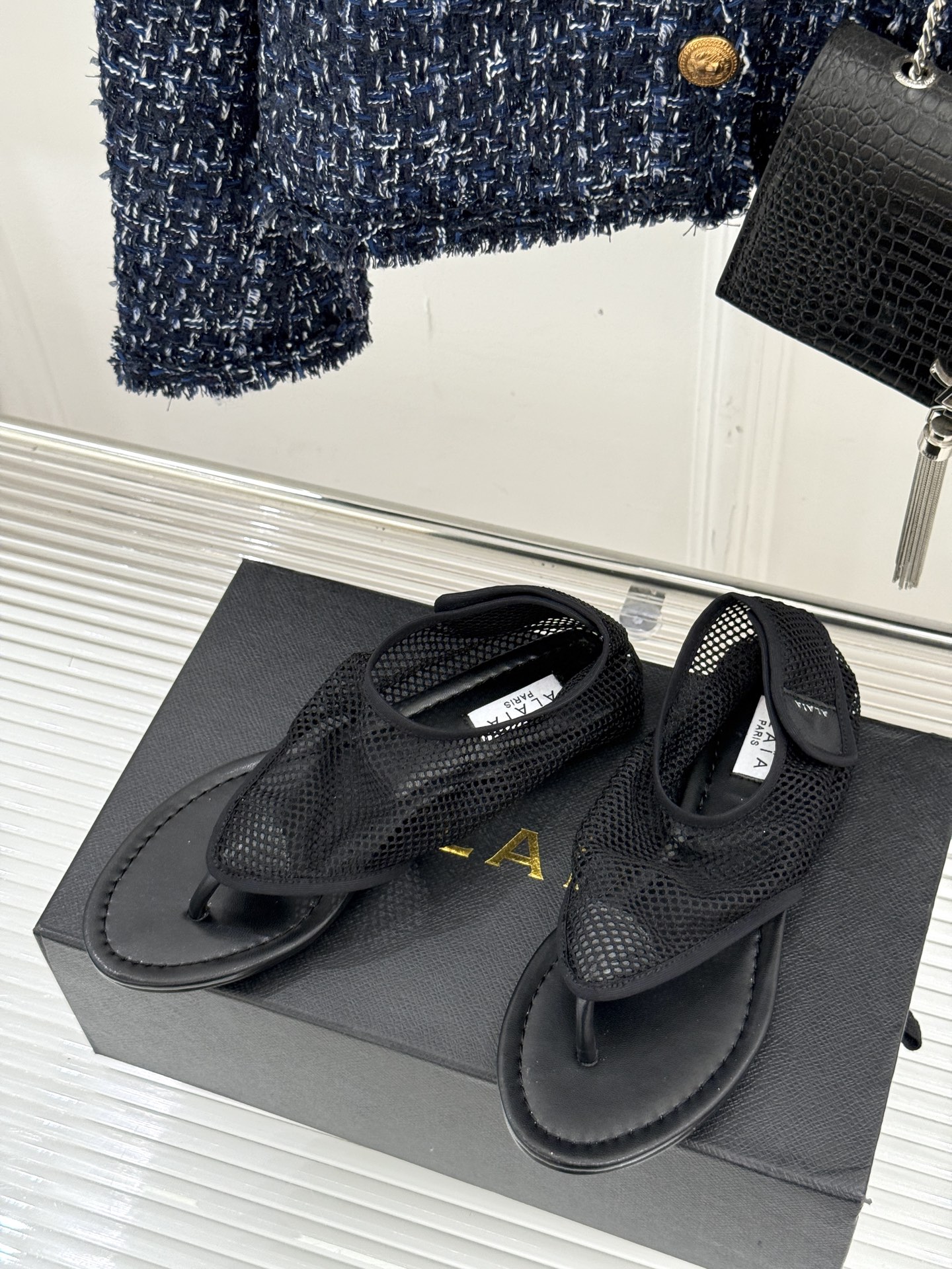 这款鞋子是AAAAA 1:1 质量 (非常棒). 使用了和原版一模一样的材料. 商标部分也保持了和Alaia一样. 图片拍摄是实物鞋子拍摄, 您所收到的实物保证和我们图片一模一样.
