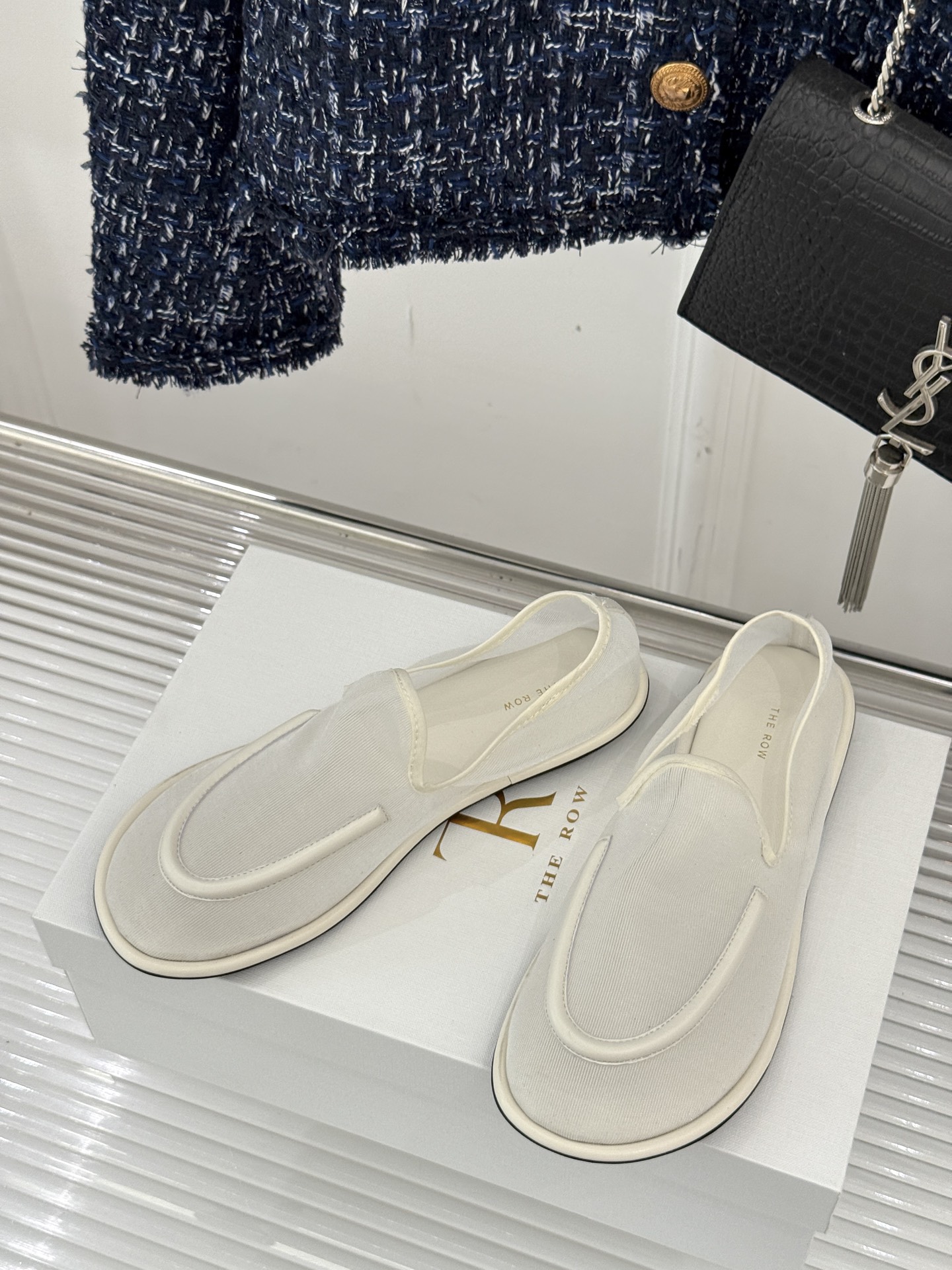 这款鞋子是AAAAA 1:1 质量 (非常棒). 使用了和原版一模一样的材料. 商标部分也保持了和The Row一样. 图片拍摄是实物鞋子拍摄, 您所收到的实物保证和我们图片一模一样.
