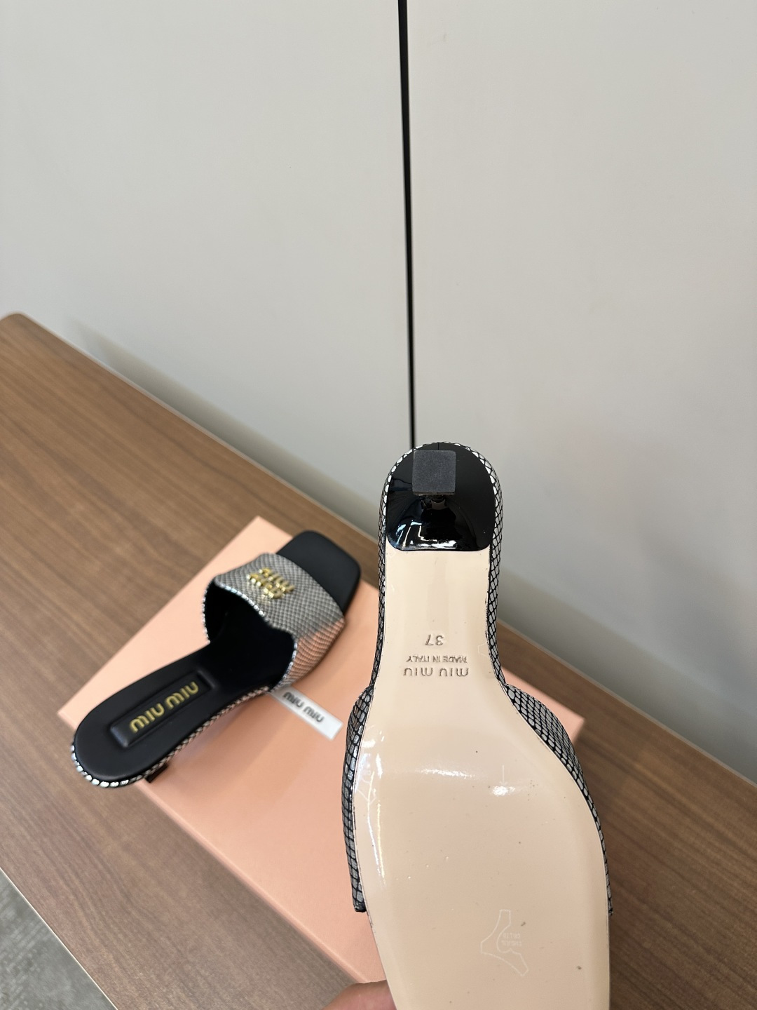 这款鞋子是AAAAA 1:1 质量 (非常棒). 使用了和原版一模一样的材料. 商标部分也保持了和缪缪/Miu Miu一样. 图片拍摄是实物鞋子拍摄, 您所收到的实物保证和我们图片一模一样.