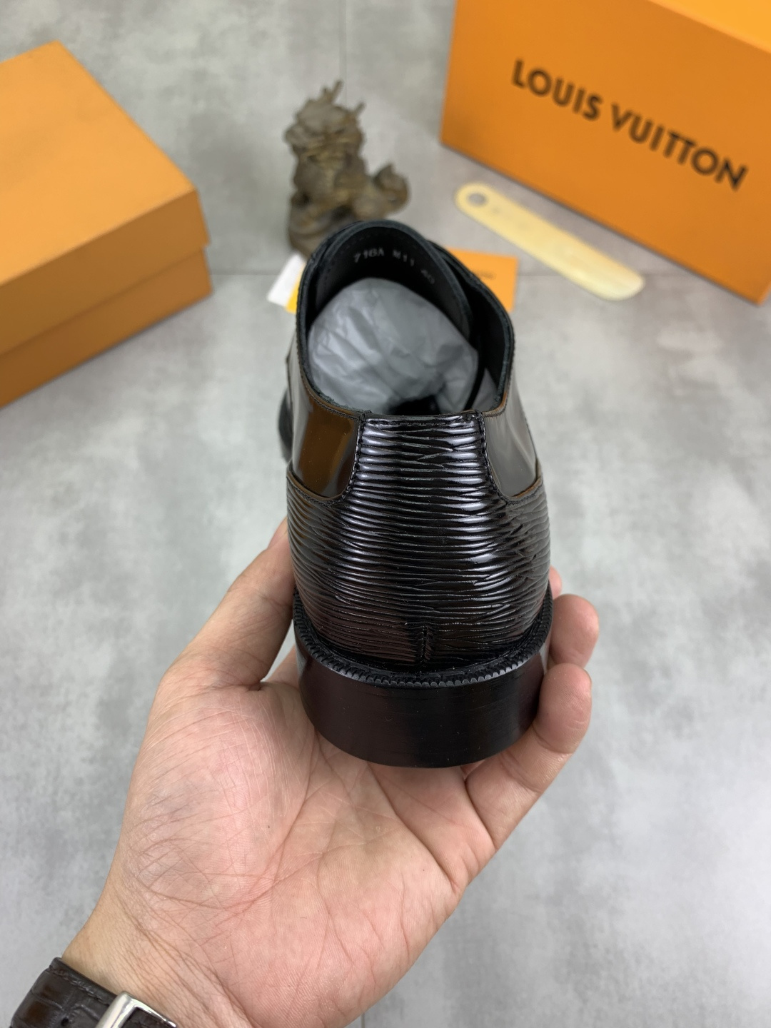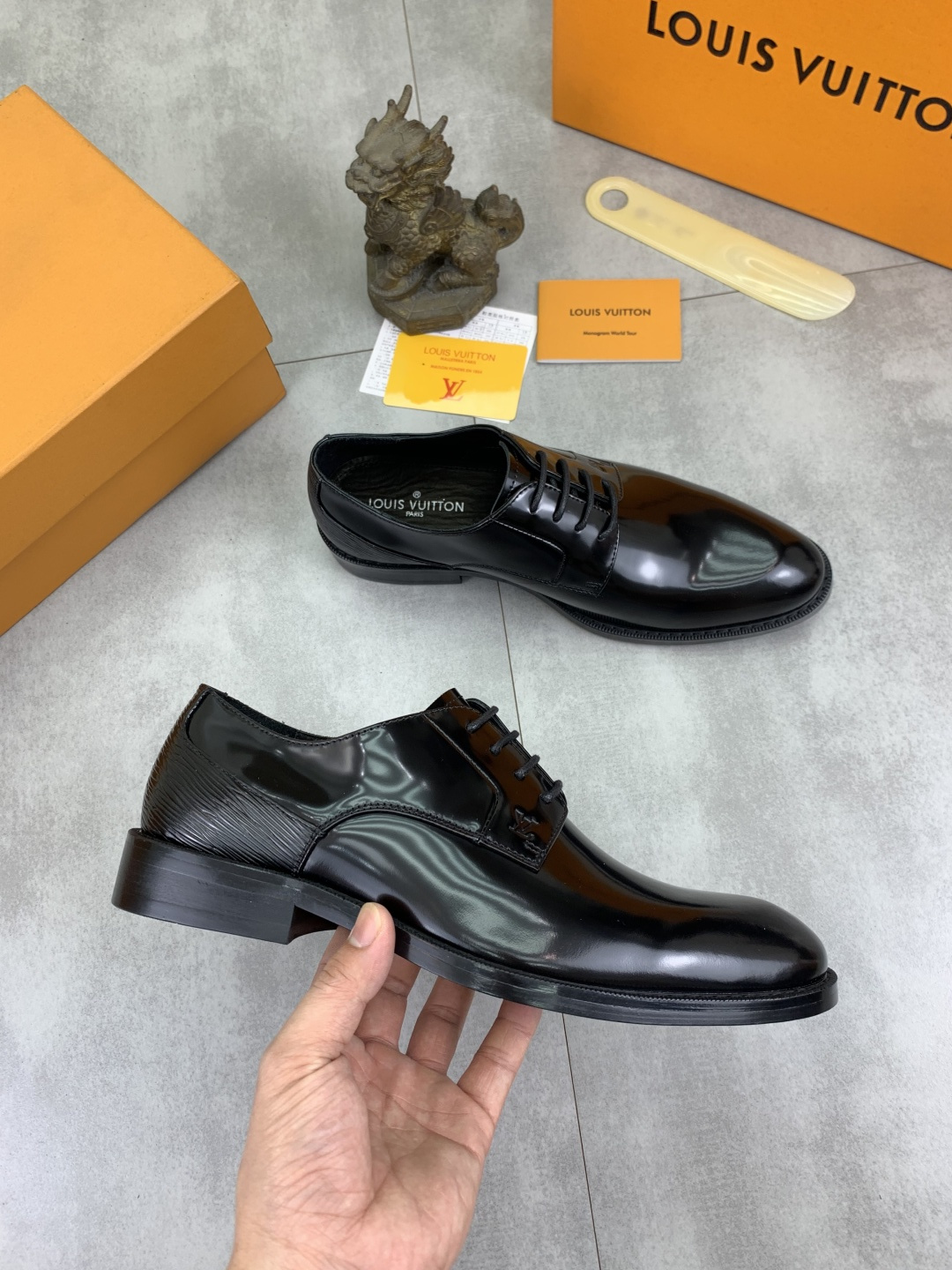 这款鞋子是AAAAA 1:1 质量 (非常棒). 使用了和原版一模一样的材料. 商标部分也保持了和路易威登/Louis Vuitton一样. 图片拍摄是实物鞋子拍摄, 您所收到的实物保证和我们图片一模一样.