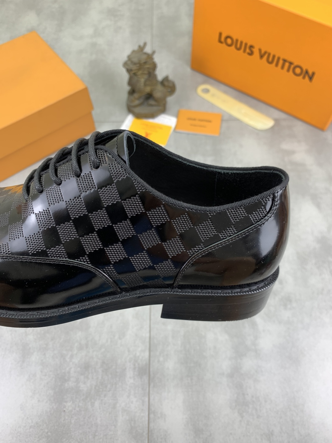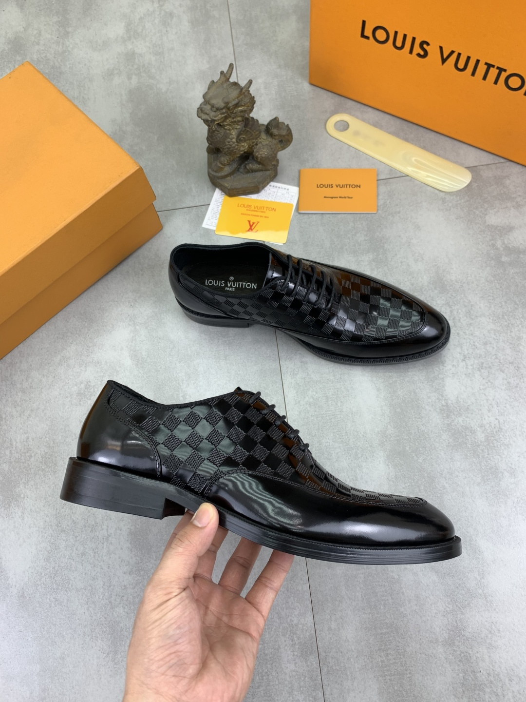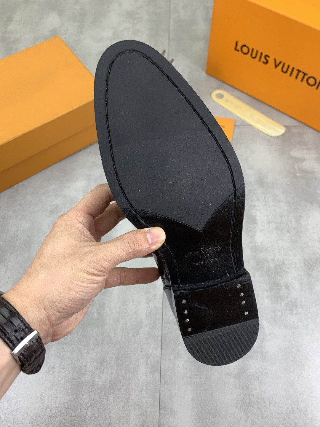 这款鞋子是AAAAA 1:1 质量 (非常棒). 使用了和原版一模一样的材料. 商标部分也保持了和路易威登/Louis Vuitton一样. 图片拍摄是实物鞋子拍摄, 您所收到的实物保证和我们图片一模一样.