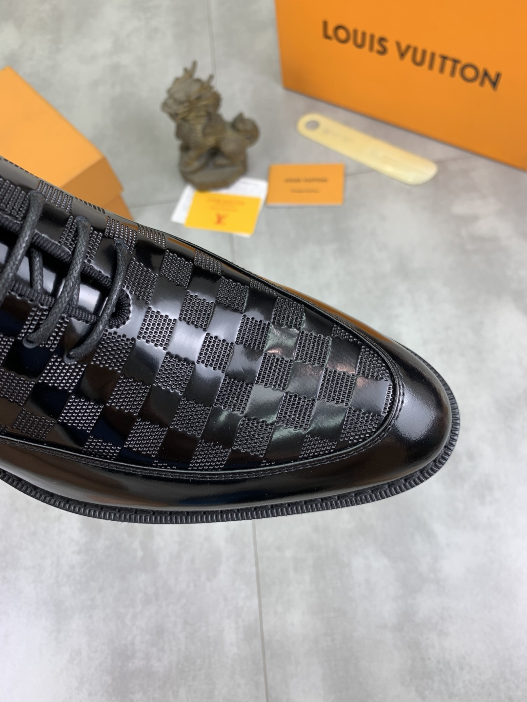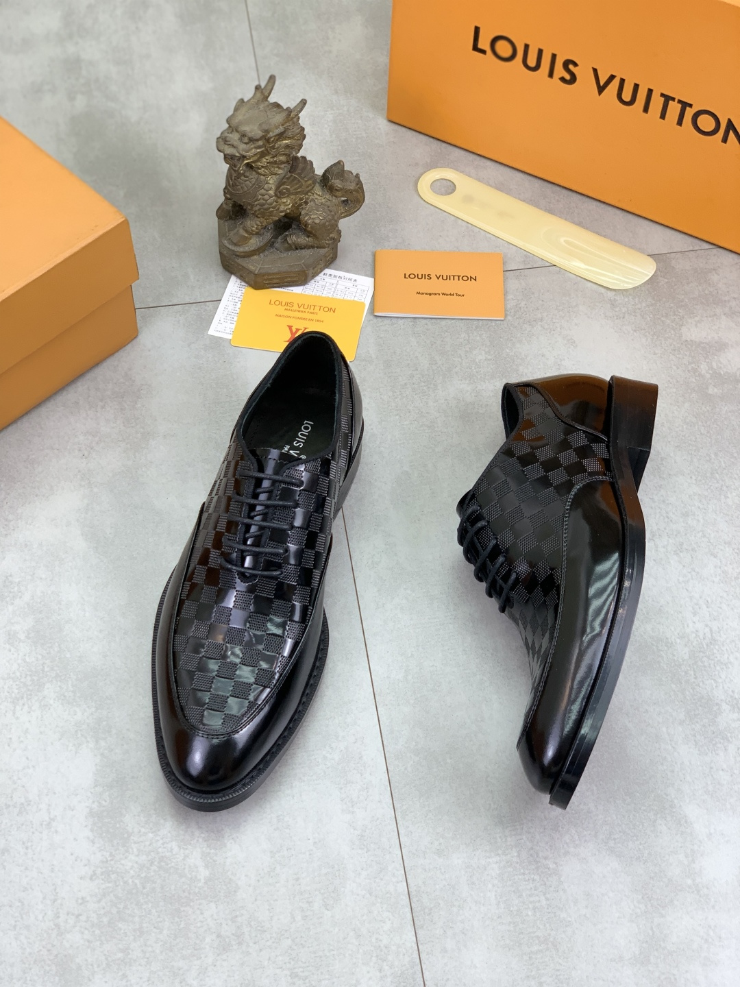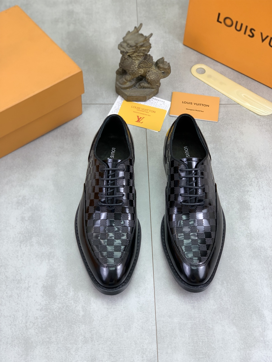 这款鞋子是AAAAA 1:1 质量 (非常棒). 使用了和原版一模一样的材料. 商标部分也保持了和路易威登/Louis Vuitton一样. 图片拍摄是实物鞋子拍摄, 您所收到的实物保证和我们图片一模一样.