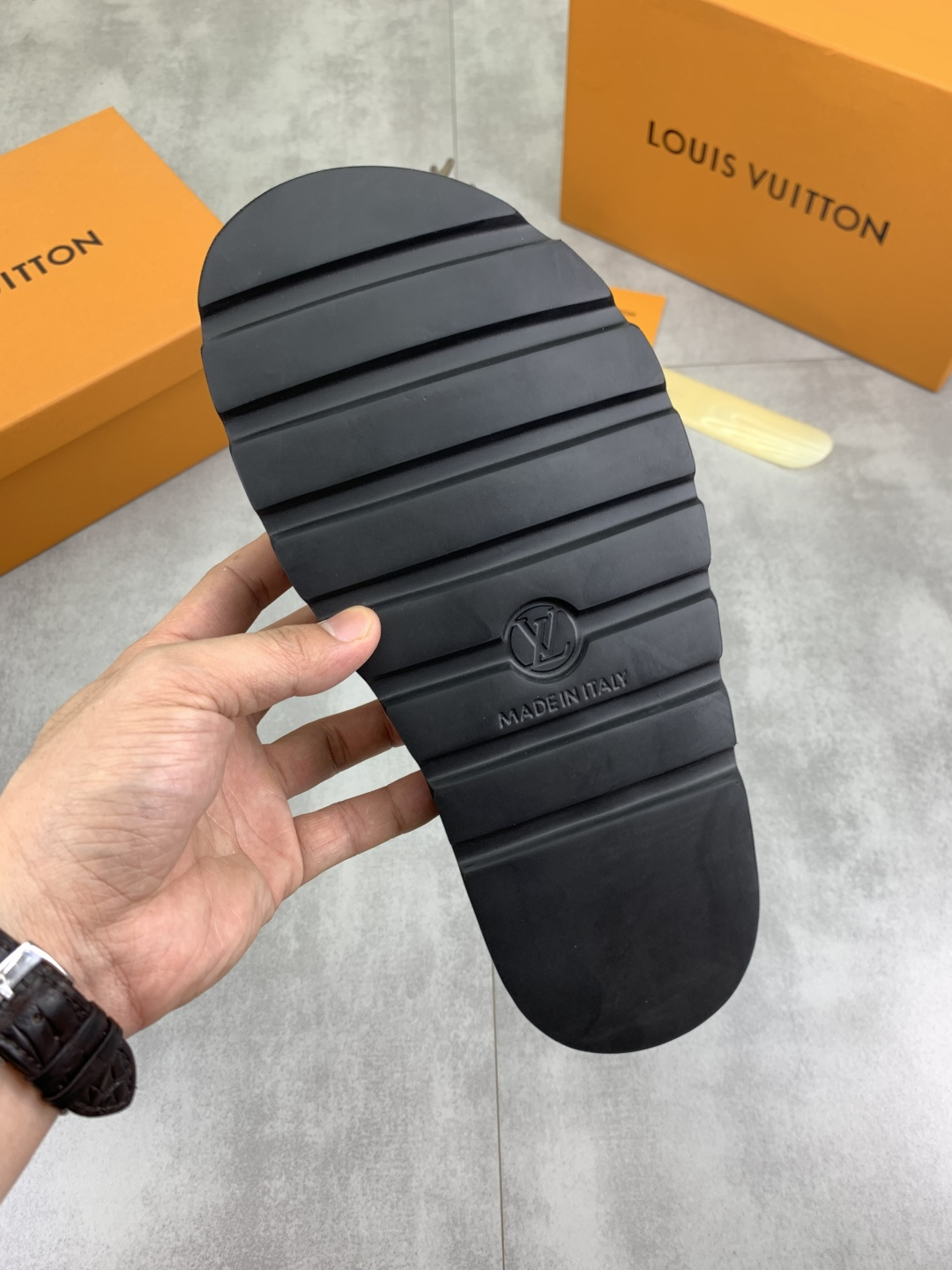这款鞋子是AAAAA 1:1 质量 (非常棒). 使用了和原版一模一样的材料. 商标部分也保持了和路易威登/Louis Vuitton一样. 图片拍摄是实物鞋子拍摄, 您所收到的实物保证和我们图片一模一样.