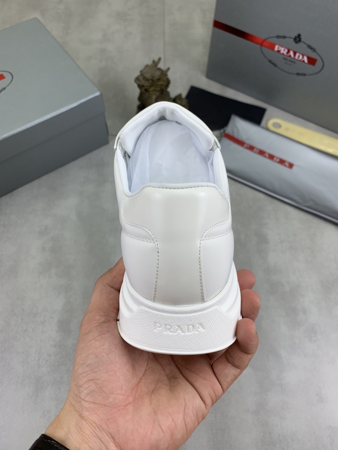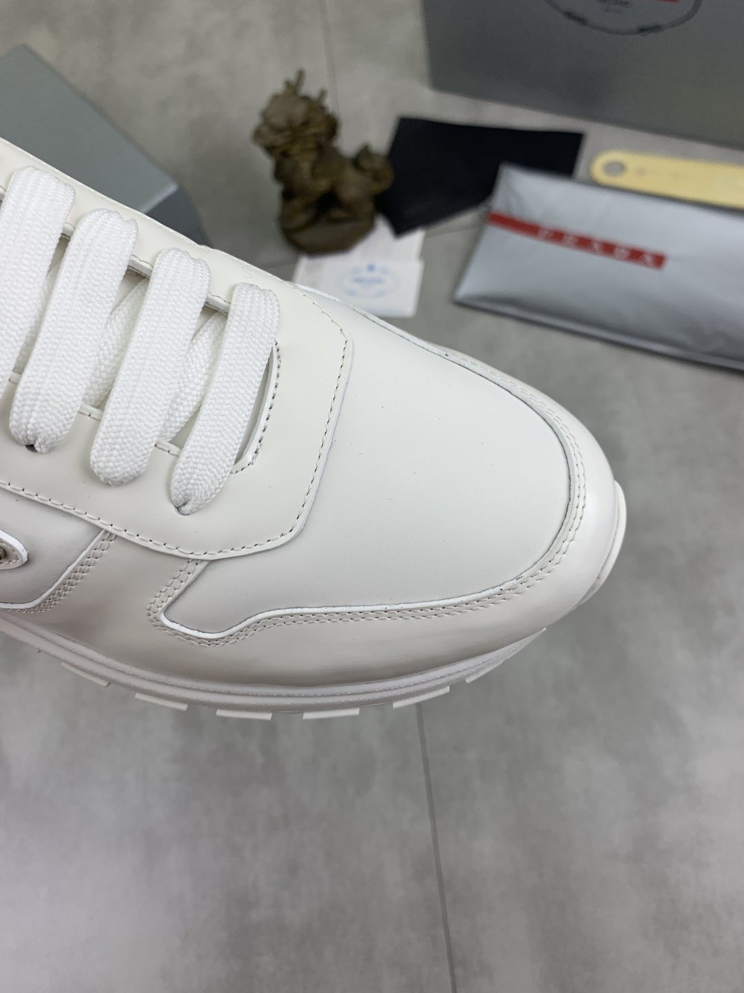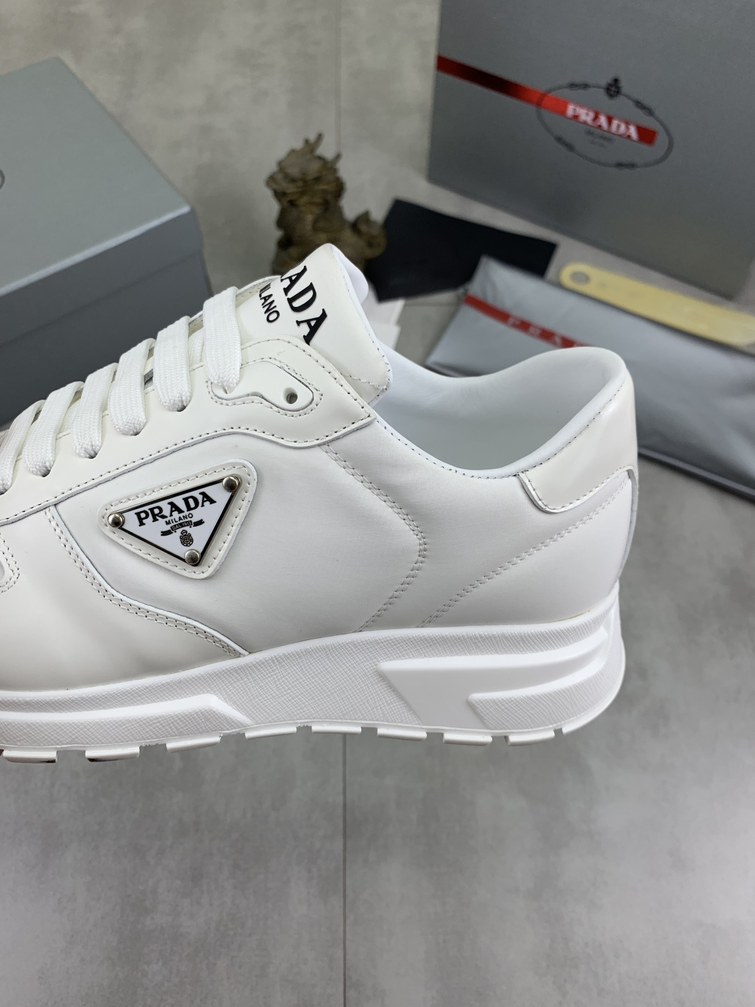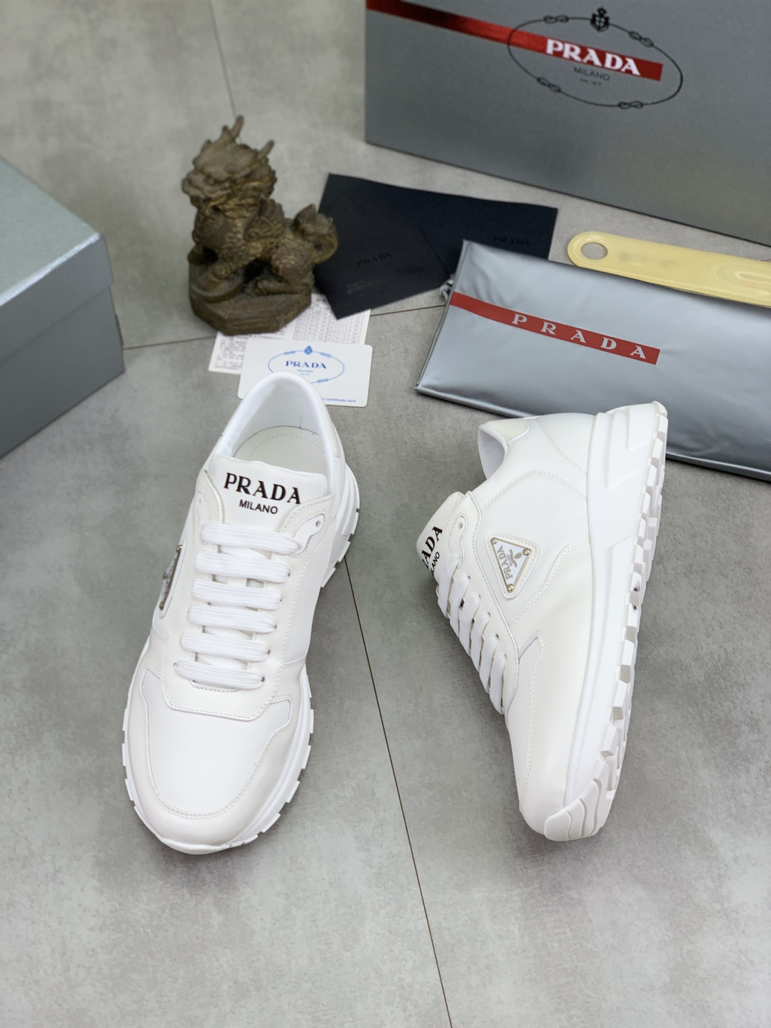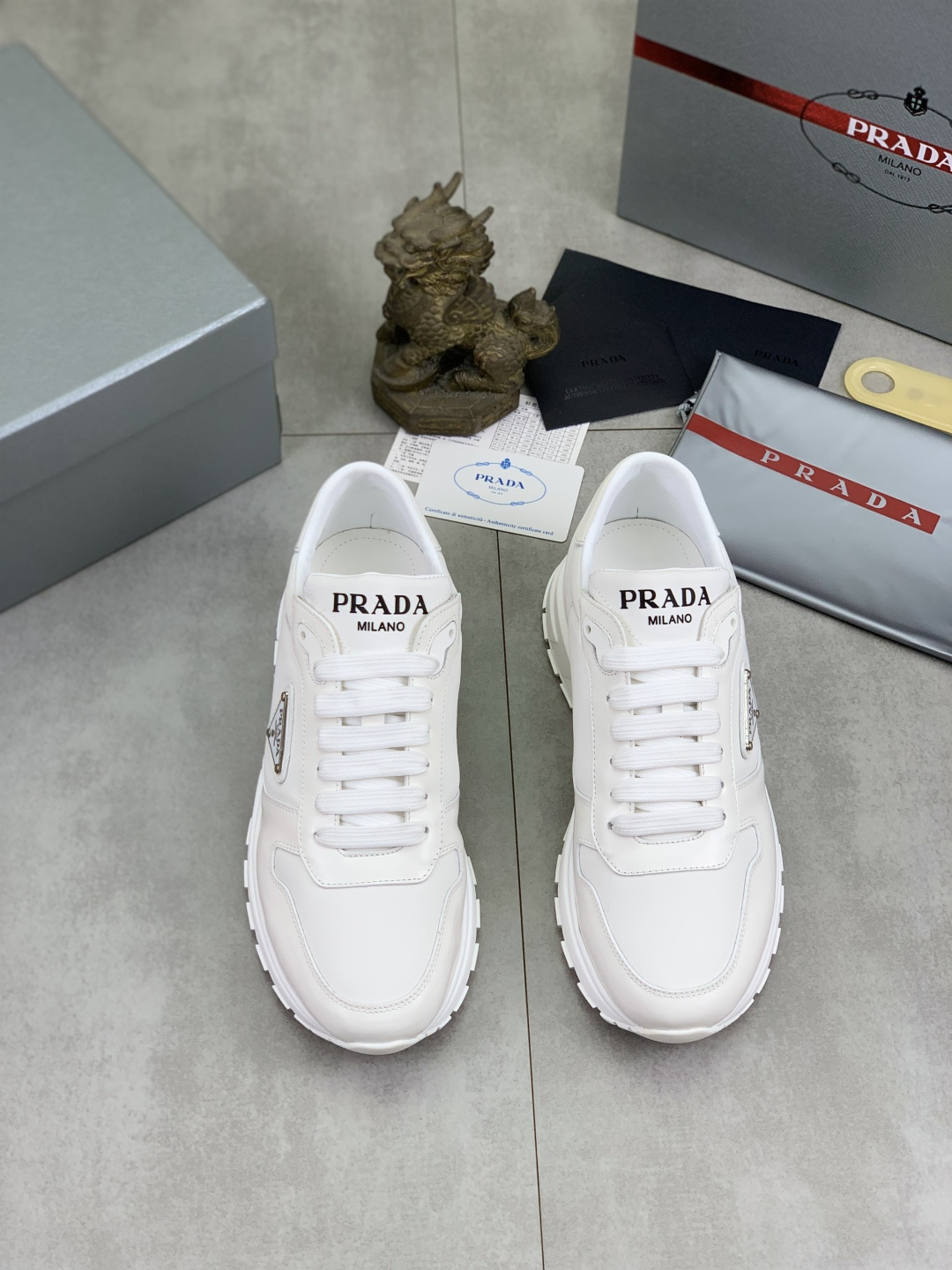 这款鞋子是AAAAA 1:1 质量 (非常棒). 使用了和原版一模一样的材料. 商标部分也保持了和普拉达/Prada一样. 图片拍摄是实物鞋子拍摄, 您所收到的实物保证和我们图片一模一样.