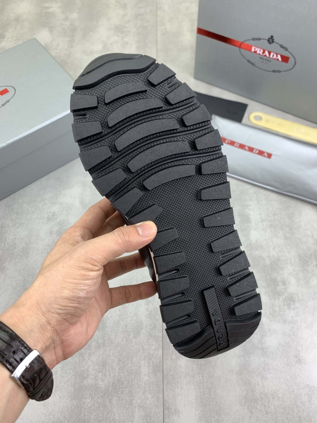 这款鞋子是AAAAA 1:1 质量 (非常棒). 使用了和原版一模一样的材料. 商标部分也保持了和普拉达/Prada一样. 图片拍摄是实物鞋子拍摄, 您所收到的实物保证和我们图片一模一样.