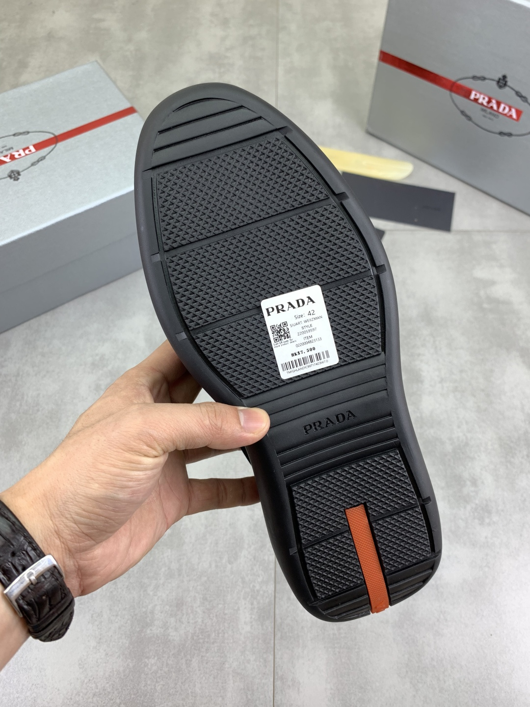 这款鞋子是AAAAA 1:1 质量 (非常棒). 使用了和原版一模一样的材料. 商标部分也保持了和普拉达/Prada一样. 图片拍摄是实物鞋子拍摄, 您所收到的实物保证和我们图片一模一样.