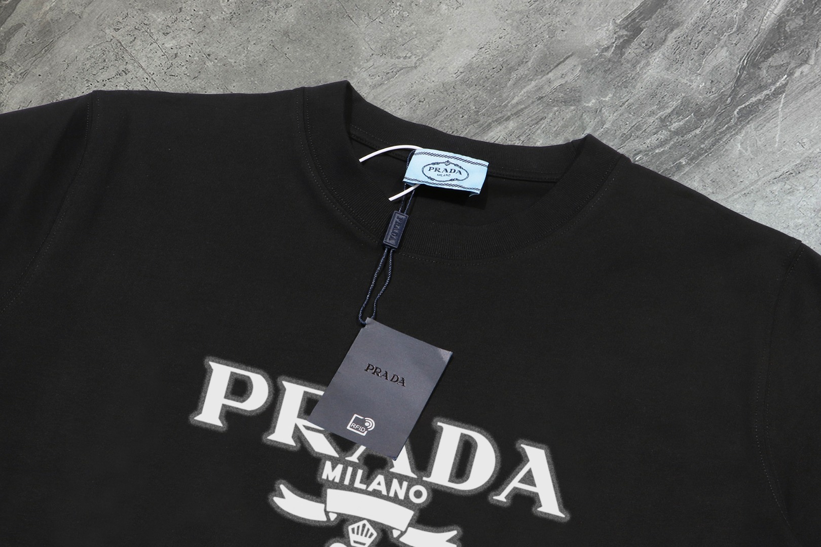 这款衣服是AAAAA 1:1 质量 (非常棒). 使用了和原版一模一样的材料. 商标部分也保持了和普拉达/Prada一样. 图片拍摄是实物衣服拍摄, 您所收到的实物保证和我们图片一模一样.