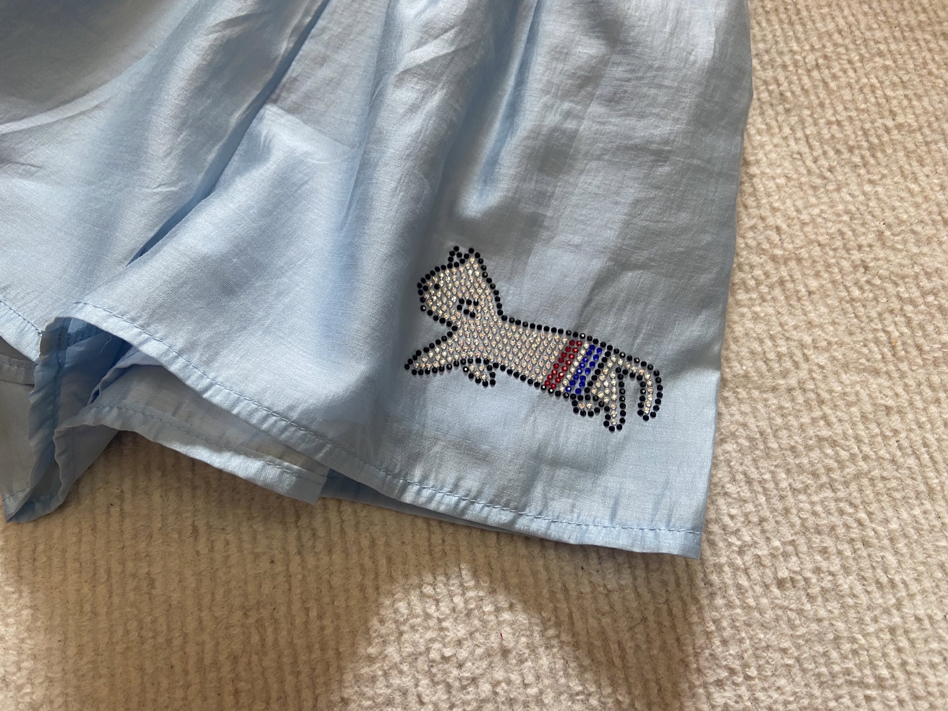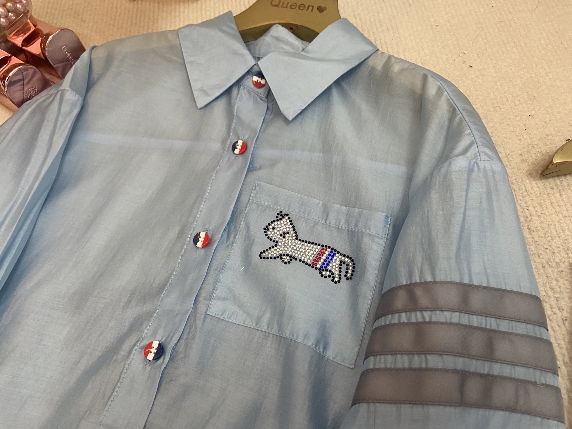 这款children's clothes是AAAAA 1:1 质量 (非常棒). 使用了和原版一模一样的材料. 商标部分也保持了和汤姆布朗/Thom Browne一样. 图片拍摄是实物children's clothes拍摄, 您所收到的实物保证和我们图片一模一样.