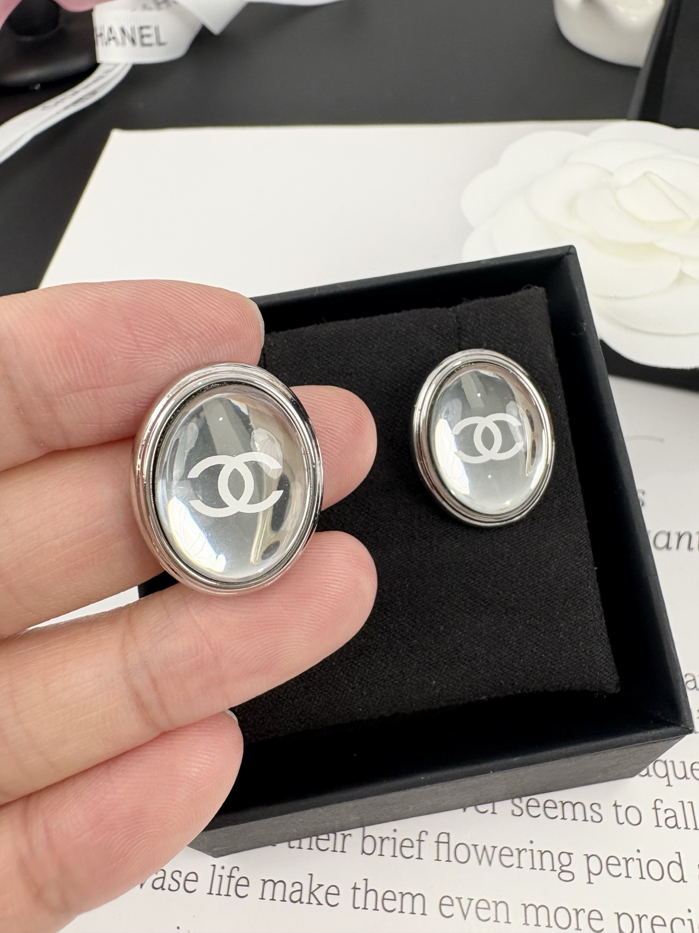这款首饰是AAAAA 1:1 质量 (非常棒). 使用了和原版一模一样的材料. 商标部分也保持了和香奈儿/Chanel一样. 图片拍摄是实物首饰拍摄, 您所收到的实物保证和我们图片一模一样.