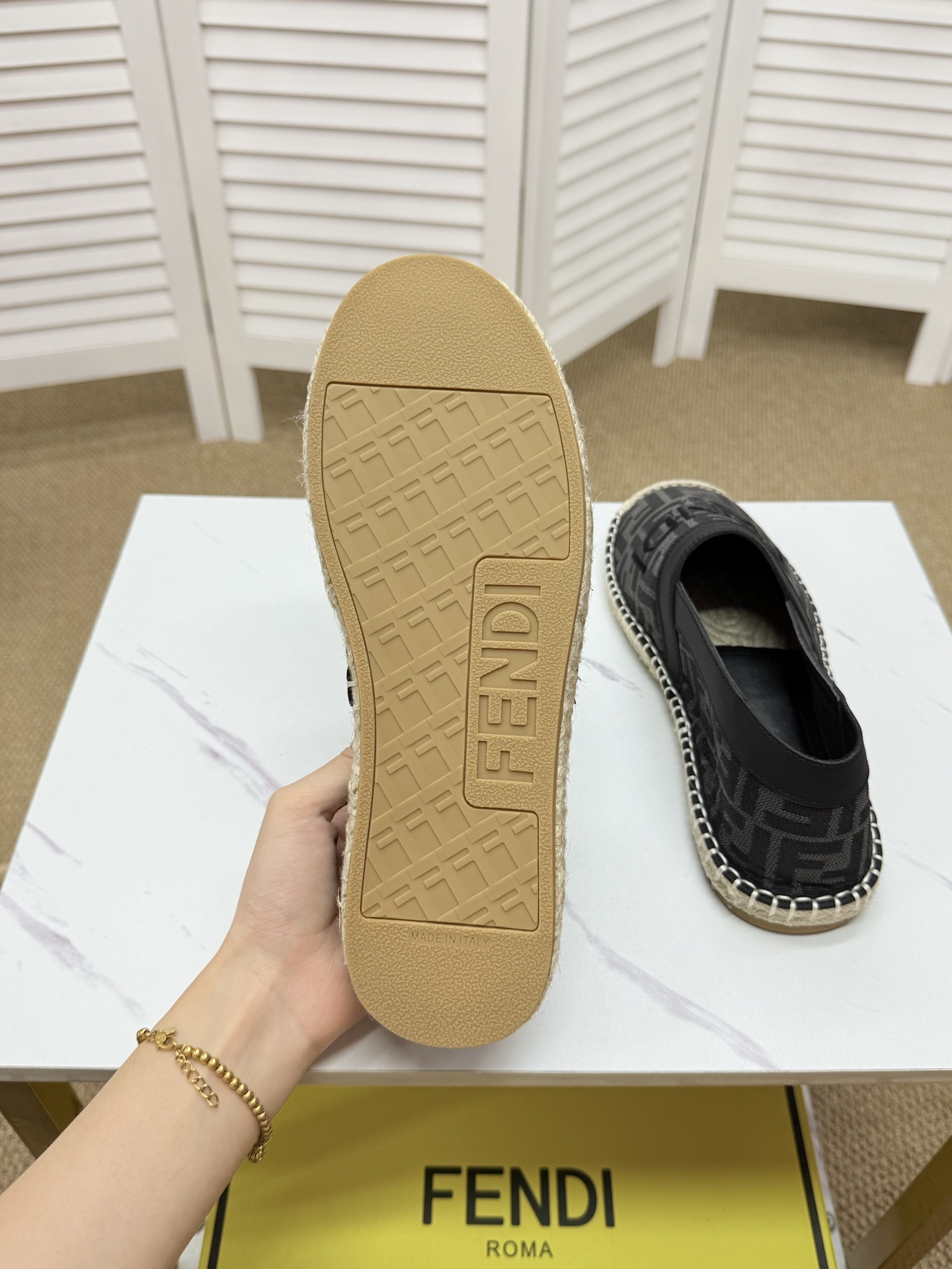 这款鞋子是AAAAA 1:1 质量 (非常棒). 使用了和原版一模一样的材料. 商标部分也保持了和芬迪/Fendi一样. 图片拍摄是实物鞋子拍摄, 您所收到的实物保证和我们图片一模一样.