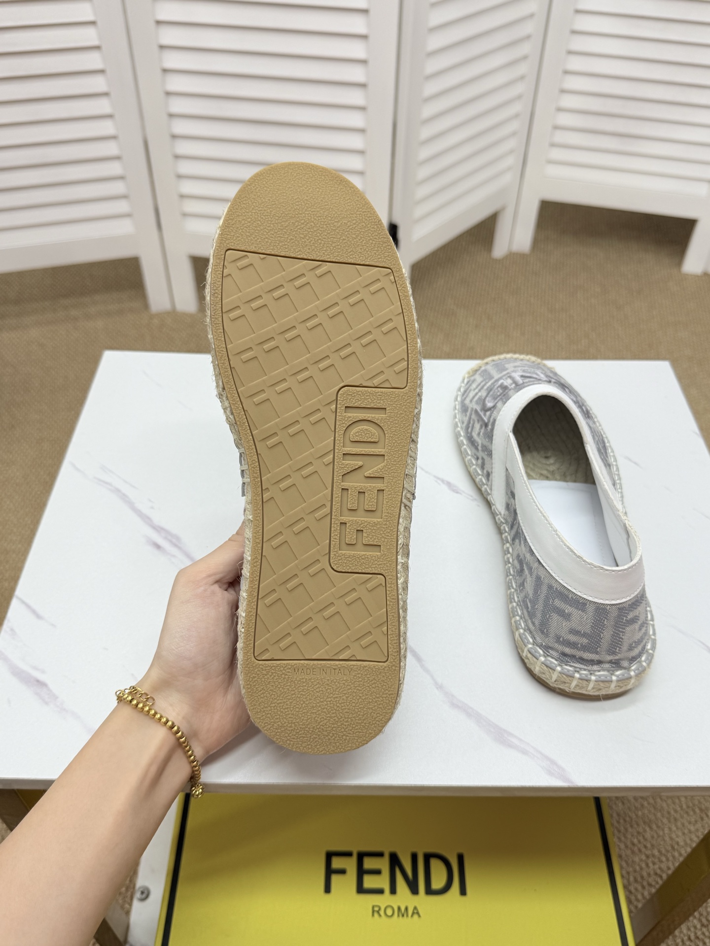 这款鞋子是AAAAA 1:1 质量 (非常棒). 使用了和原版一模一样的材料. 商标部分也保持了和芬迪/Fendi一样. 图片拍摄是实物鞋子拍摄, 您所收到的实物保证和我们图片一模一样.