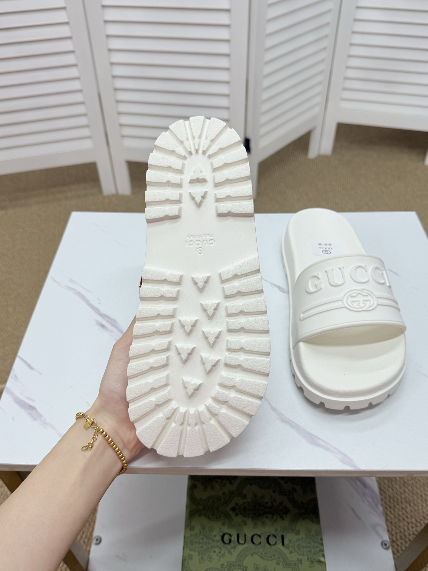 这款鞋子是AAAAA 1:1 质量 (非常棒). 使用了和原版一模一样的材料. 商标部分也保持了和古奇/Gucci一样. 图片拍摄是实物鞋子拍摄, 您所收到的实物保证和我们图片一模一样.