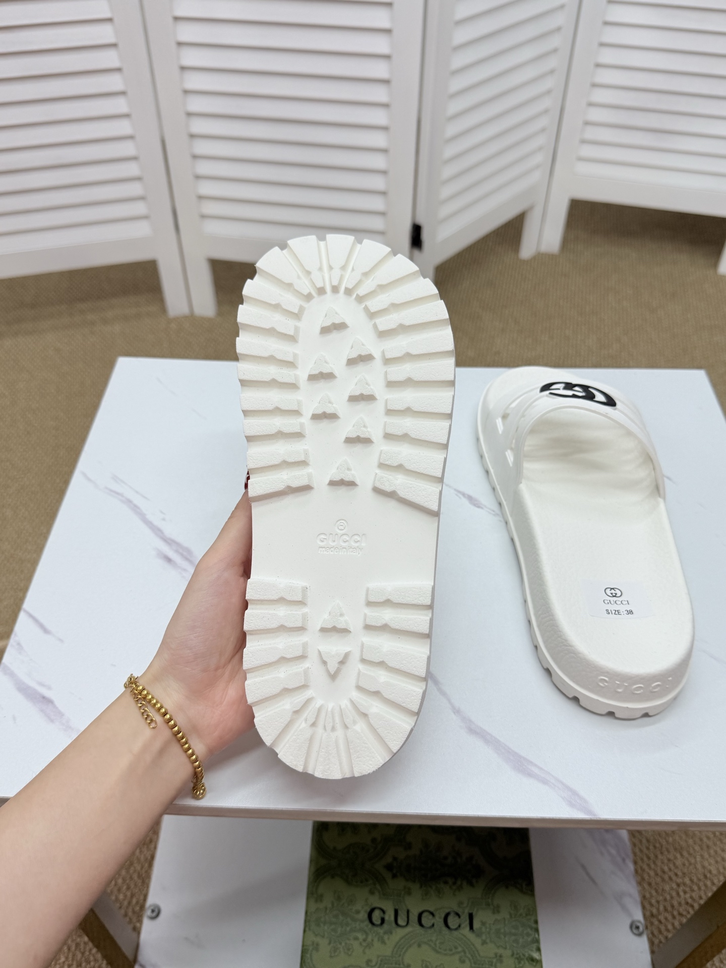这款鞋子是AAAAA 1:1 质量 (非常棒). 使用了和原版一模一样的材料. 商标部分也保持了和古奇/Gucci一样. 图片拍摄是实物鞋子拍摄, 您所收到的实物保证和我们图片一模一样.