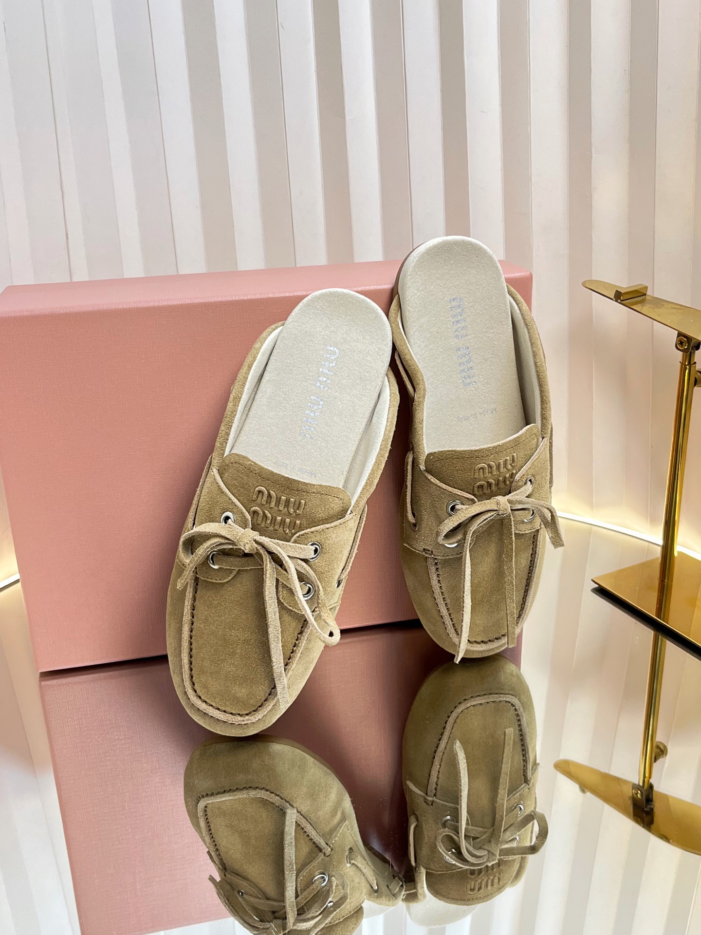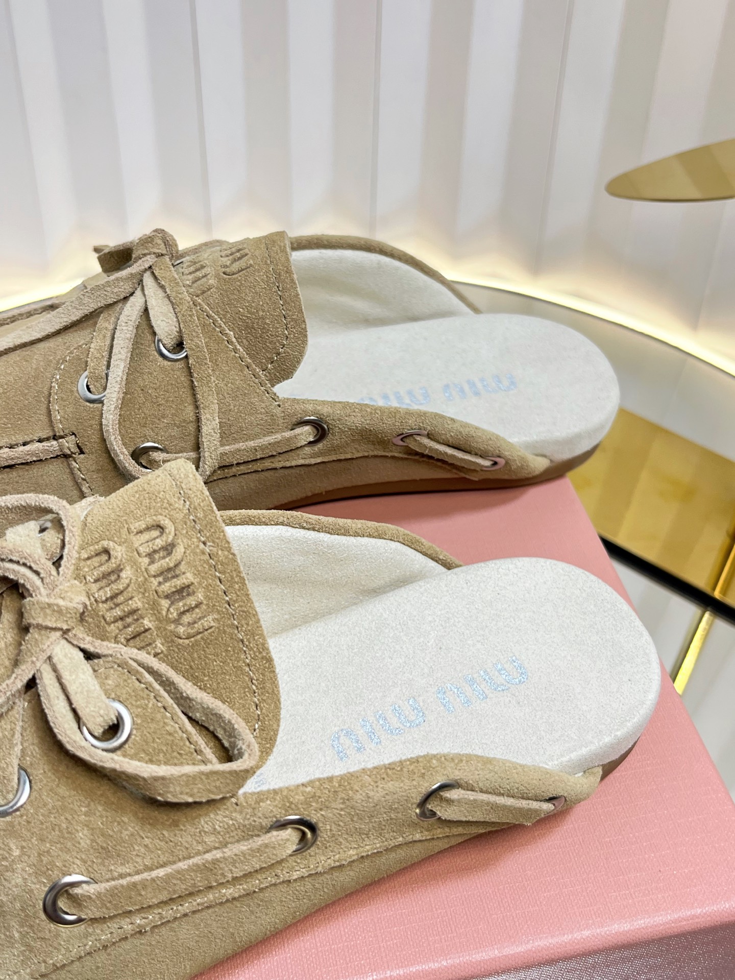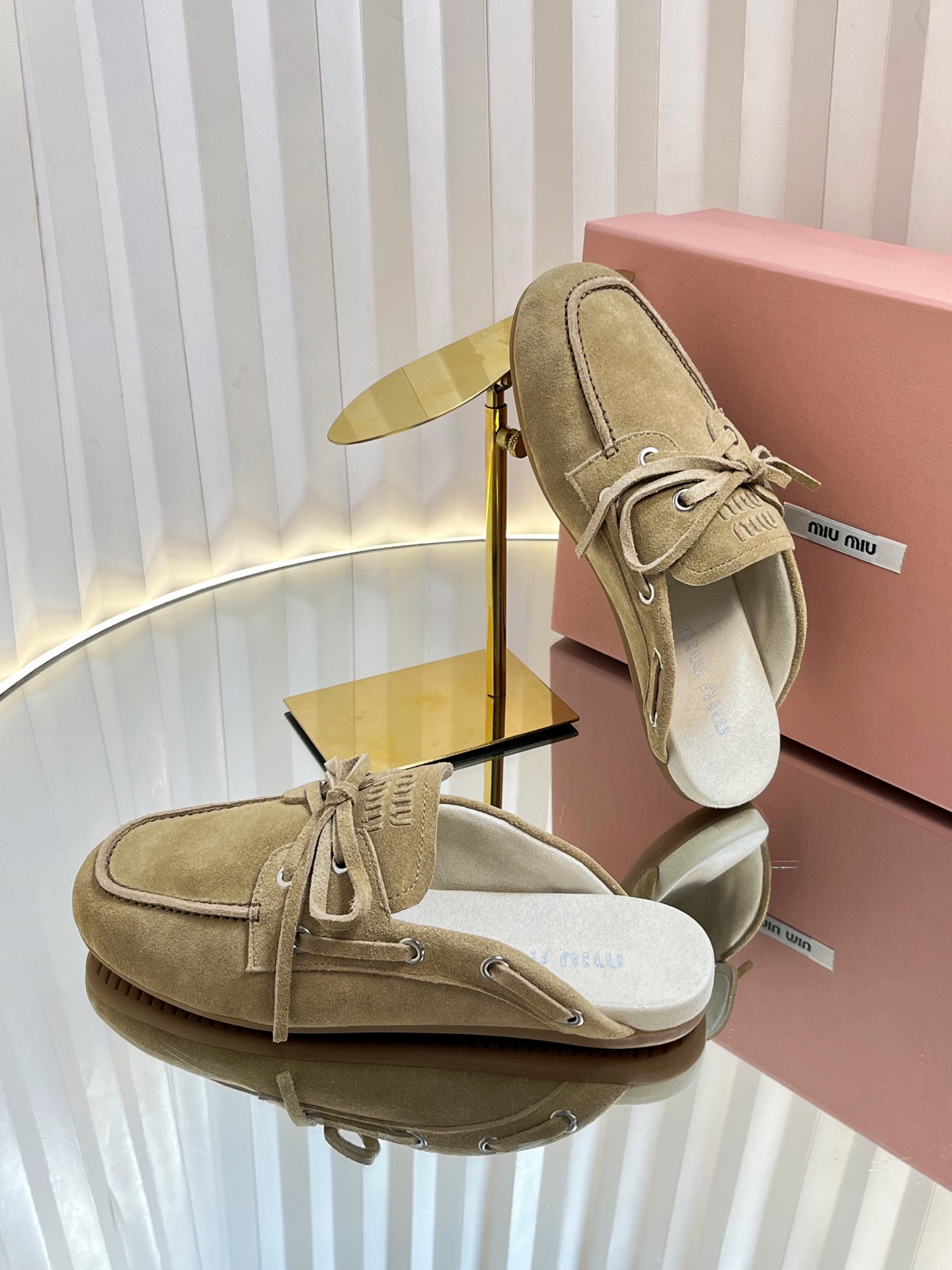 这款鞋子是AAAAA 1:1 质量 (非常棒). 使用了和原版一模一样的材料. 商标部分也保持了和缪缪/Miu Miu一样. 图片拍摄是实物鞋子拍摄, 您所收到的实物保证和我们图片一模一样.