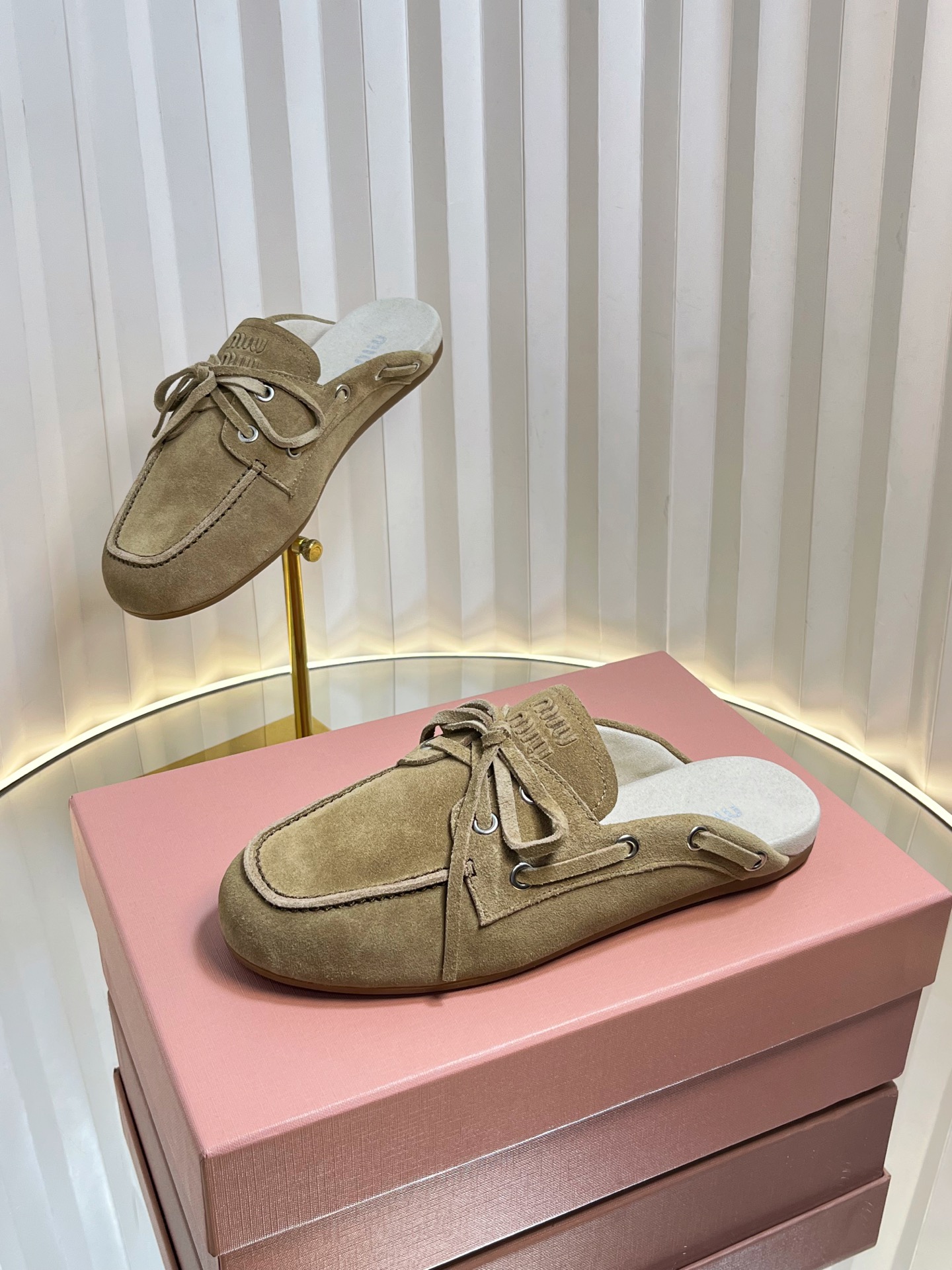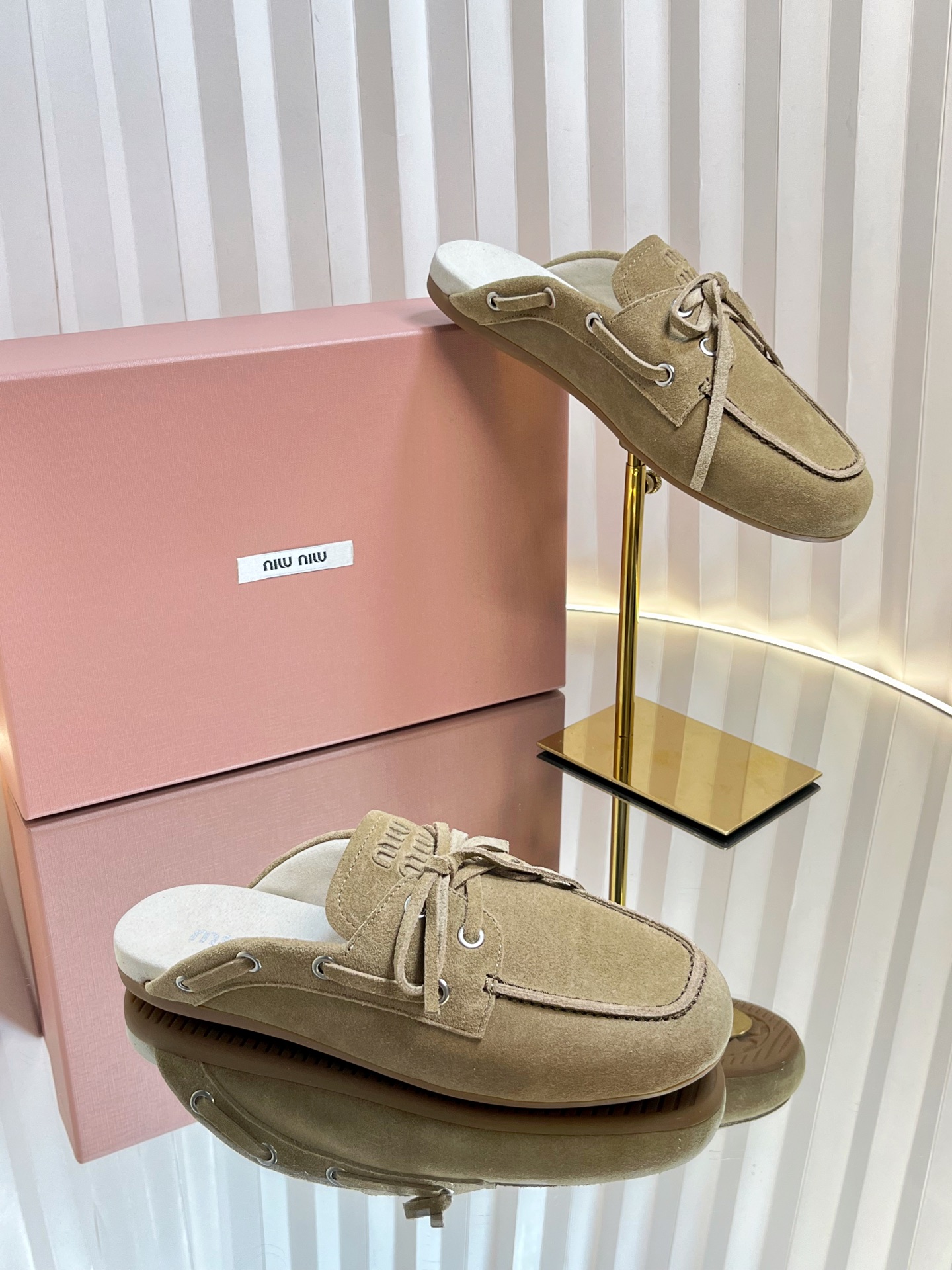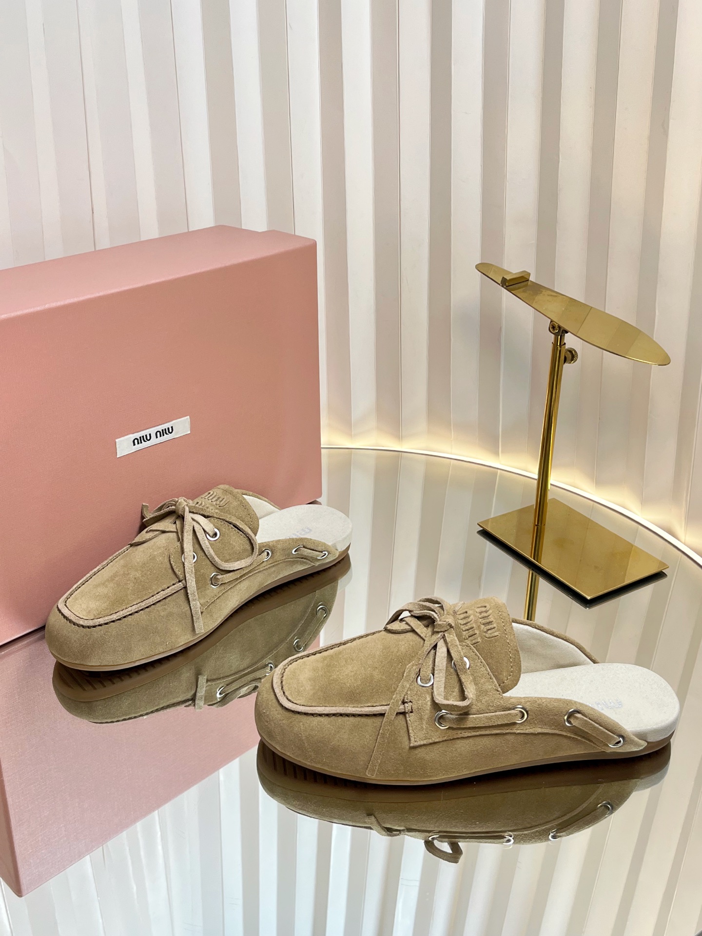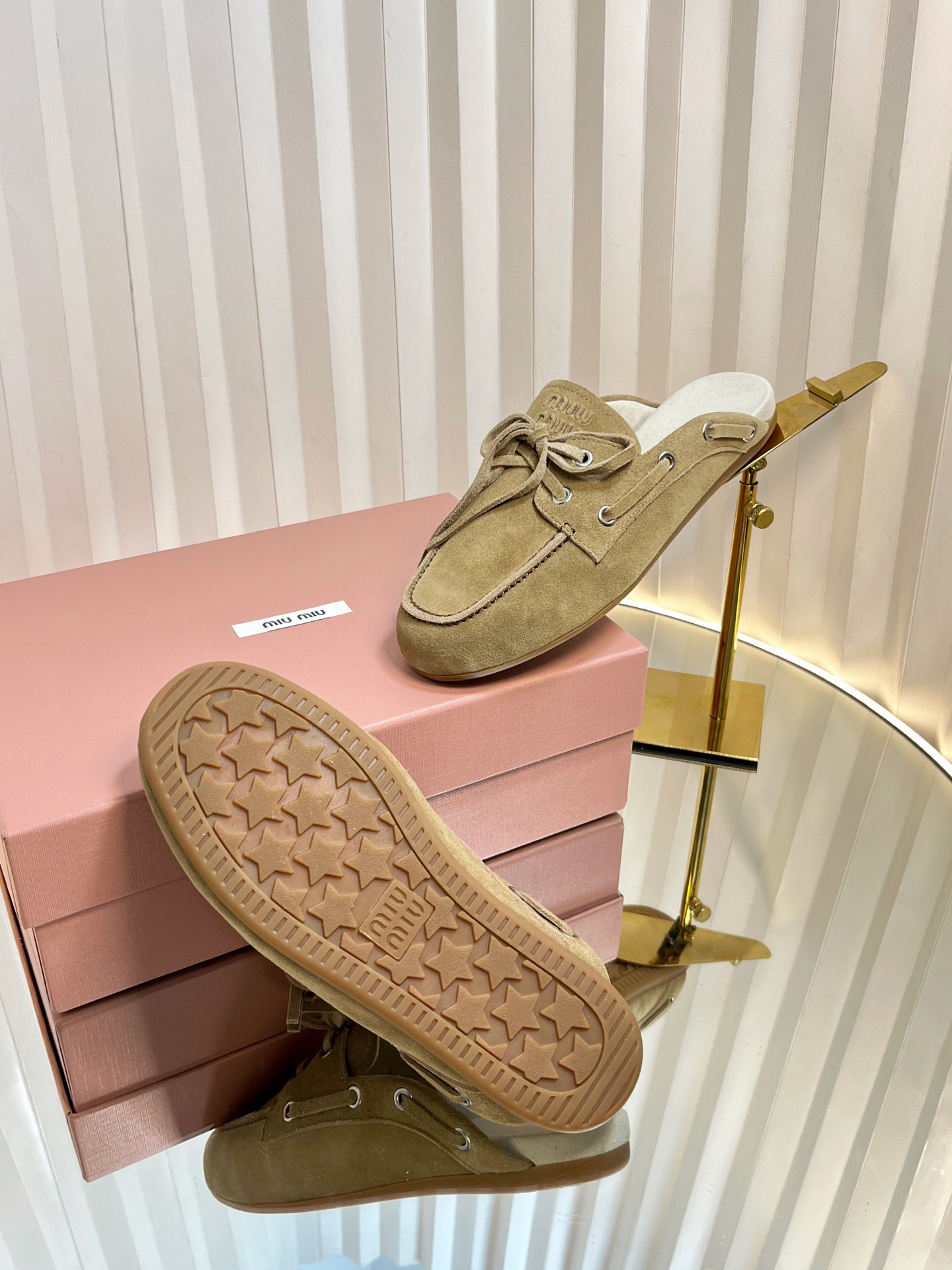 这款鞋子是AAAAA 1:1 质量 (非常棒). 使用了和原版一模一样的材料. 商标部分也保持了和缪缪/Miu Miu一样. 图片拍摄是实物鞋子拍摄, 您所收到的实物保证和我们图片一模一样.