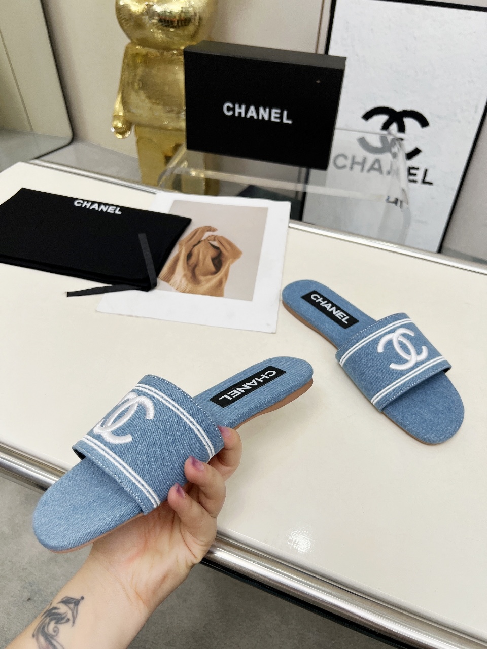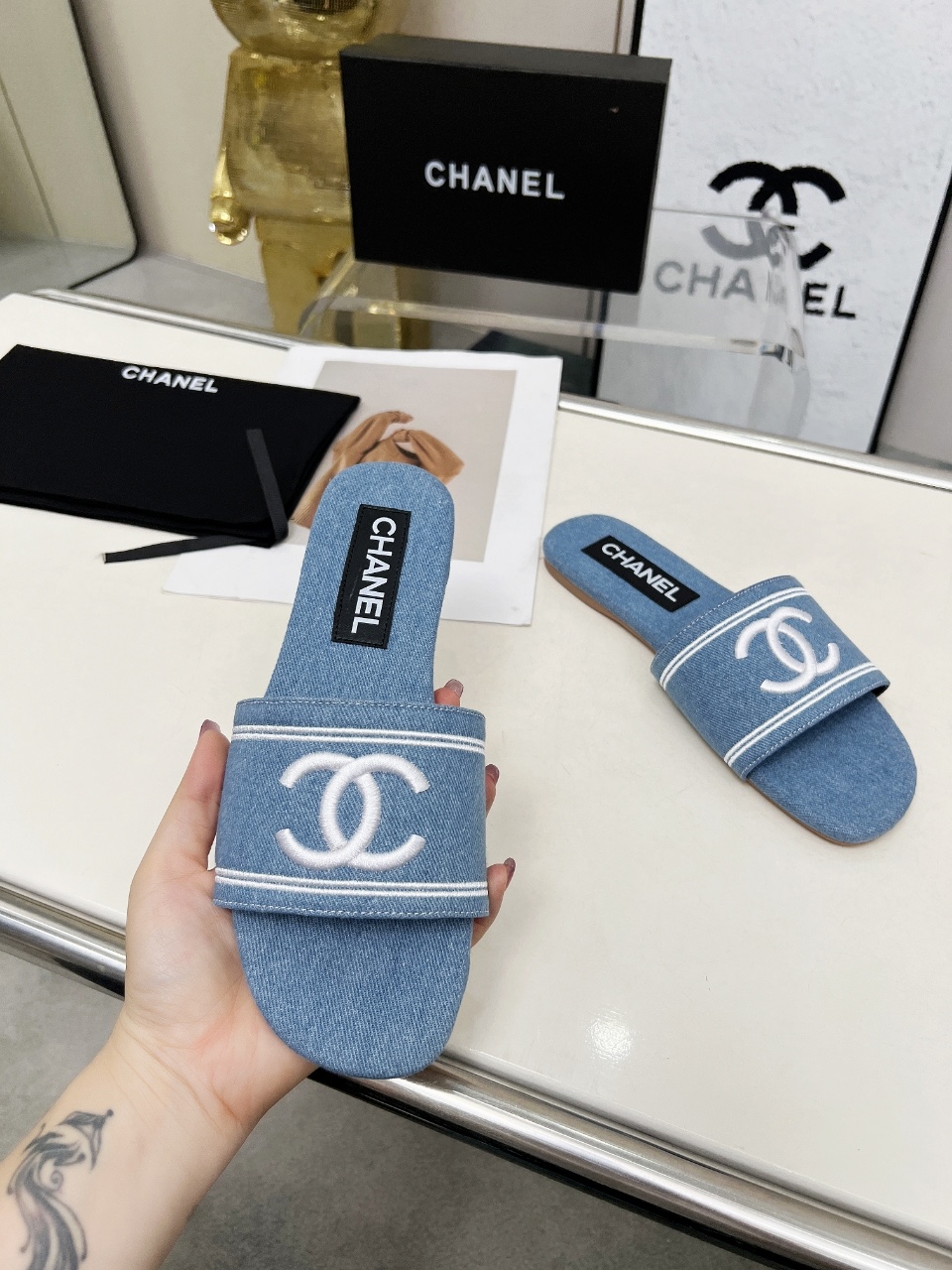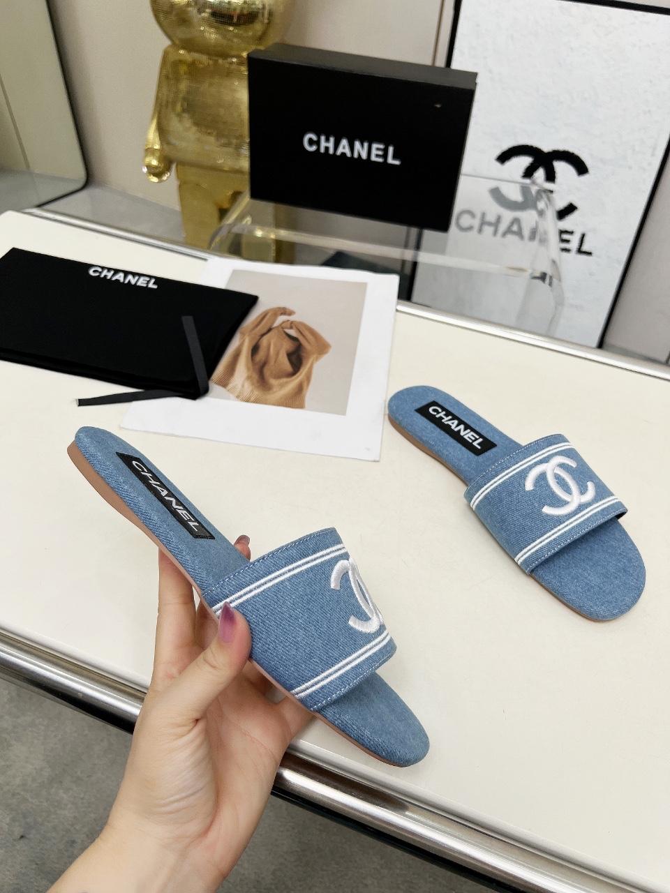 这款鞋子是AAAAA 1:1 质量 (非常棒). 使用了和原版一模一样的材料. 商标部分也保持了和香奈儿/Chanel一样. 图片拍摄是实物鞋子拍摄, 您所收到的实物保证和我们图片一模一样.