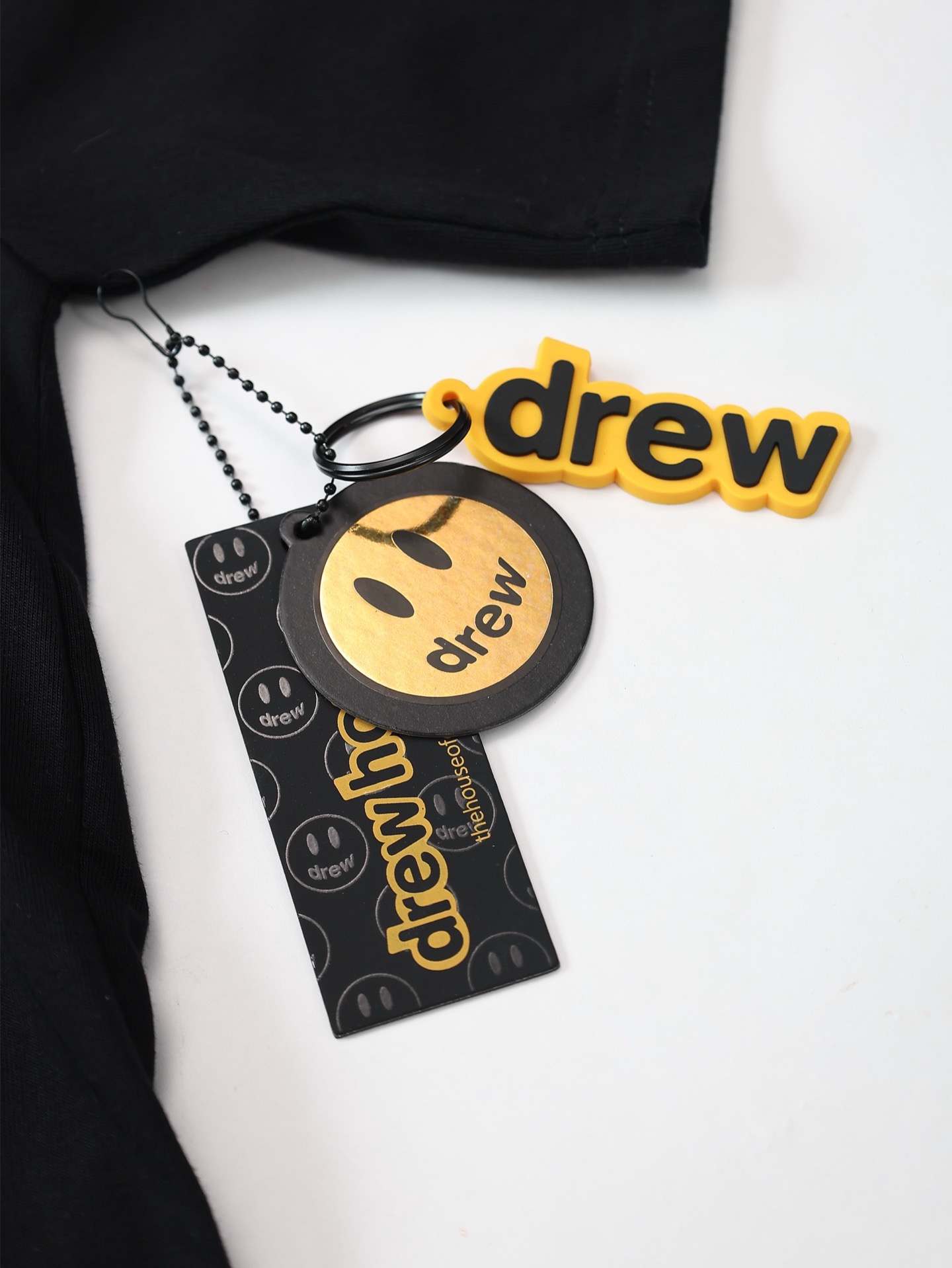 这款衣服是AAAAA 1:1 质量 (非常棒). 使用了和原版一模一样的材料. 商标部分也保持了和Drew House一样. 图片拍摄是实物衣服拍摄, 您所收到的实物保证和我们图片一模一样.