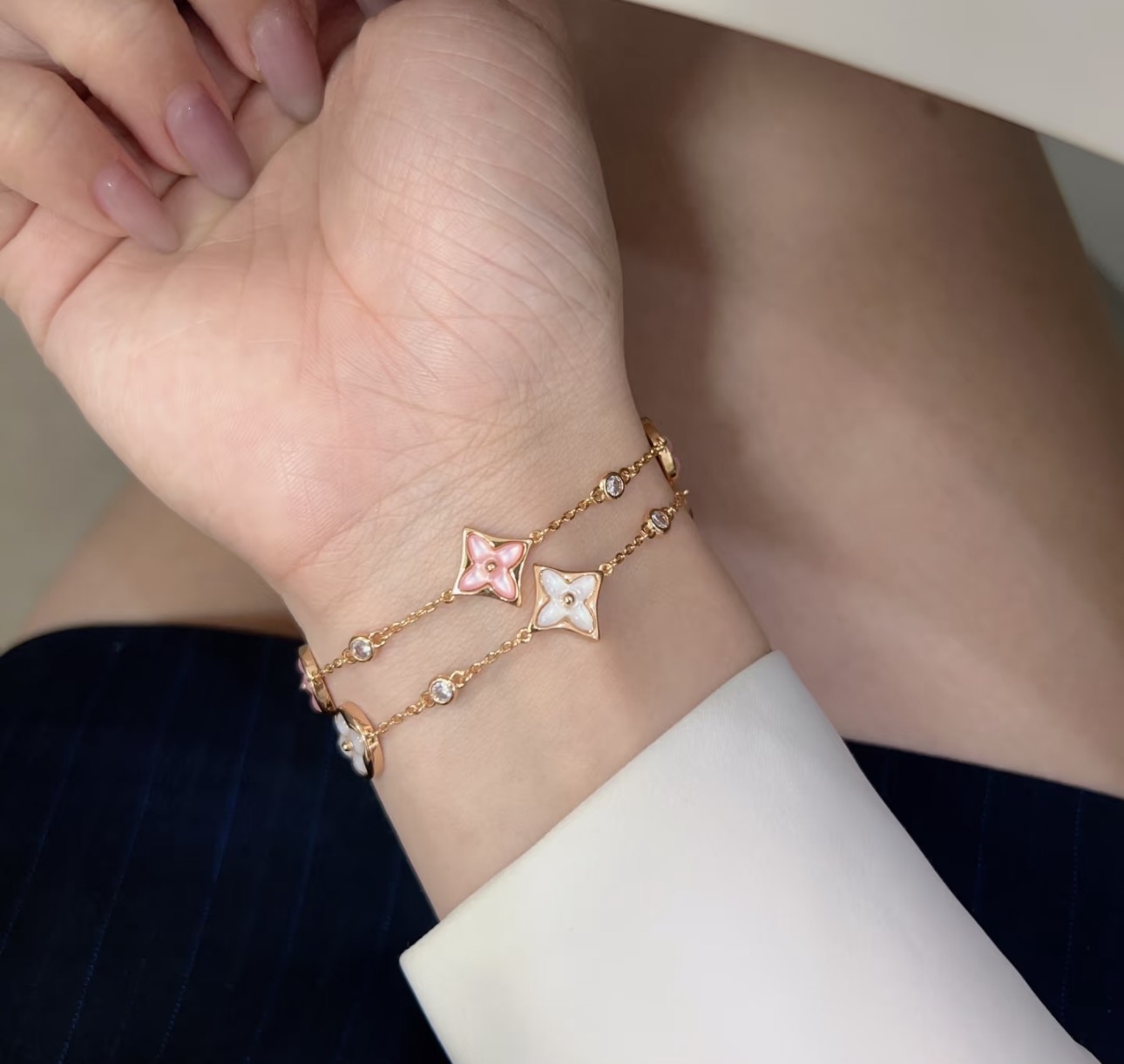 这款首饰是AAAAA 1:1 质量 (非常棒). 使用了和原版一模一样的材料. 商标部分也保持了和一样. 图片拍摄是实物首饰拍摄, 您所收到的实物保证和我们图片一模一样.